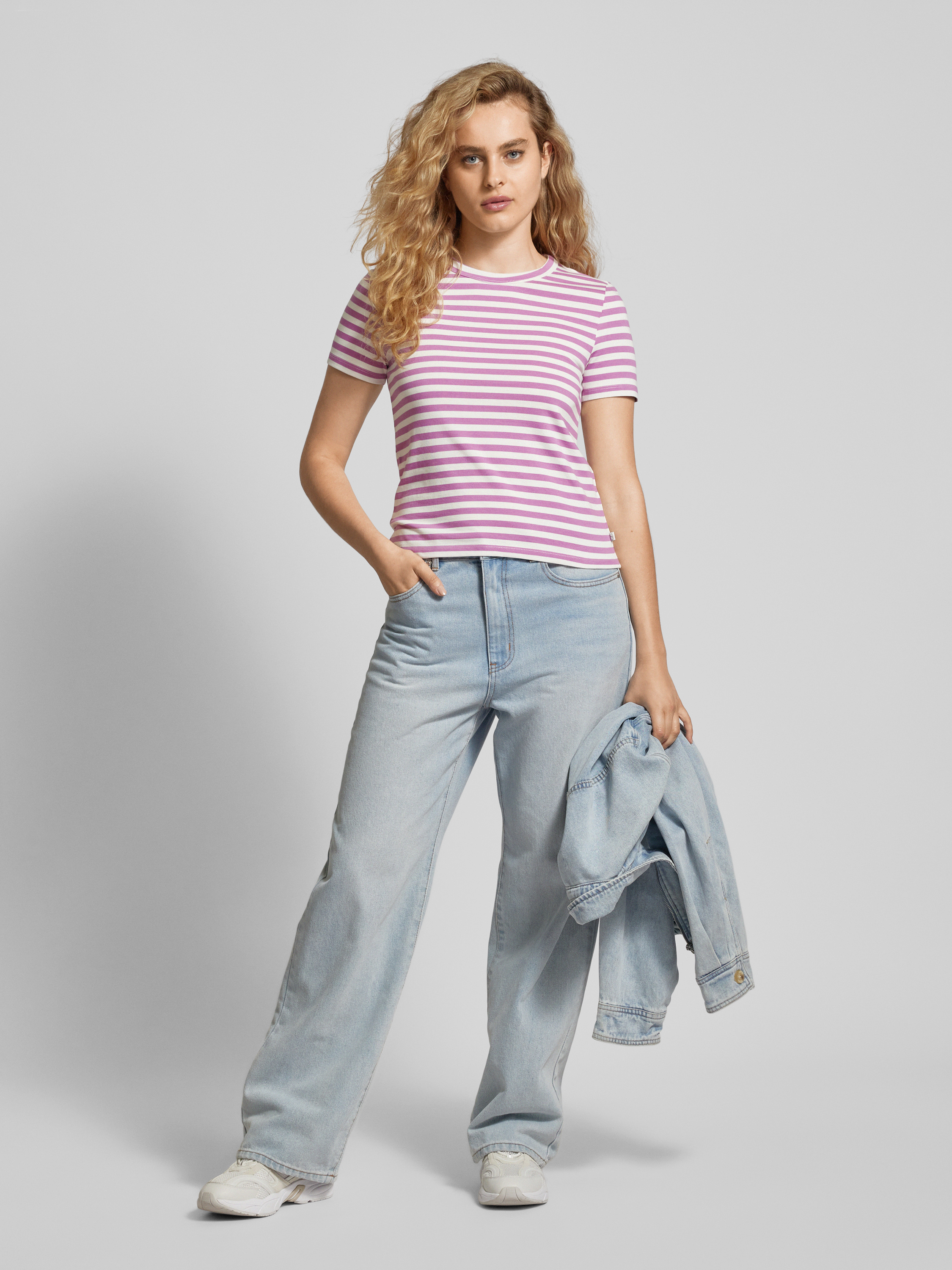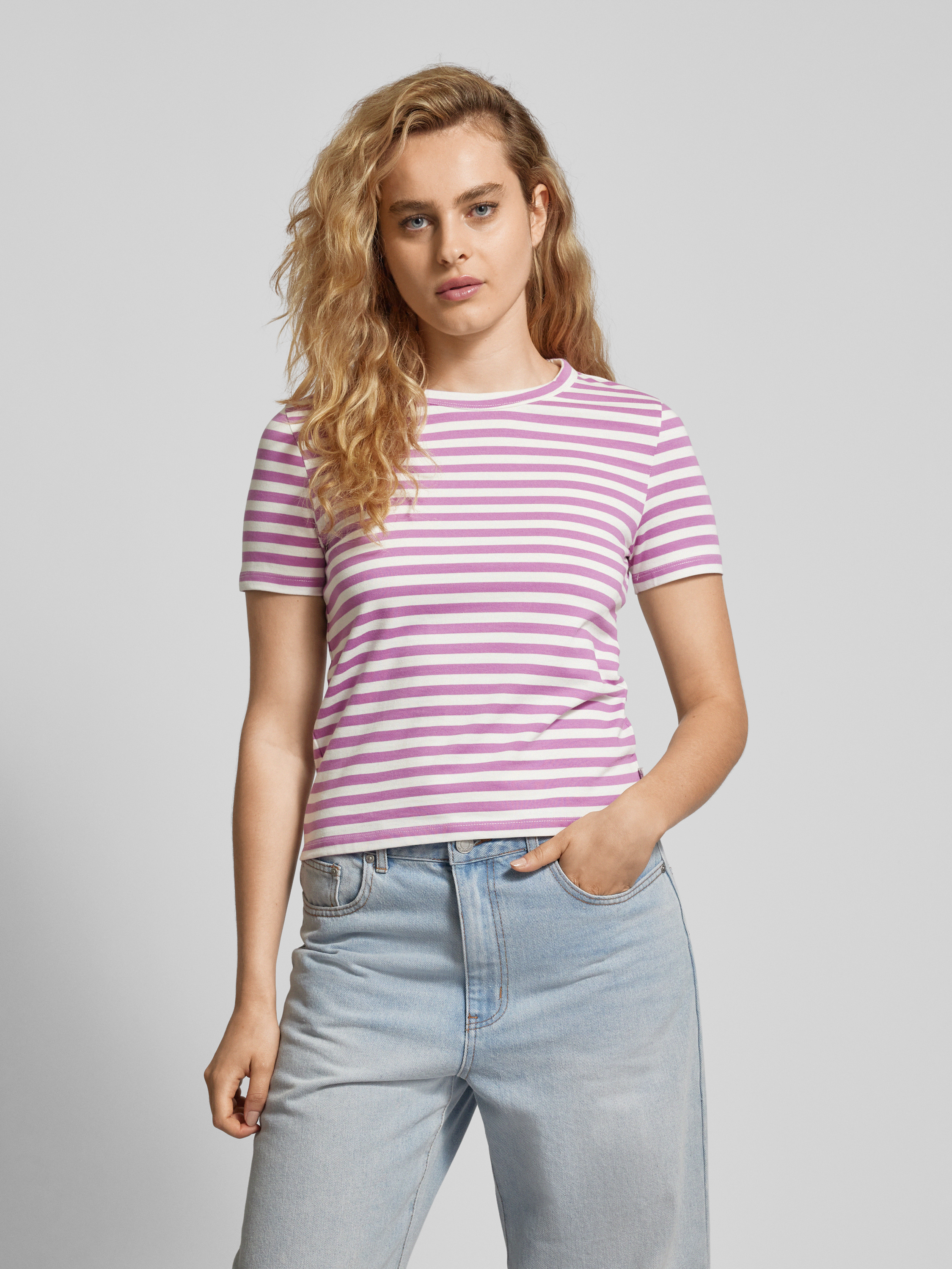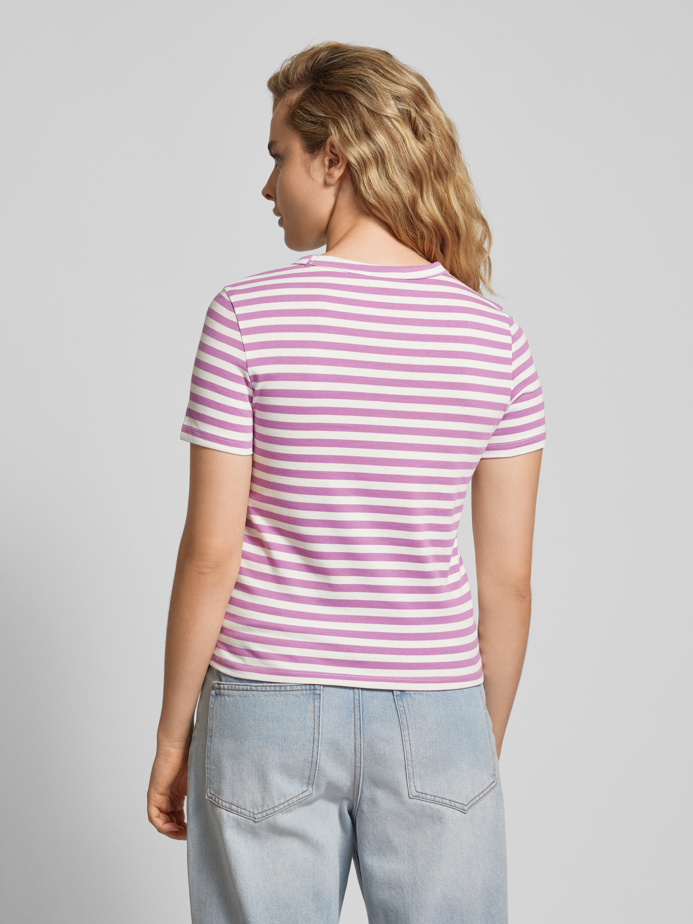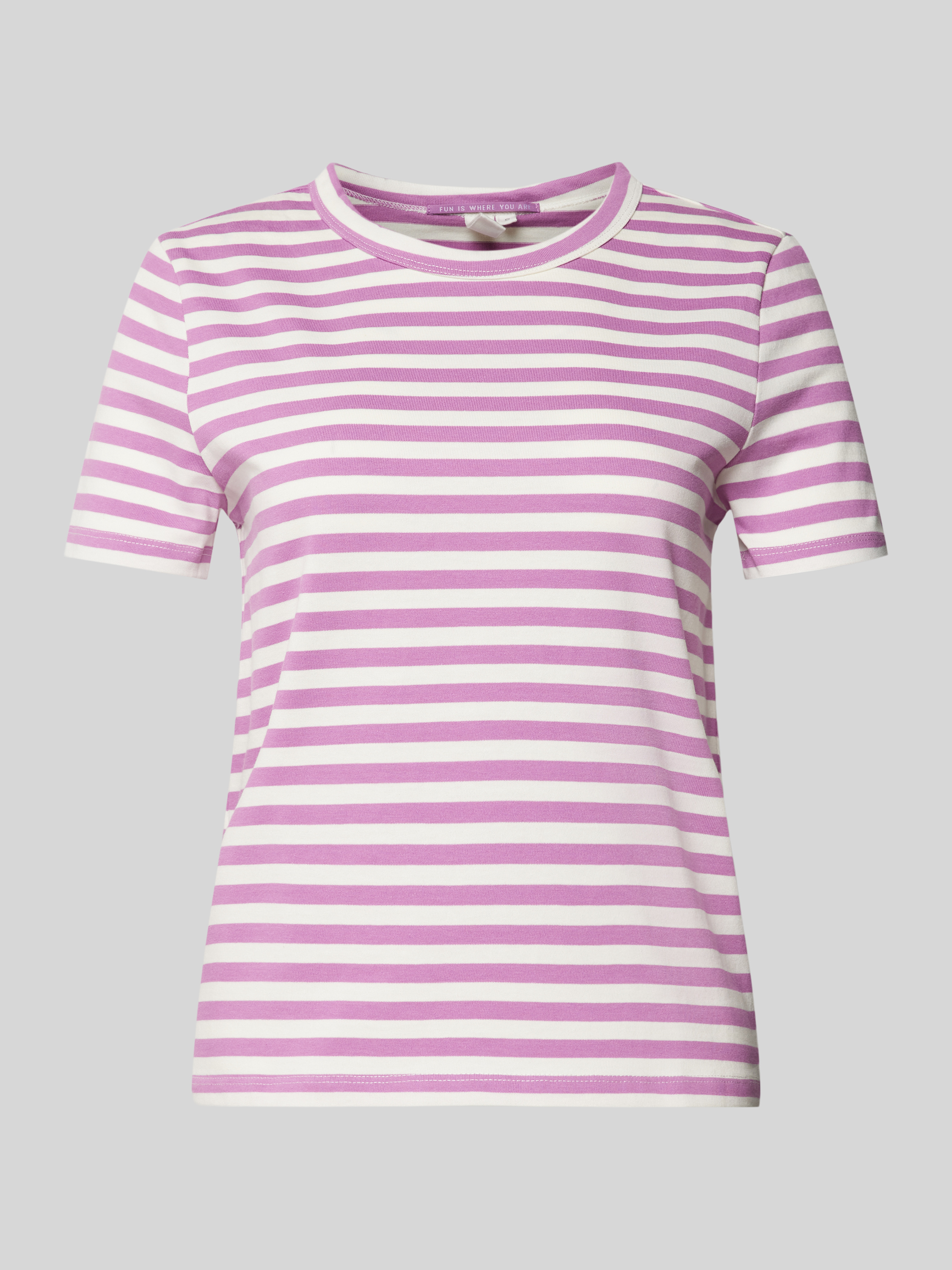 Das QS Damen T-Shirt aus reiner Baumwolle verbindet Komfort und Stil mühelos. Mit seinem Regular Fit und dem klassischen Streifenmuster eignet es sich für vielseitige Kombinationen im Alltag. Der gerippte Rundhalsausschnitt sorgt für eine angenehme Passform und unterstreicht die zeitlose Optik.
