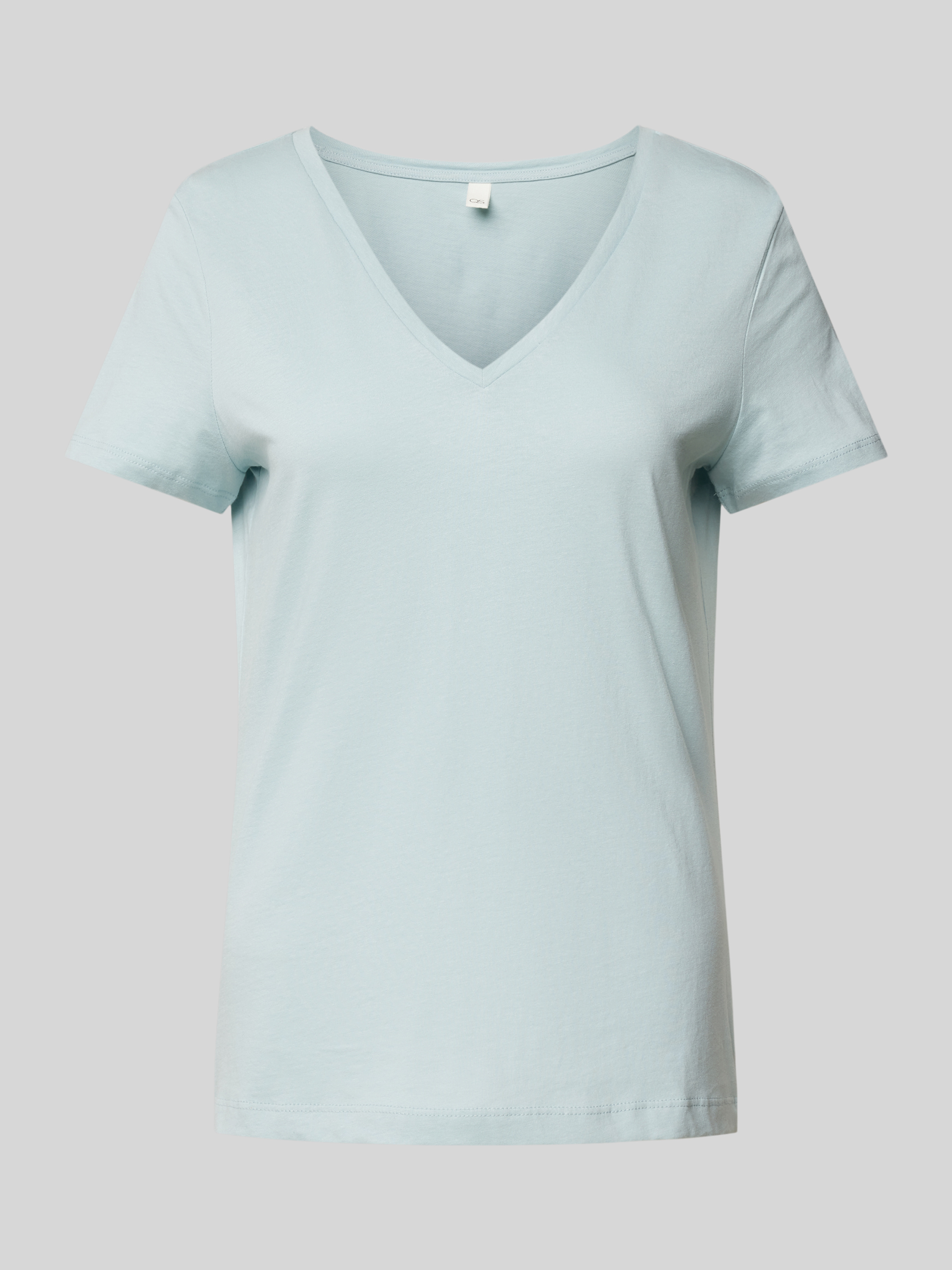 Das T-Shirt mit V-Ausschnitt von QS by s.Oliver besteht aus reiner Baumwolle und sorgt für ein angenehm weiches Tragegefühl. Der gerade Schnitt und das unifarbene Design machen es vielseitig kombinierbar. Ein kleines Label-Detail rundet den schlichten Look dezent ab.