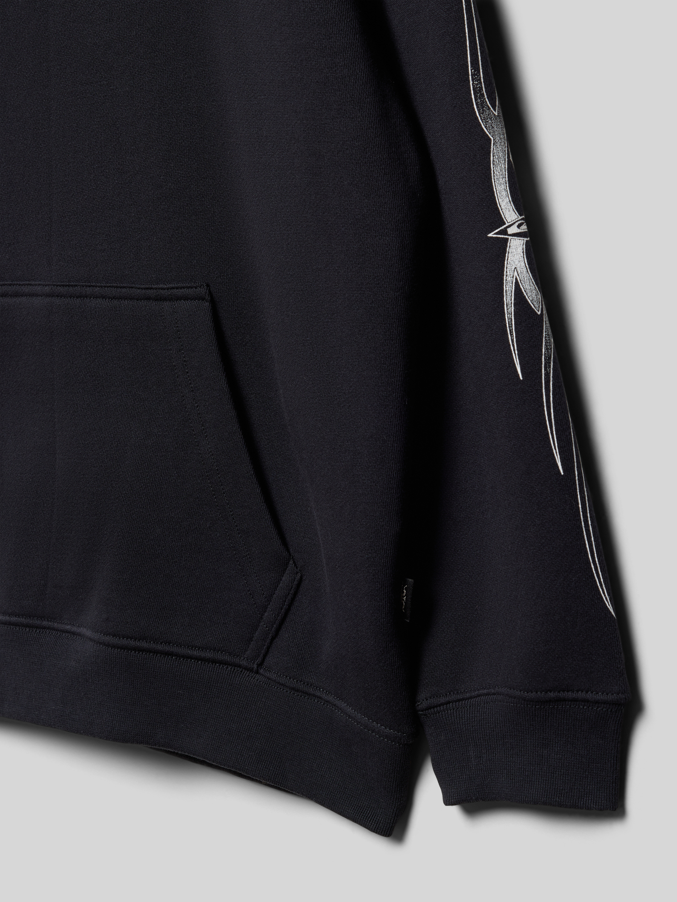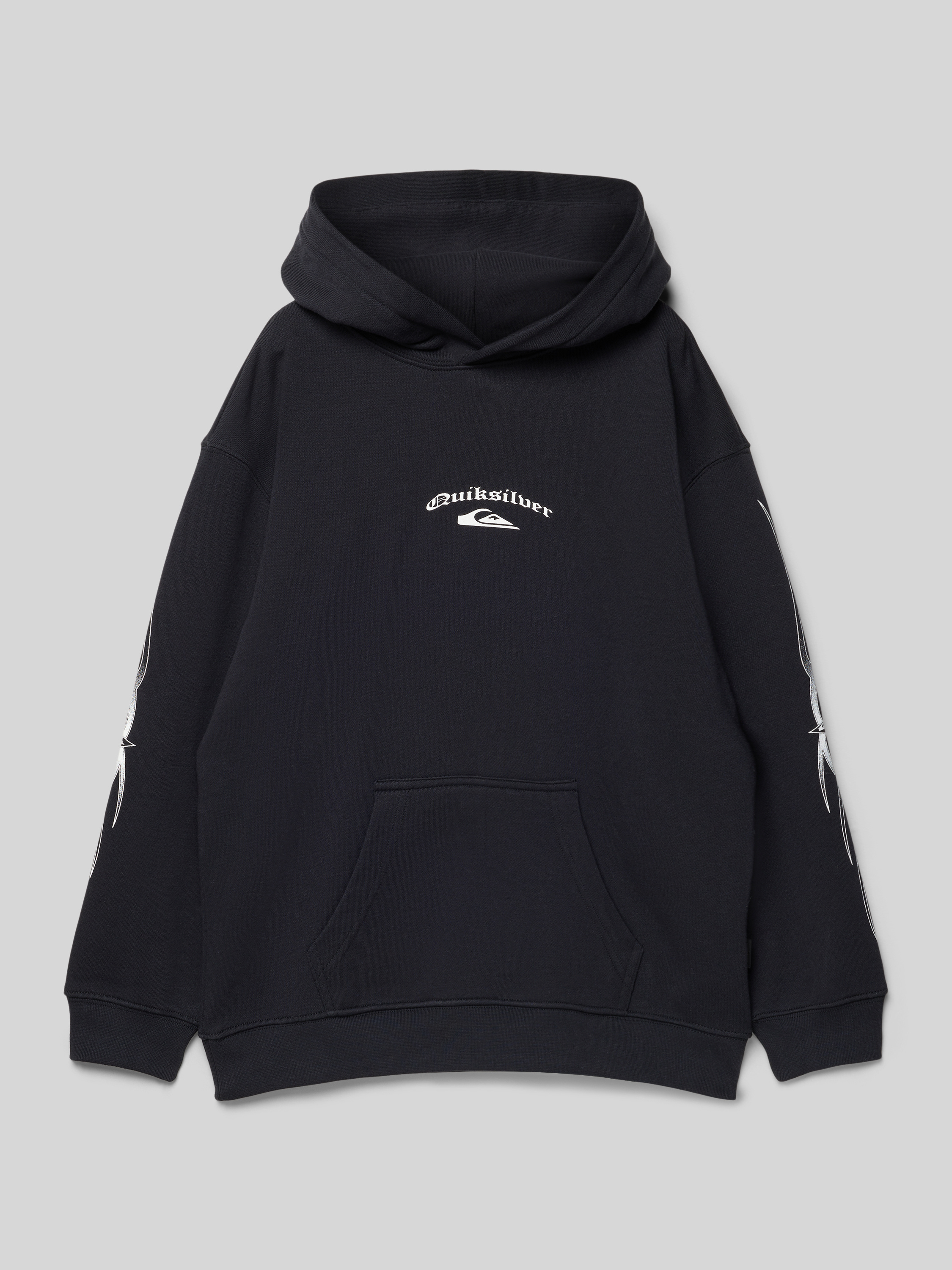 Der Hoodie von Quiksilver zeigt sich mit lockerem Schnitt und einer bequemen Kapuze, wodurch Bewegungsfreiheit im Alltag entsteht. Ein Baumwoll-Mix sorgt für ein angenehmes Tragegefühl, während Känguru-Tasche und Label-Print praktische und optische Akzente setzen. Gerippte Abschlüsse runden das Design ab.