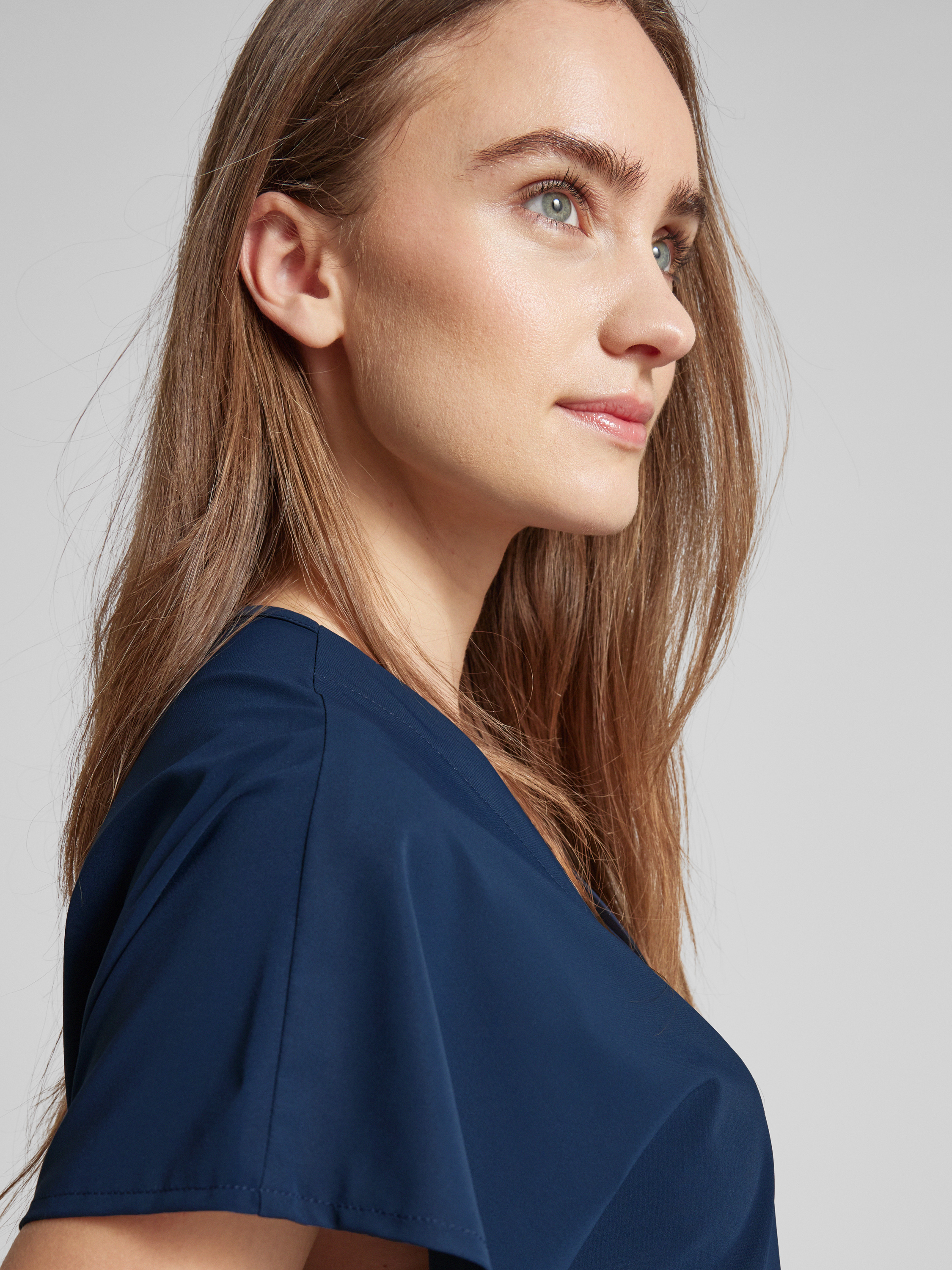 Das knielange Kleid 'JOYCE' von Rafaello Rossi kombiniert einen Material-Mix mit Stretch-Anteil, der sich angenehm an die Silhouette anpasst. Der lockere Schnitt und der V-Ausschnitt schaffen eine entspannte Eleganz, während die Kappärmel dezente Raffinesse verleihen. Ein unifarbenes Design rundet das Modell stilvoll ab.