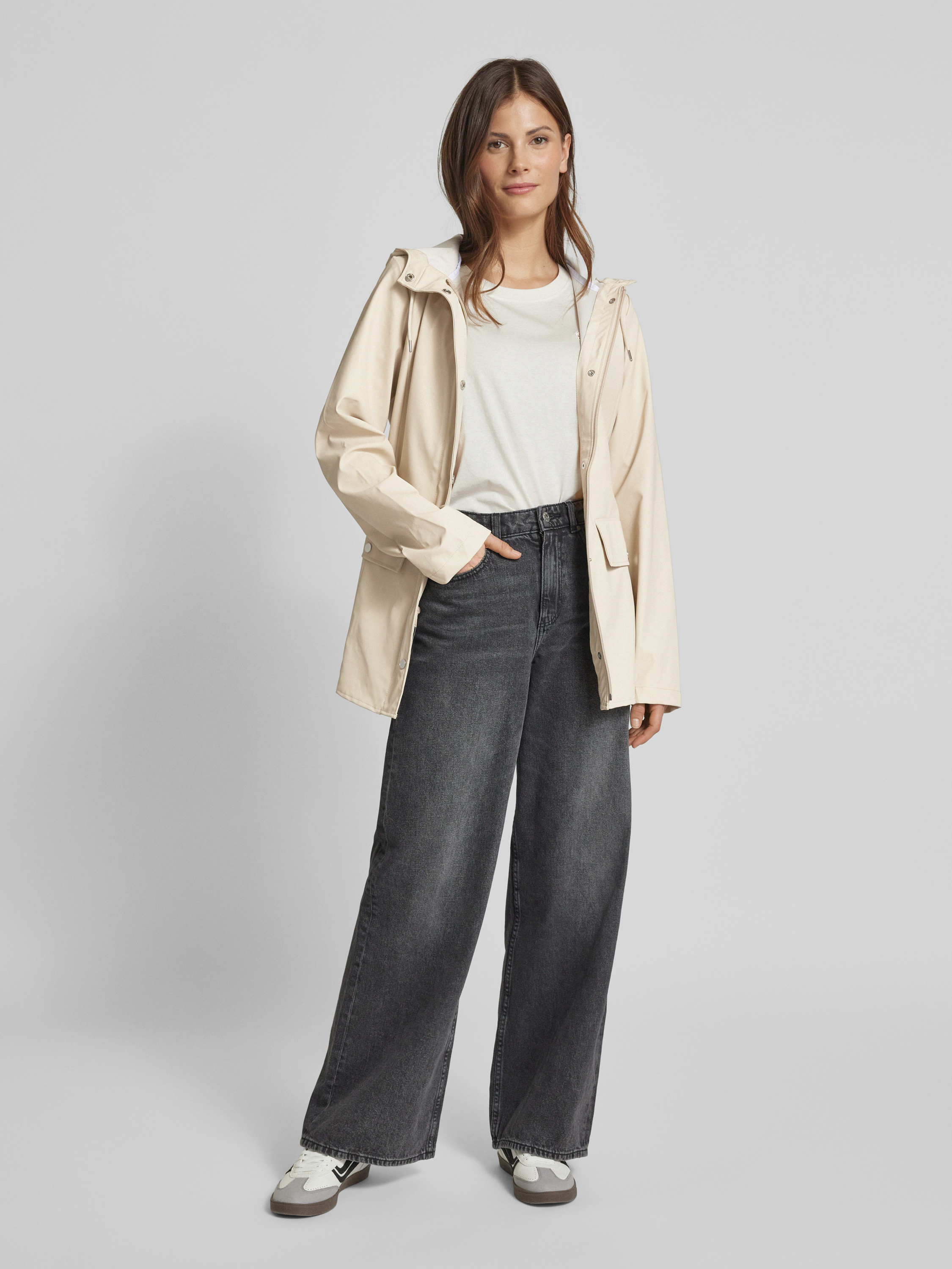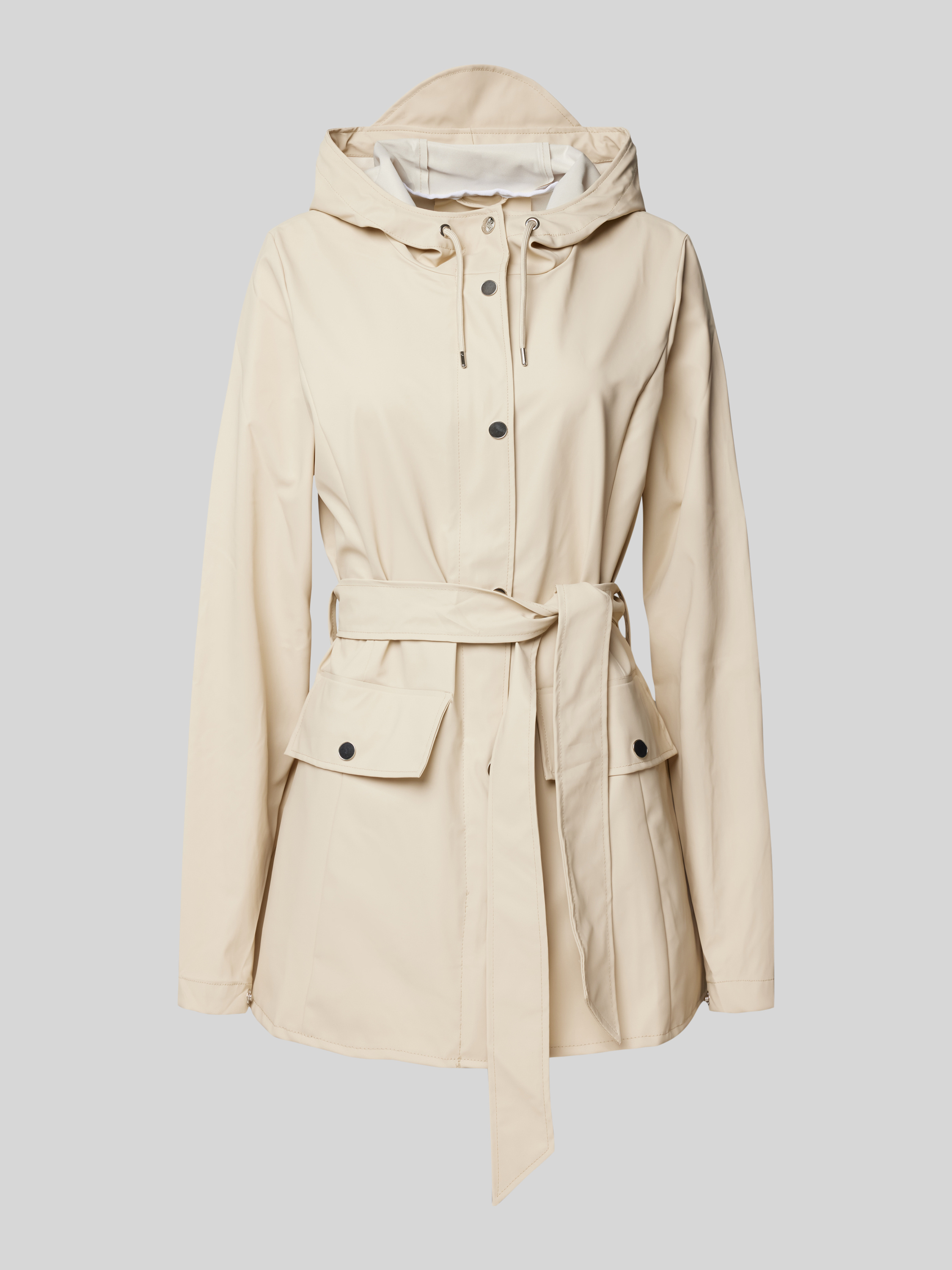Der Mantel Curve von Rains zeichnet sich durch seinen geraden Schnitt und die Kapuze mit Tunnelzug aus. Mit einem Bindegürtel lässt sich die Passform individuell anpassen, während die Eingrifftaschen praktischen Stauraum bieten. Ideal für wechselhaftes Wetter und stilvolle Auftritte.