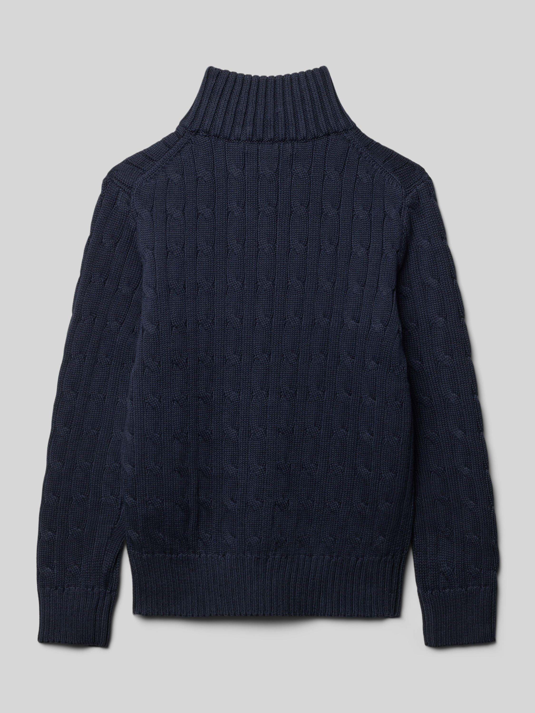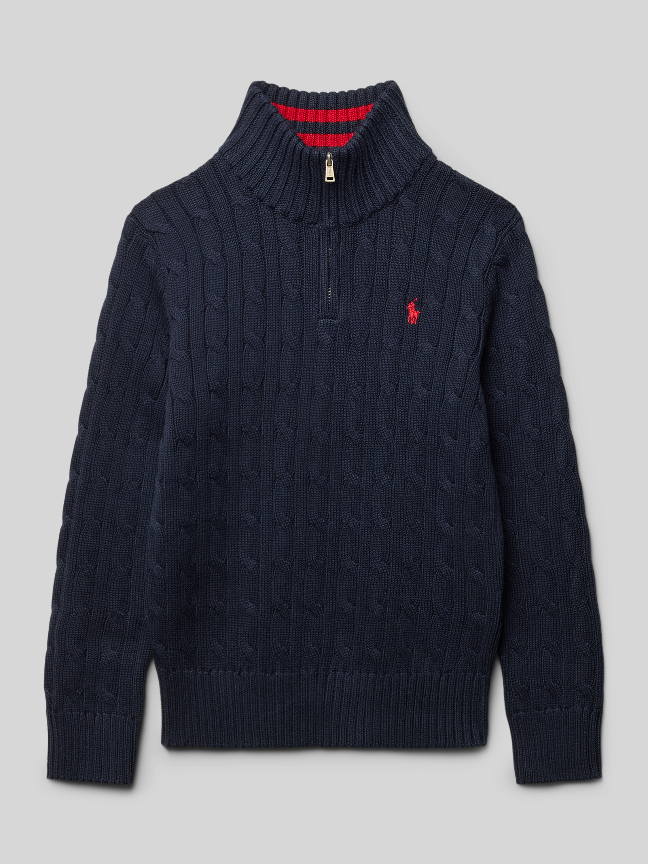 Strickpullover mit Stehkragen und Reißverschluss in marine