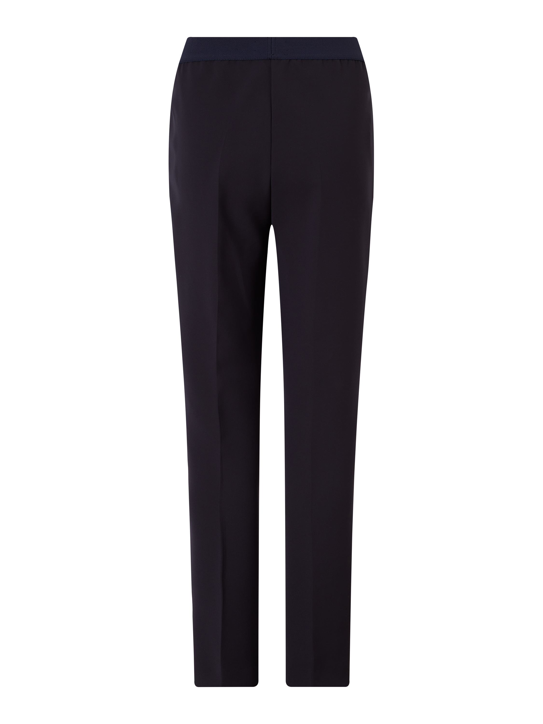 Die Stoffhose 'Liv' von Raphaela by BRAX kombiniert eine leichte Materialmischung mit einem leicht zulaufenden Bein, was sie vielseitig tragbar macht. Der elastische Bund sorgt für angenehmen Tragekomfort, während die Bügelfalten und französischen Eingrifftaschen eine elegante Note verleihen. Ideal für unterschiedliche Anlässe.