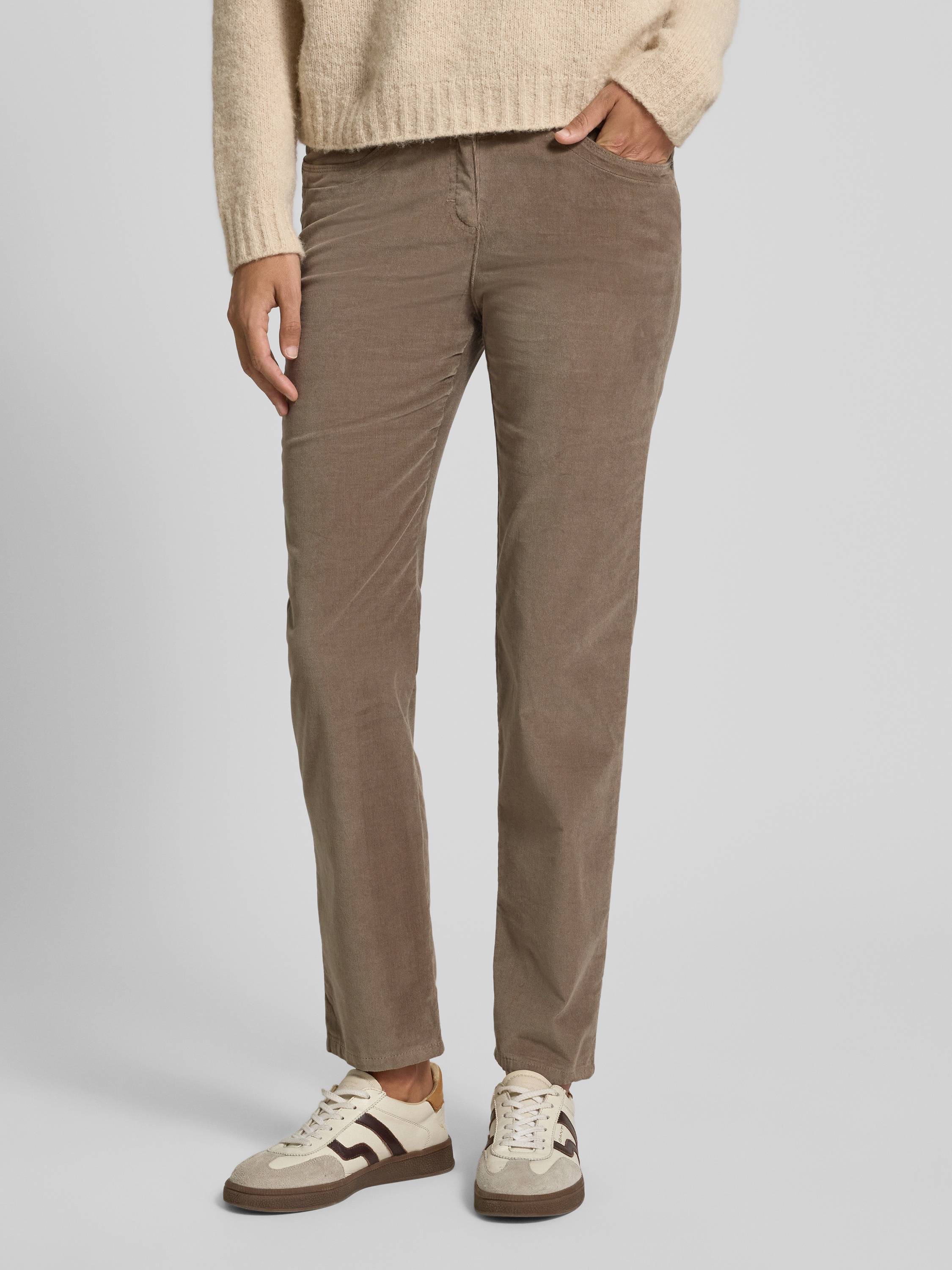 Die Raphaela By Brax Straight Fit Crodhose Modell 'Laura' zeichnet sich durch ihren angenehm weichen Baumwoll-Mix mit Viskose-Anteil aus und liegt bequem am Bein an. Durch den klassischen Schnitt eignet sie sich vielseitig für unterschiedliche Outfits. Praktische Eingrifftaschen runden das entspannte Design ab.