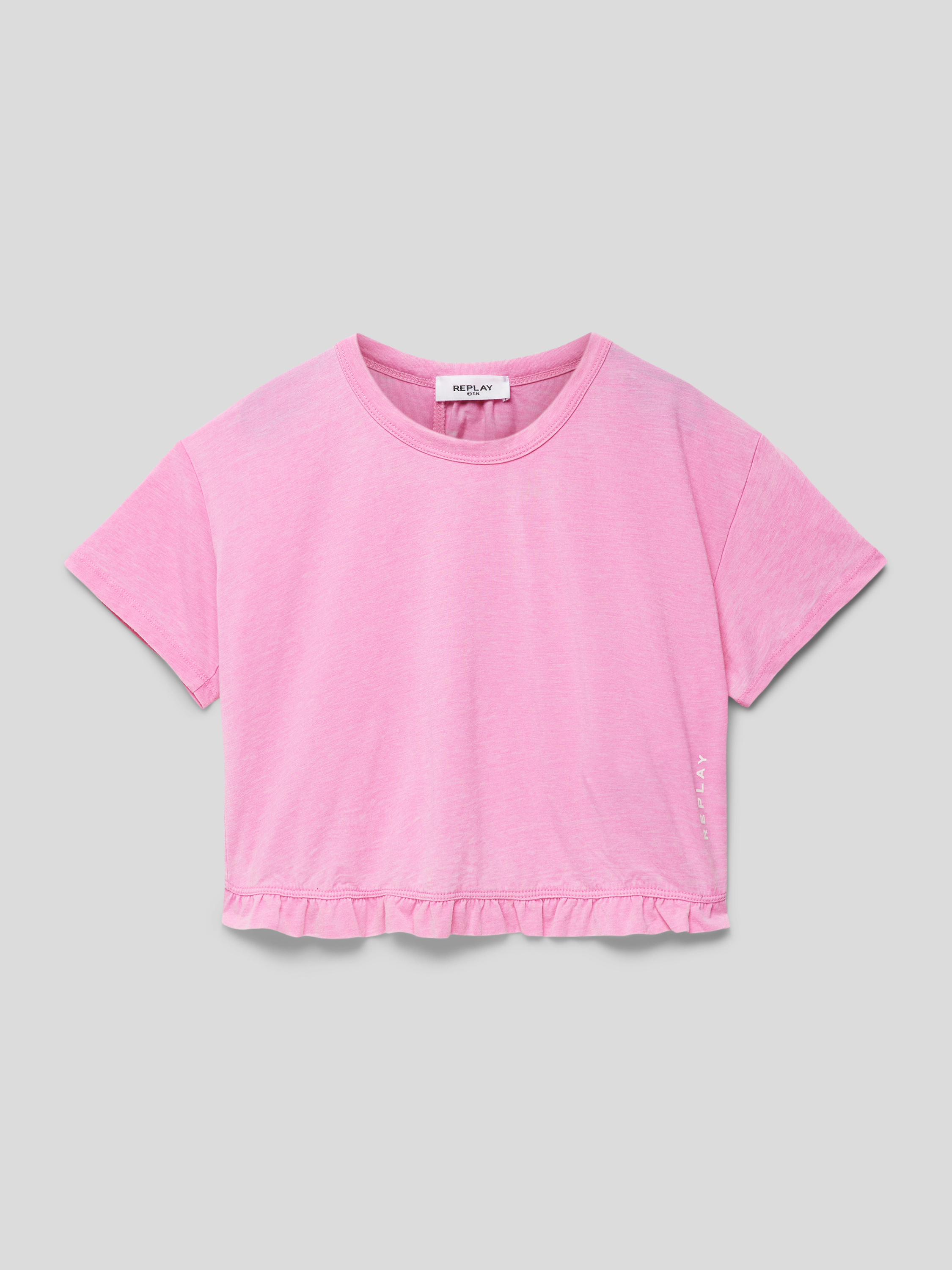 ReplayCropped T-Shirt mit geripptem Rundhalsausschnitt in pink