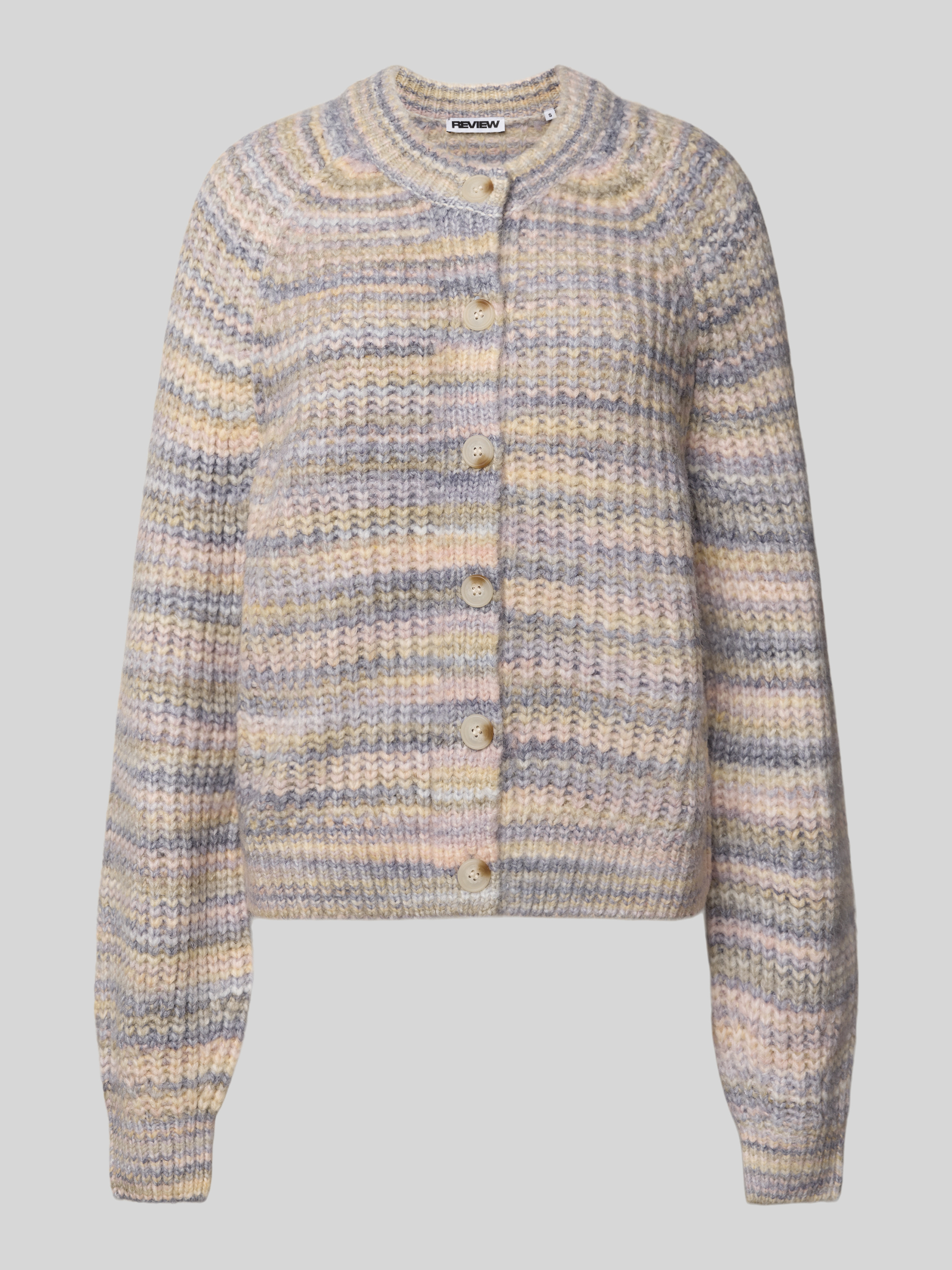 Der Damen Cardigan von Anna von Klinski x REVIEW zeichnet sich durch seinen Material-Mix mit Woll-Anteil aus, der angenehm wärmt und sich weich auf der Haut anfühlt. Durch den Regular Fit und den klassischen Rundhalsausschnitt entsteht eine entspannte Silhouette, die vielseitig kombinierbar bleibt. Verschiedene Farben und elastische Ärmelabschlüsse runden das Tragegefühl harmonisch ab.