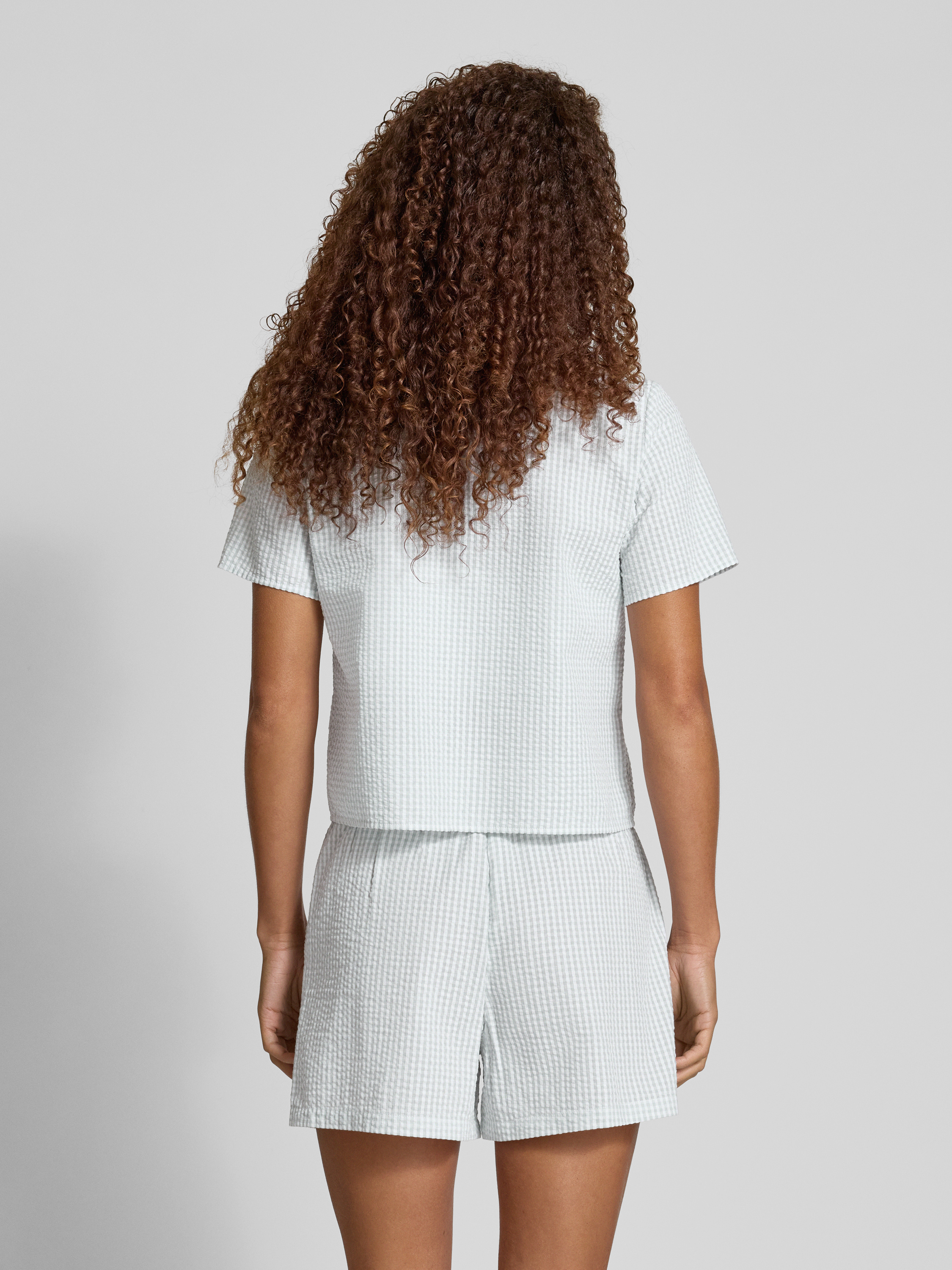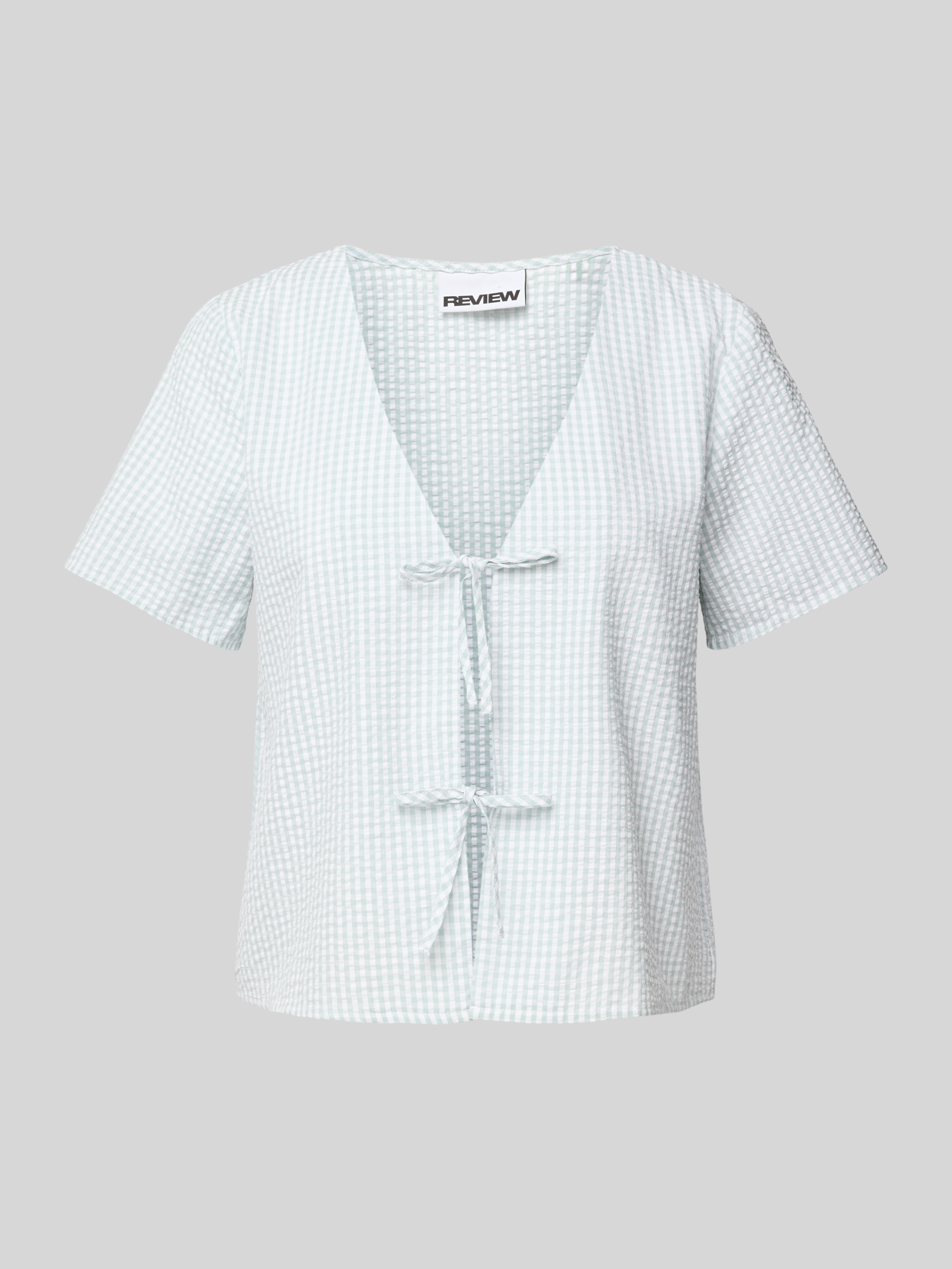 Die REVIEW Bluse aus Baumwoll-Mix vereint lässigen Komfort mit einem eleganten V-Ausschnitt und einem praktischen Bindeverschluss. Der gerade Schnitt und die halblangen Ärmel sorgen für eine entspannte Passform, die vielseitig im Alltag oder zu besonderen Anlässen getragen werden kann.