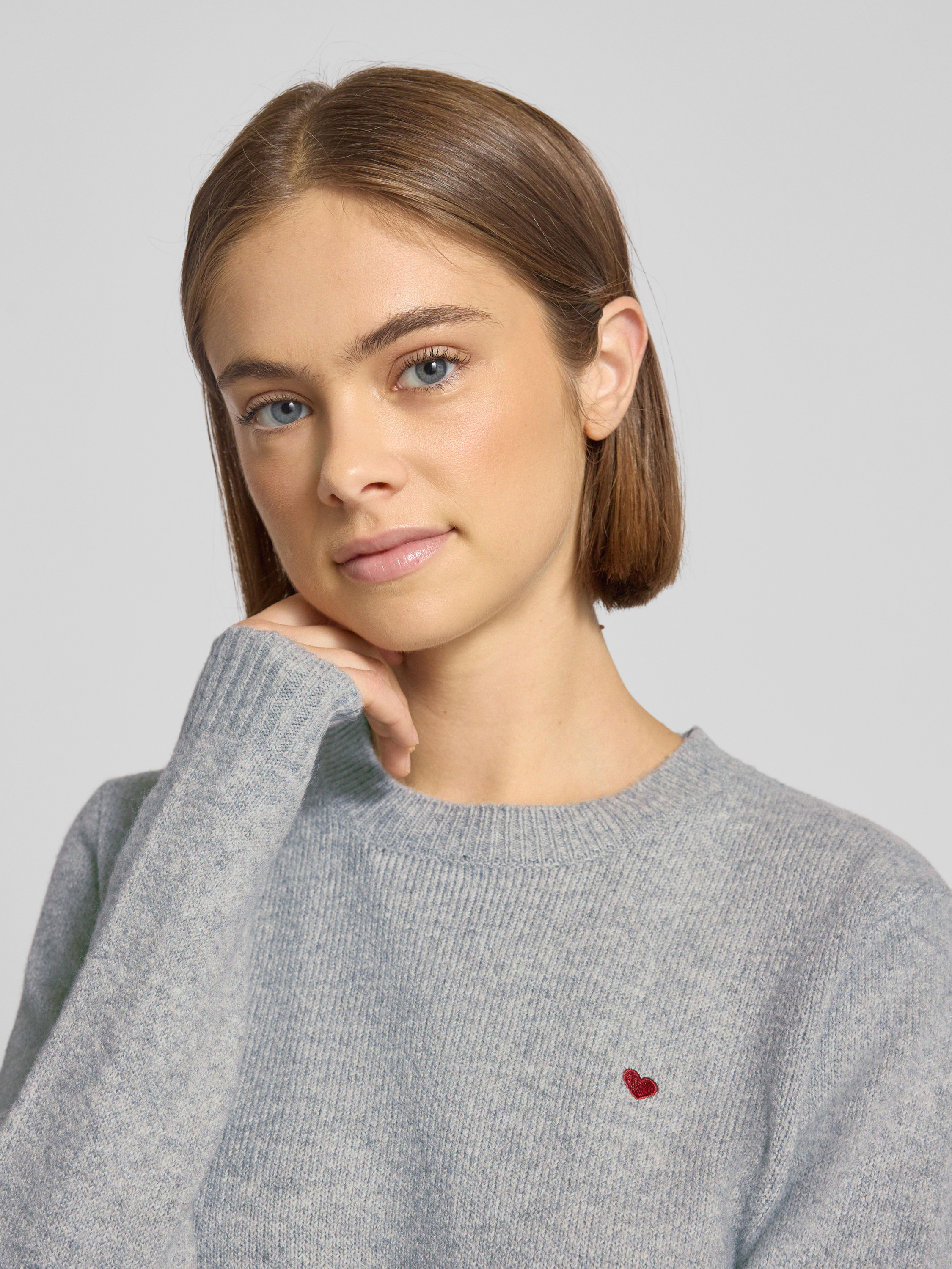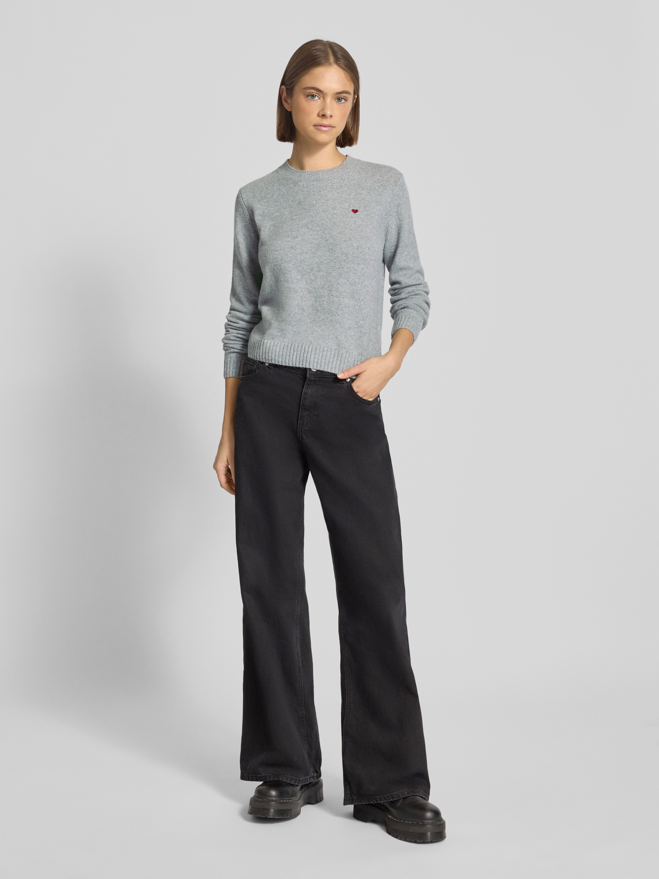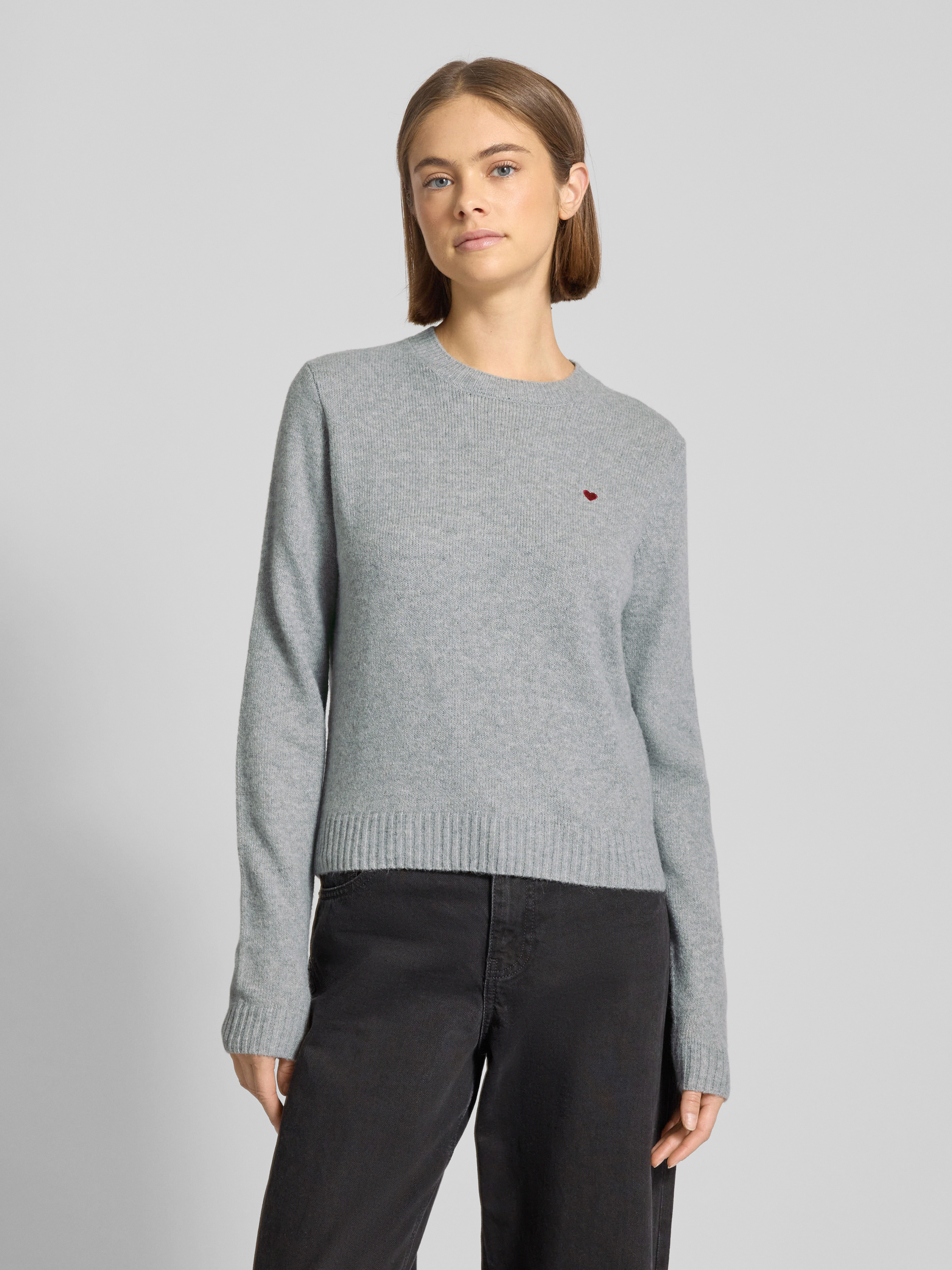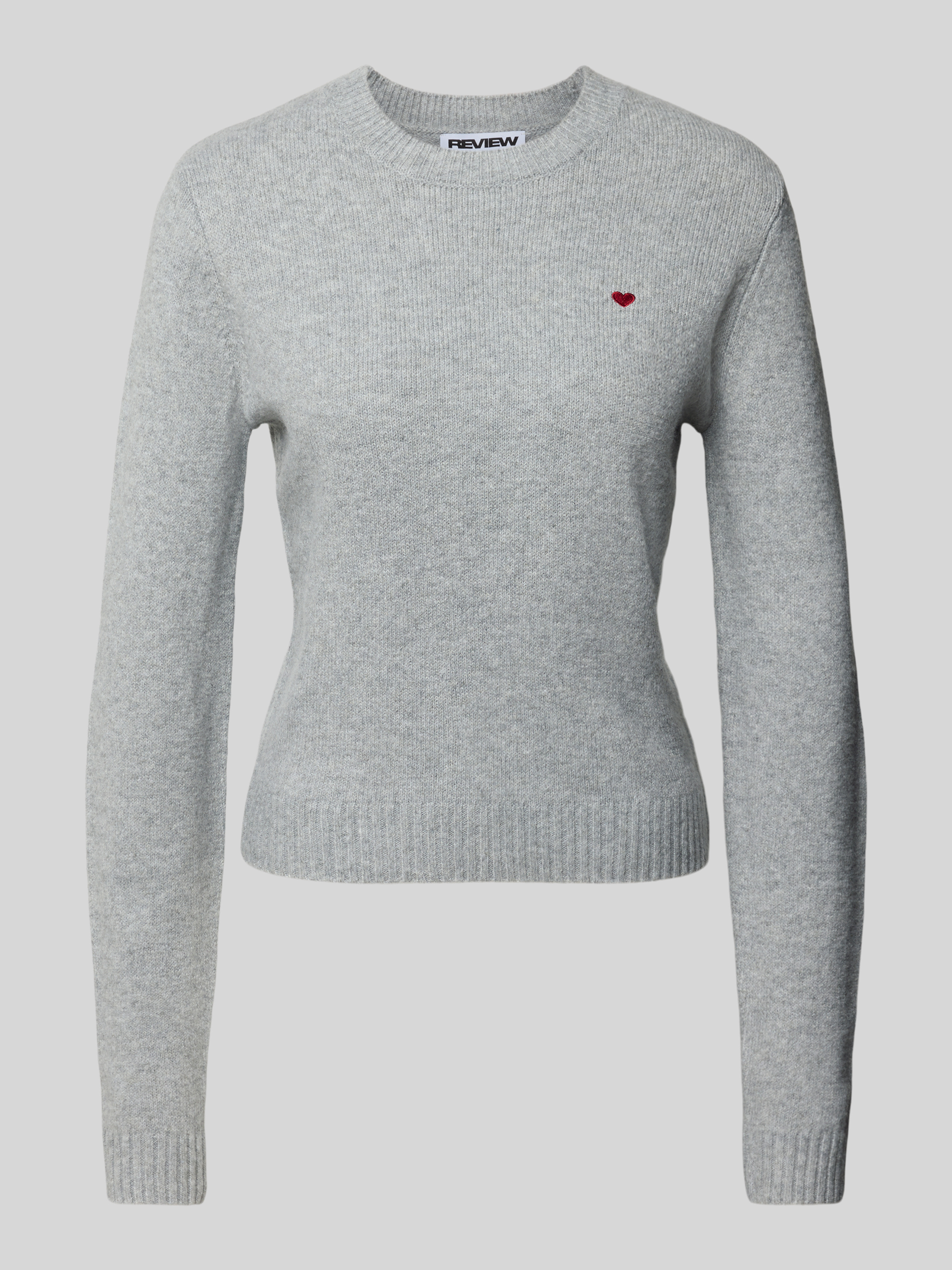 ReviewEng anliegender Strickpullover mit Rundhalsausschnitt in hellgrau melange