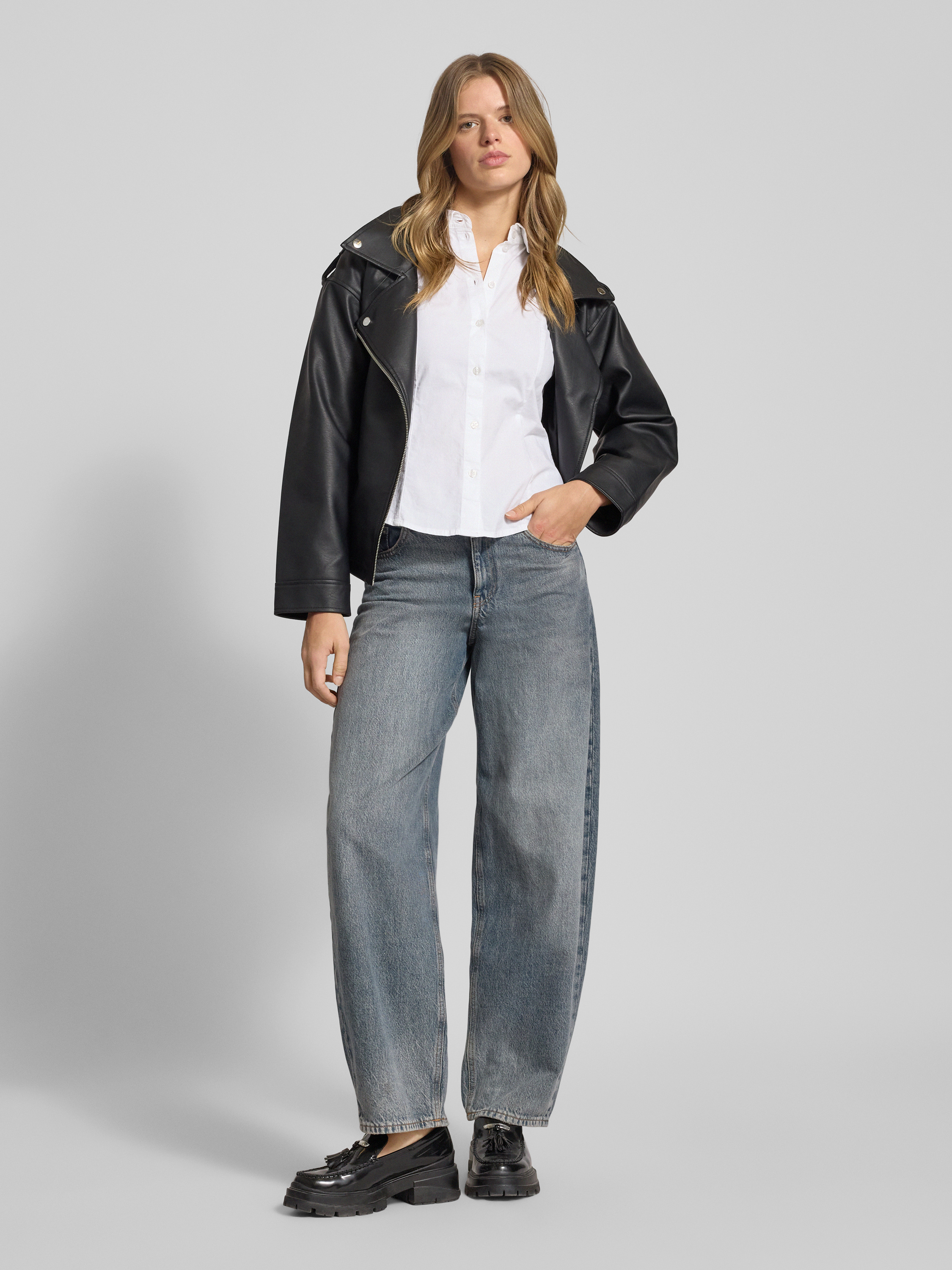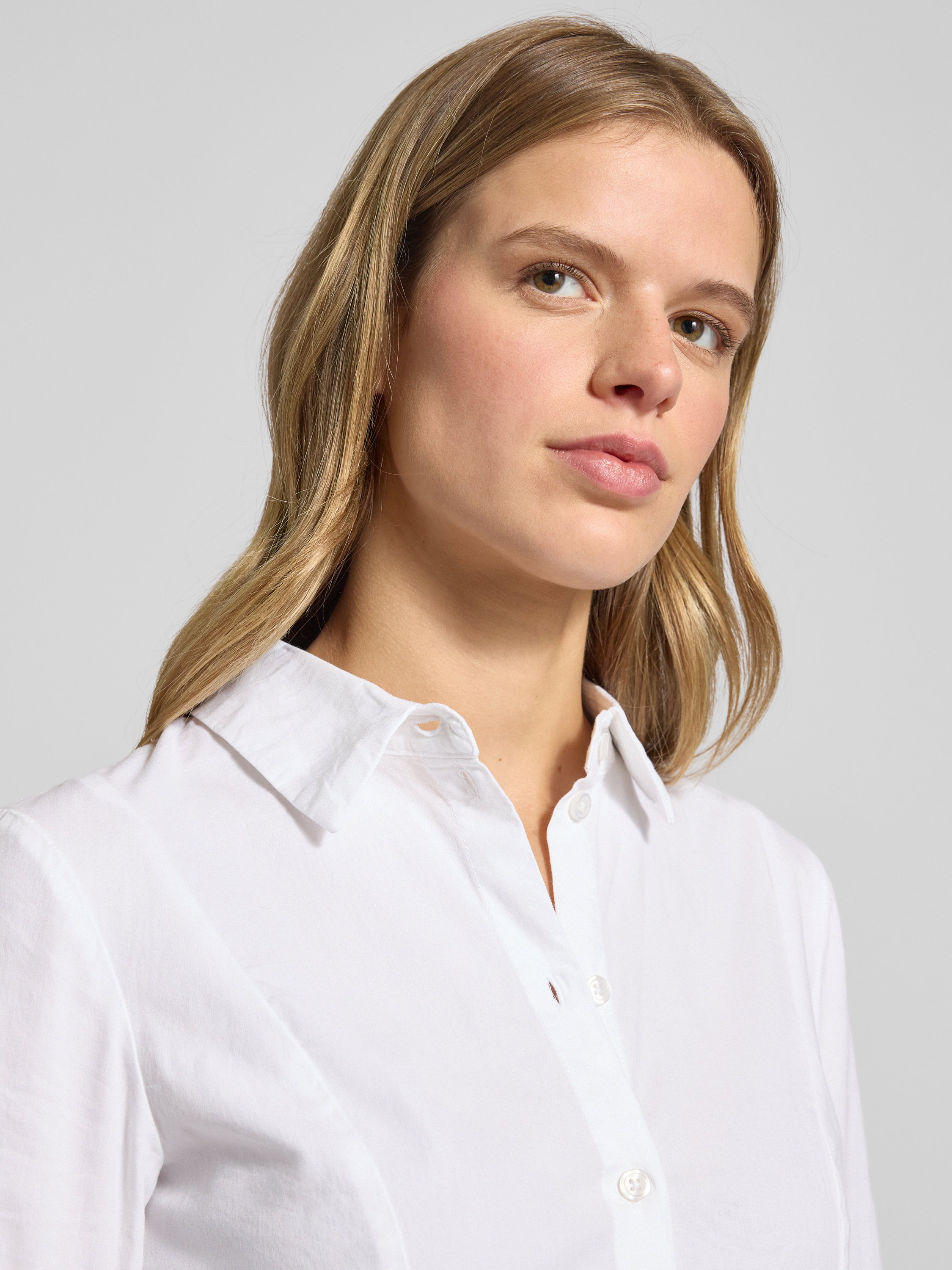 Die Damen Hemdbluse von Review fällt durch ihren lockeren Schnitt auf, wodurch Bewegungsfreiheit im Alltag entsteht. Durch den klassischen Hemdblusenkragen und die Knopfleiste wirkt das Modell vielseitig kombinierbar. Der Baumwoll-Elasthan-Mix fühlt sich angenehm auf der Haut an und erleichtert das Tragen.