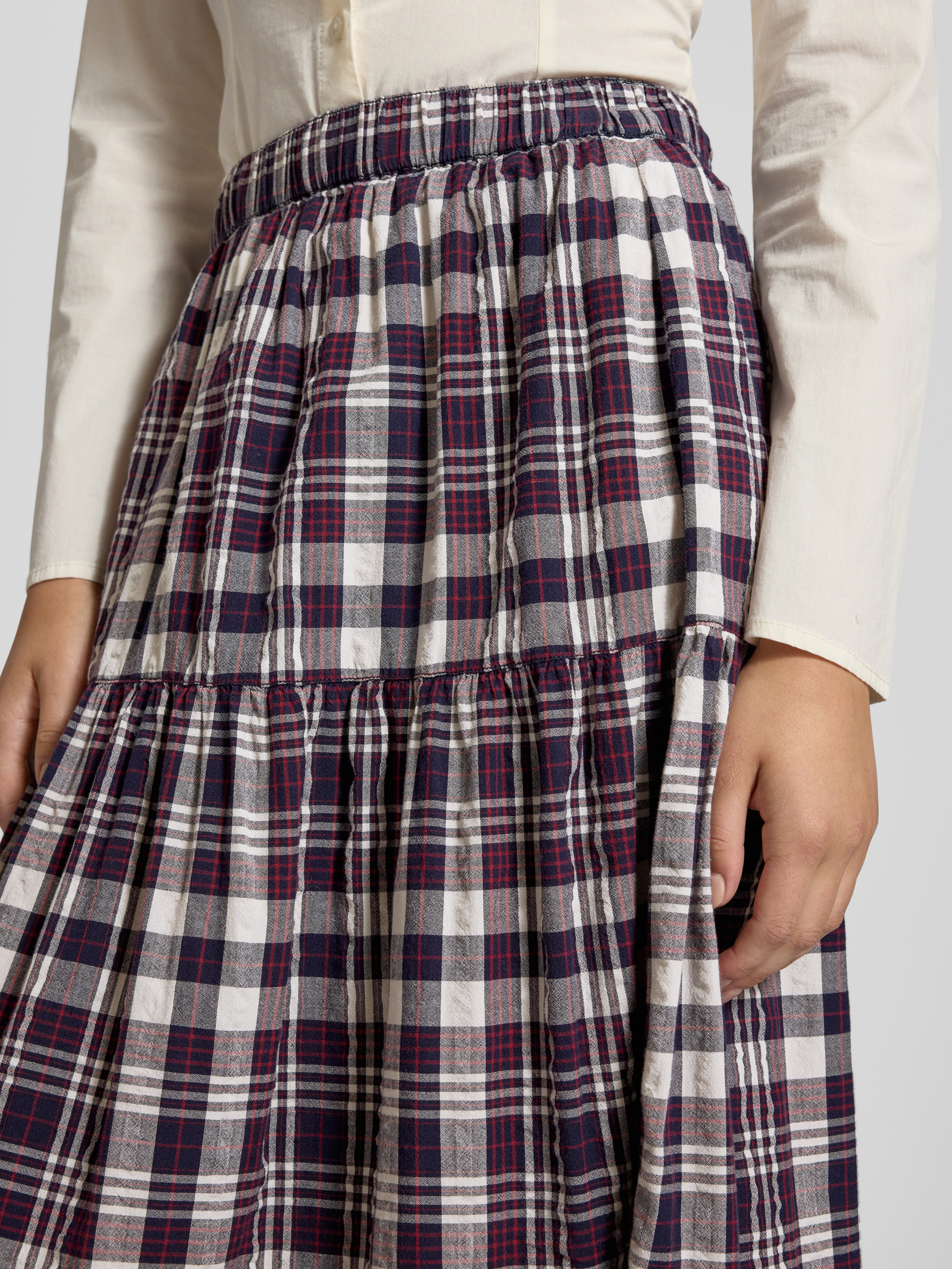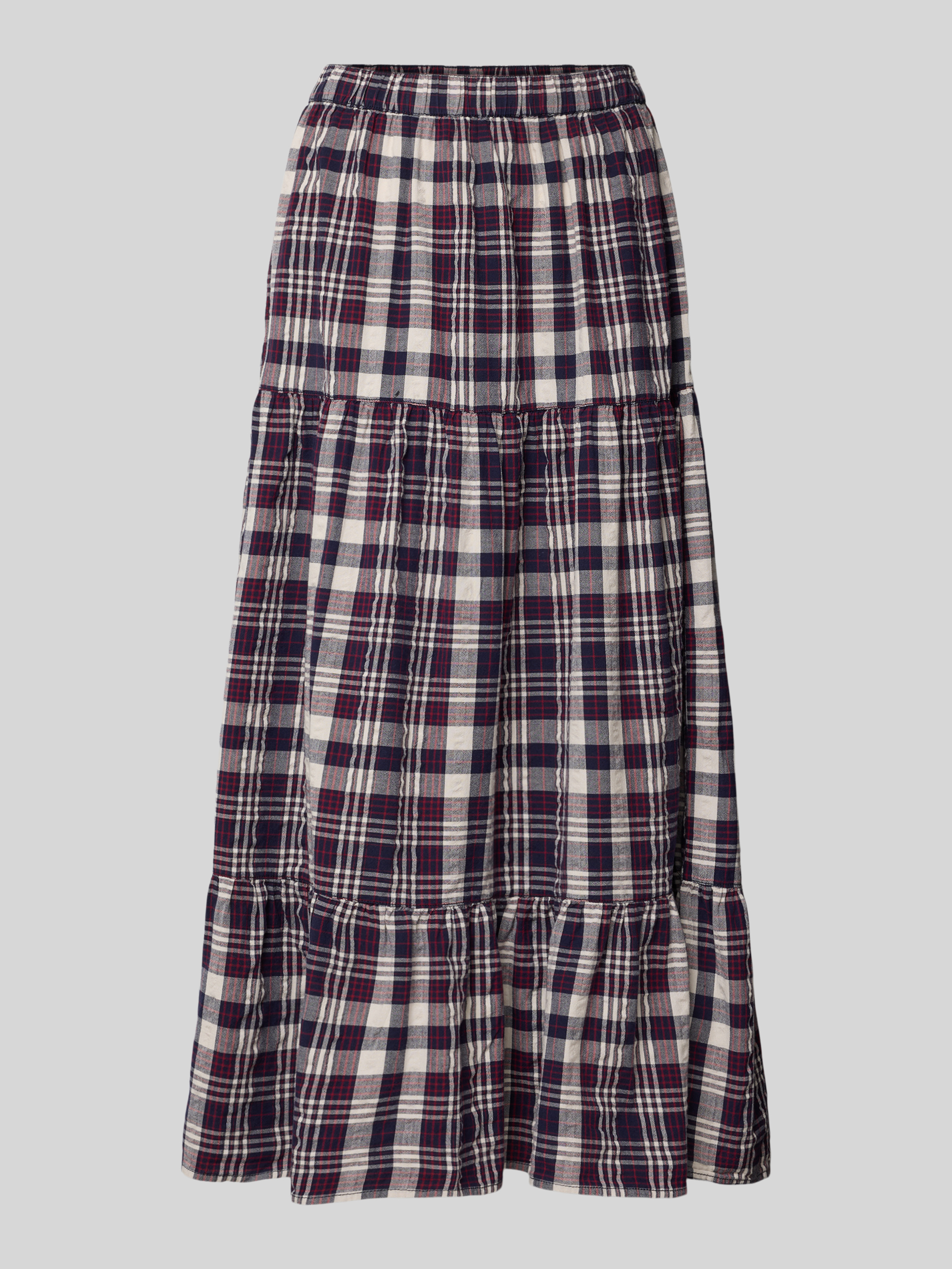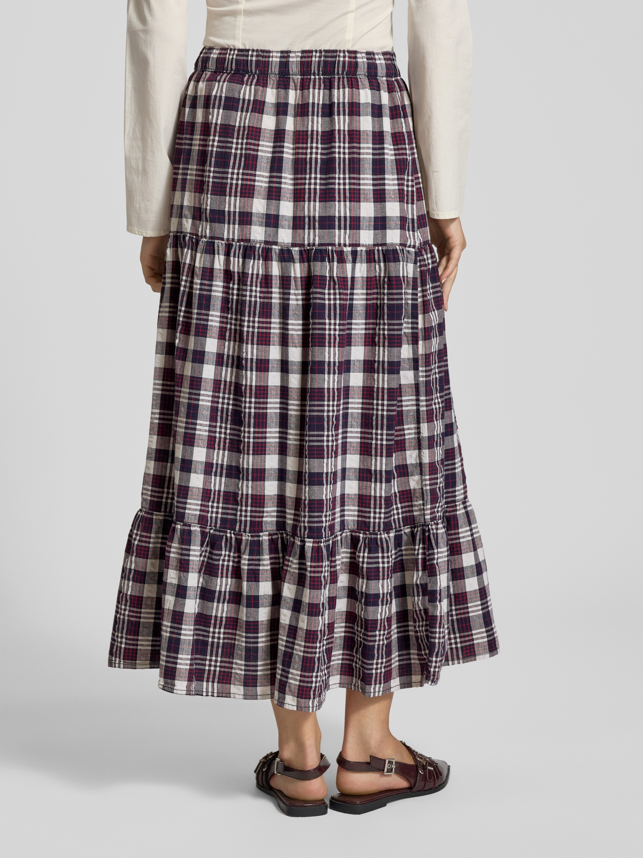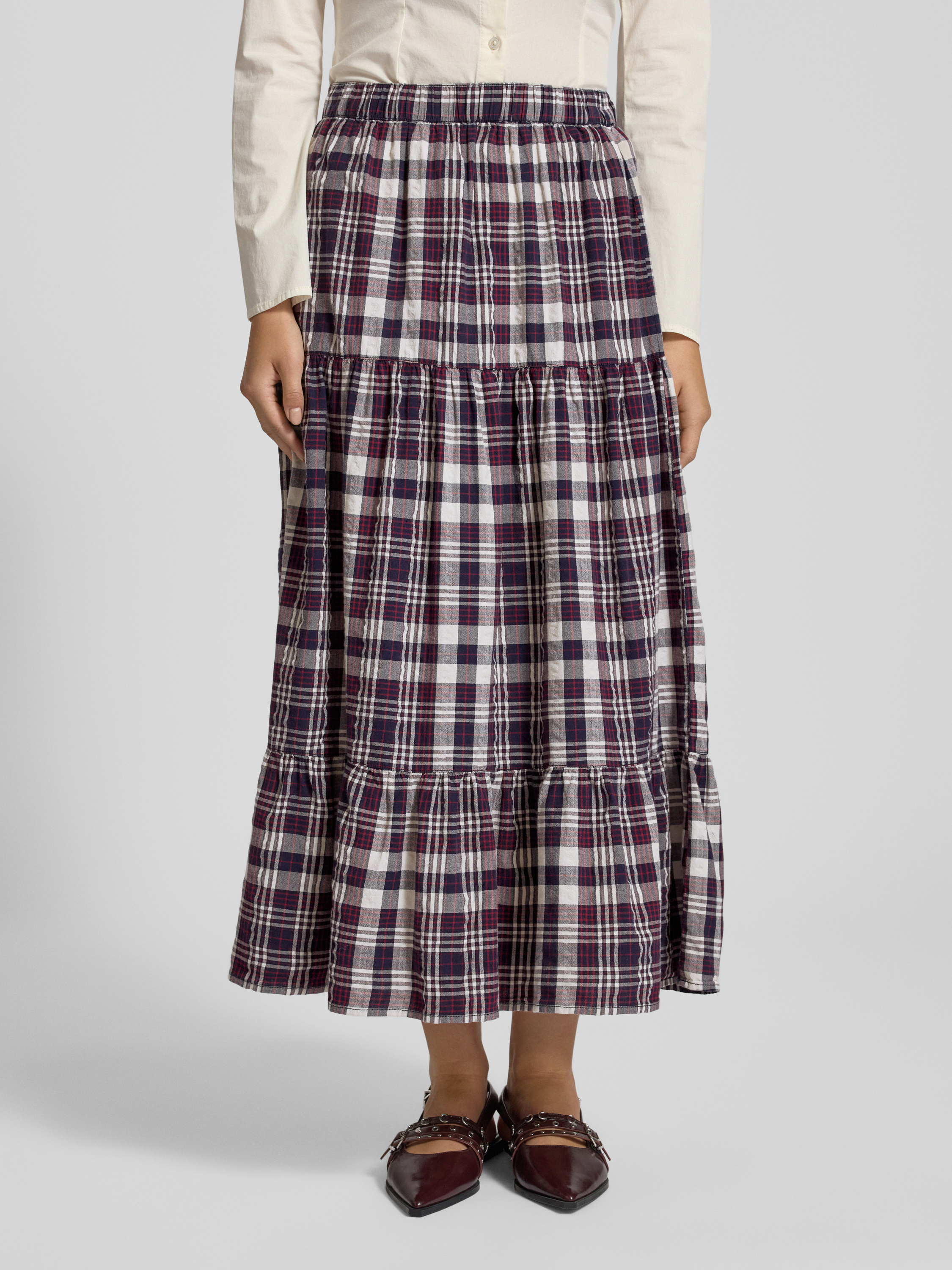 Der Maxirock von Review zeigt sich mit locker fallendem Stufen-Look und sorgt durch den ausgestellten Schnitt für angenehme Bewegungsfreiheit. Reine Baumwolle schenkt ein natürliches Tragegefühl und unterstreicht die Alltagstauglichkeit. Der elastische Bund passt sich flexibel an, sodass man sich entspannt bewegen kann.