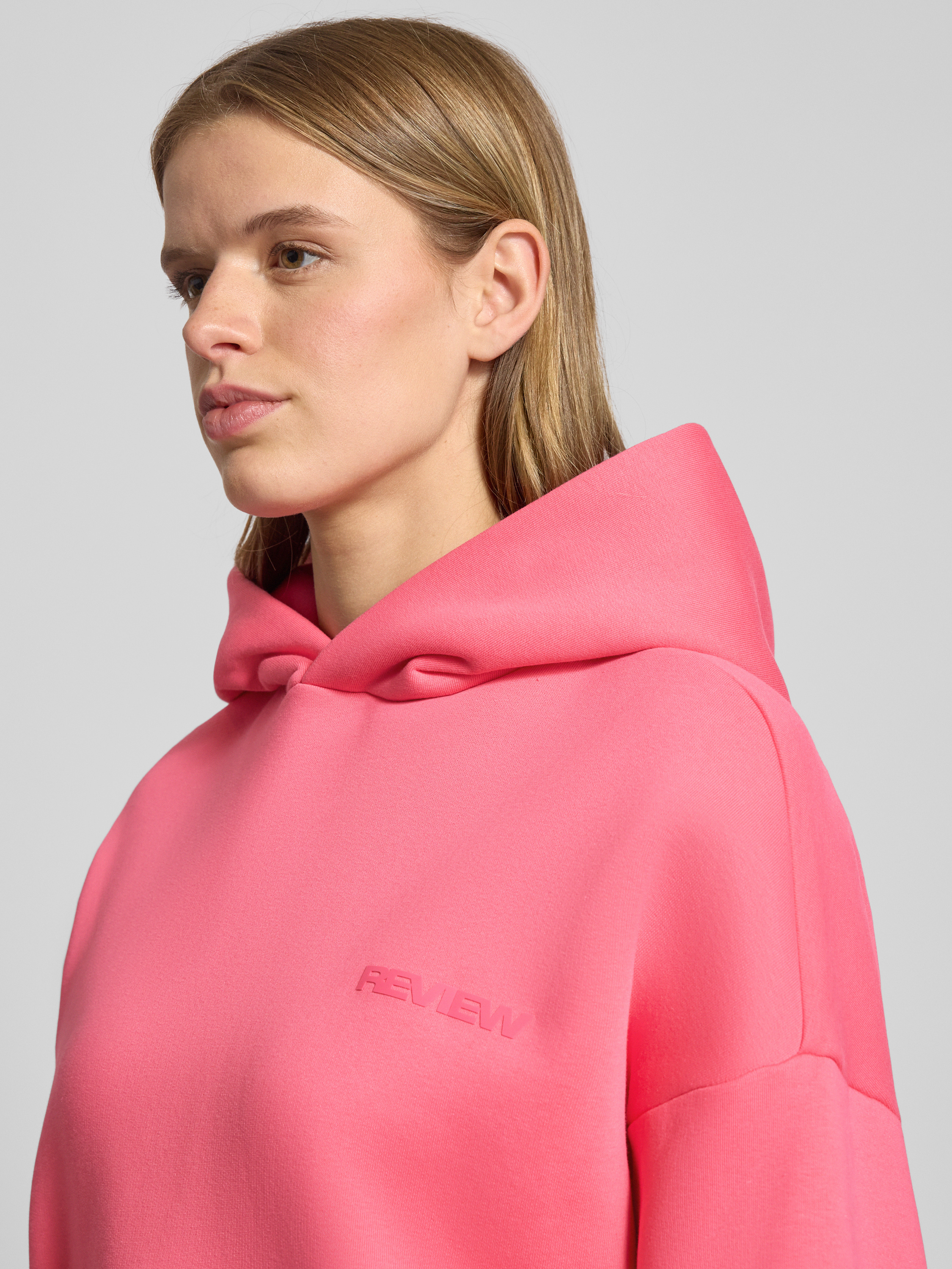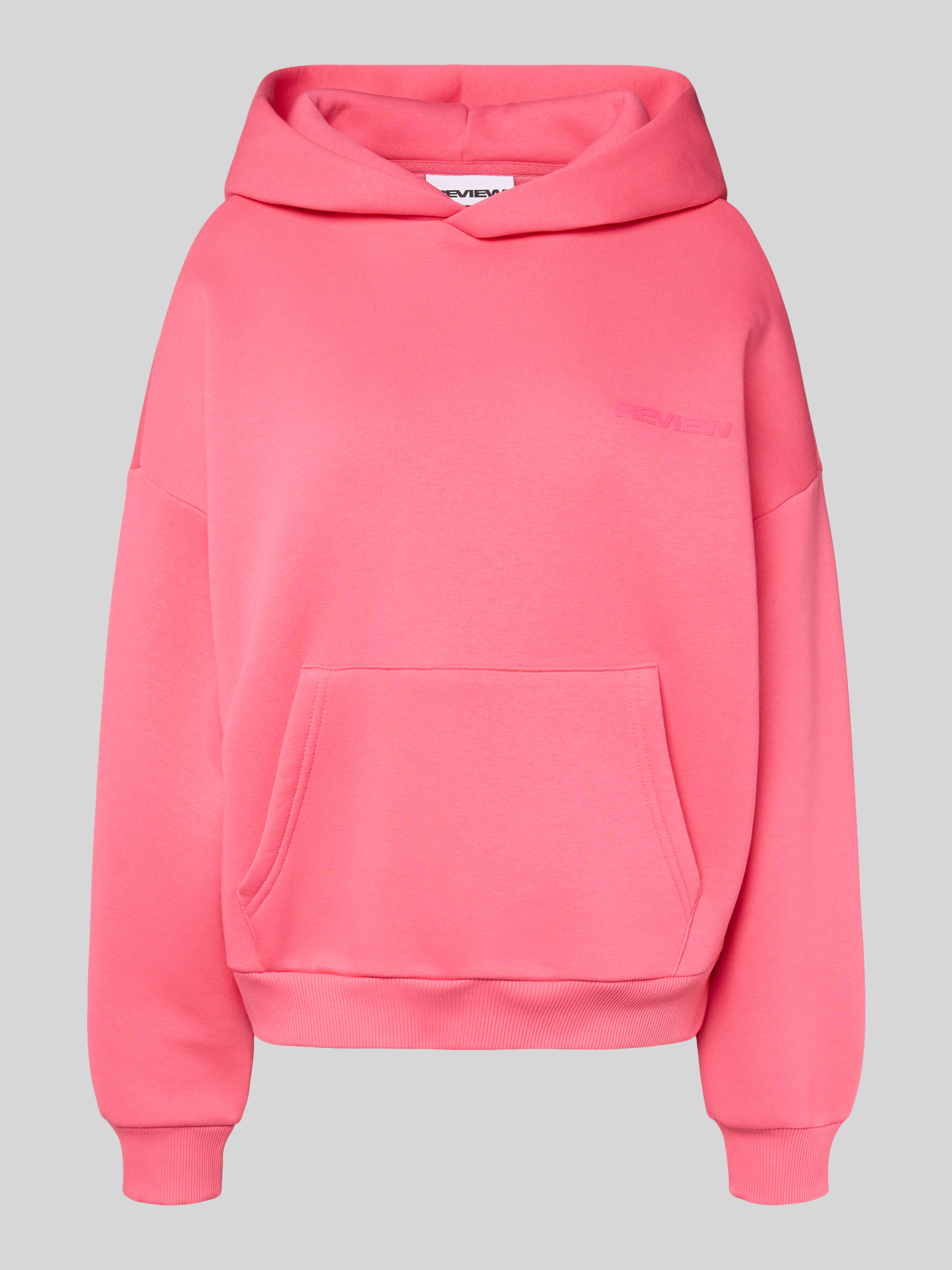 Der Damen Hoodie von Review kommt im lockeren Oversized-Schnitt daher und sorgt durch den Baumwoll-Mix für ein angenehmes Tragegefühl. Die großzügige Kapuze und die praktische Känguru-Tasche verleihen dem Modell eine entspannte Note. Ein Label-Print setzt einen dezenten Akzent.