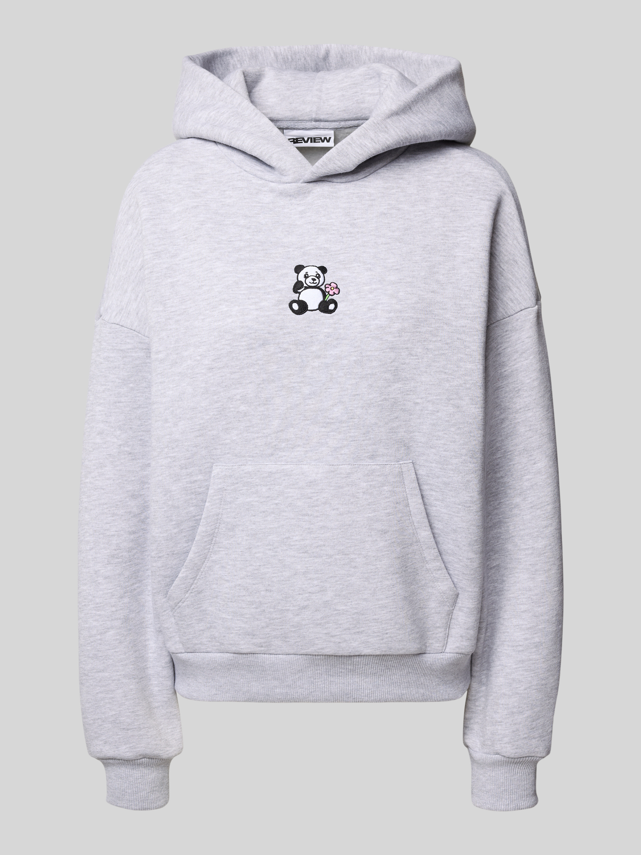 ReviewOversized Hoodie mit Motiv-Stitching in hellgrau melange