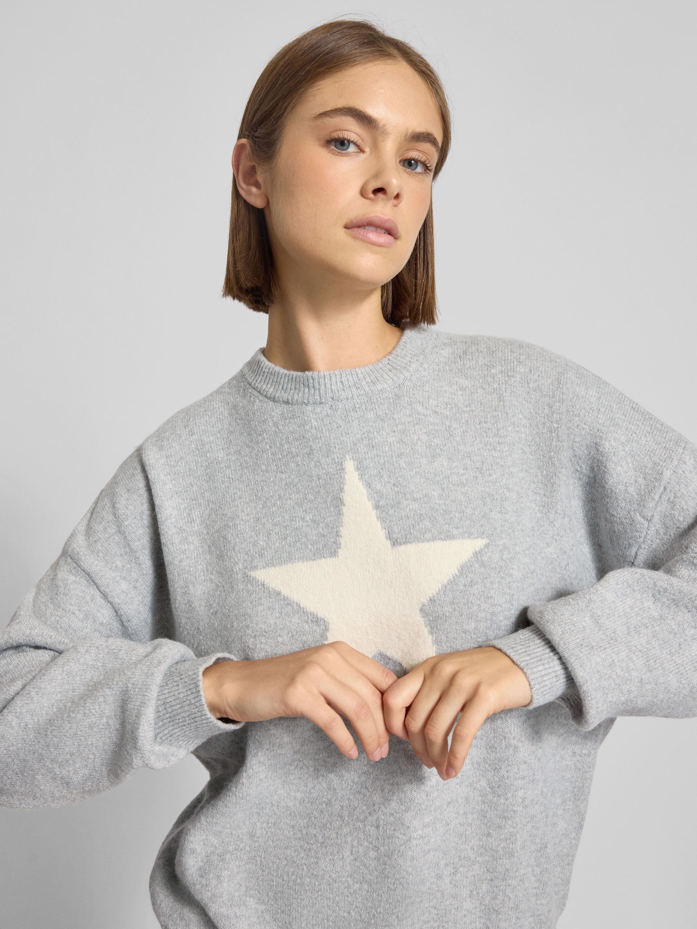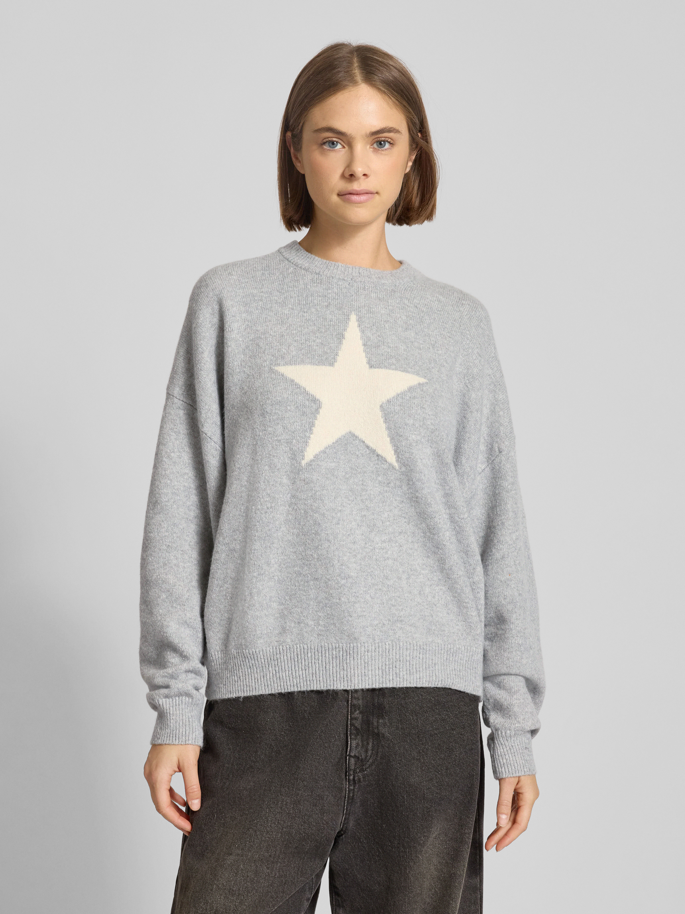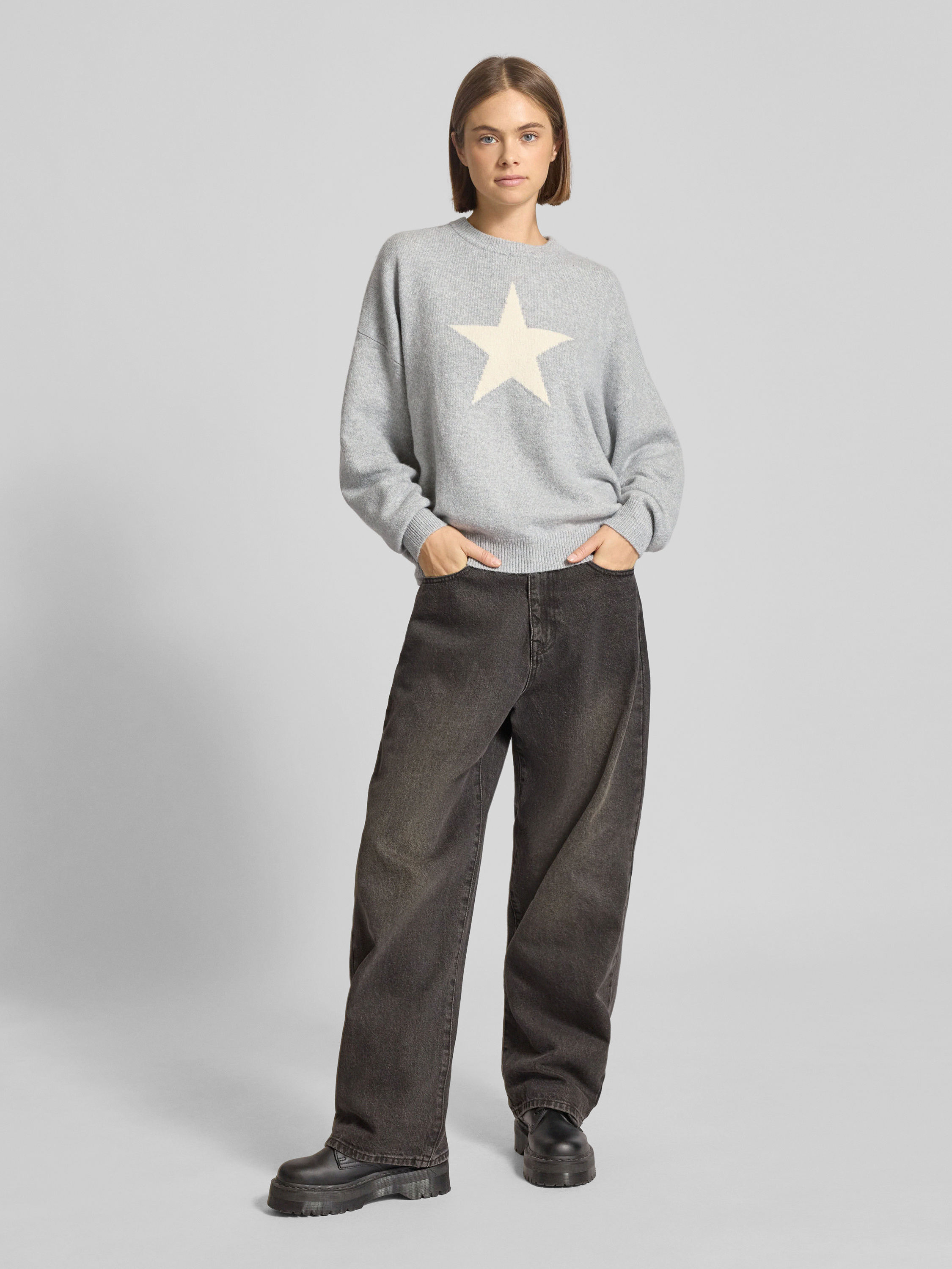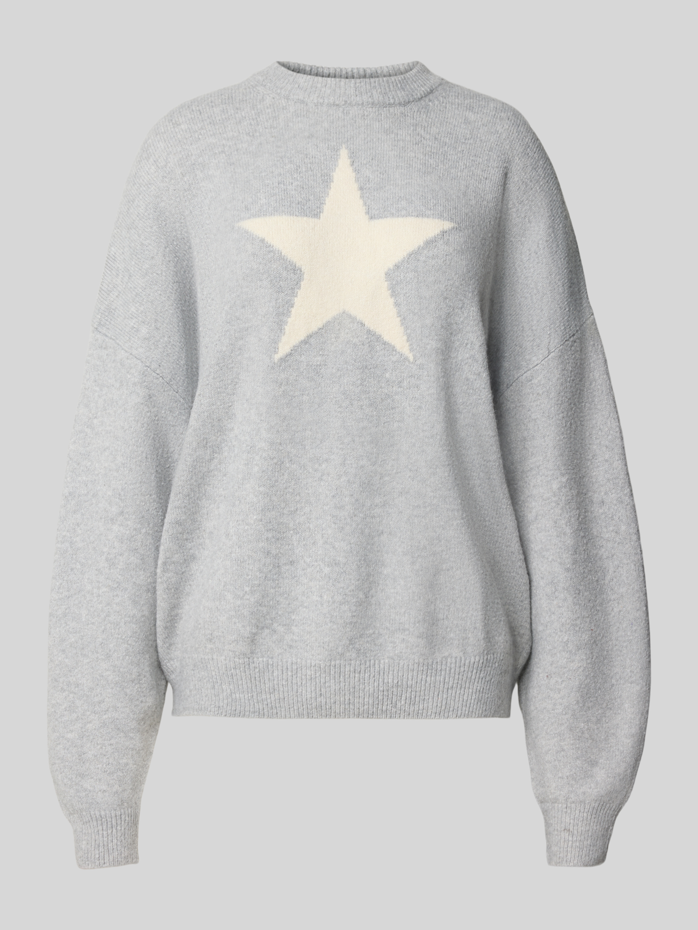 ReviewOversized Strickpullover mit Rundhalsausschnitt in hellgrau melange