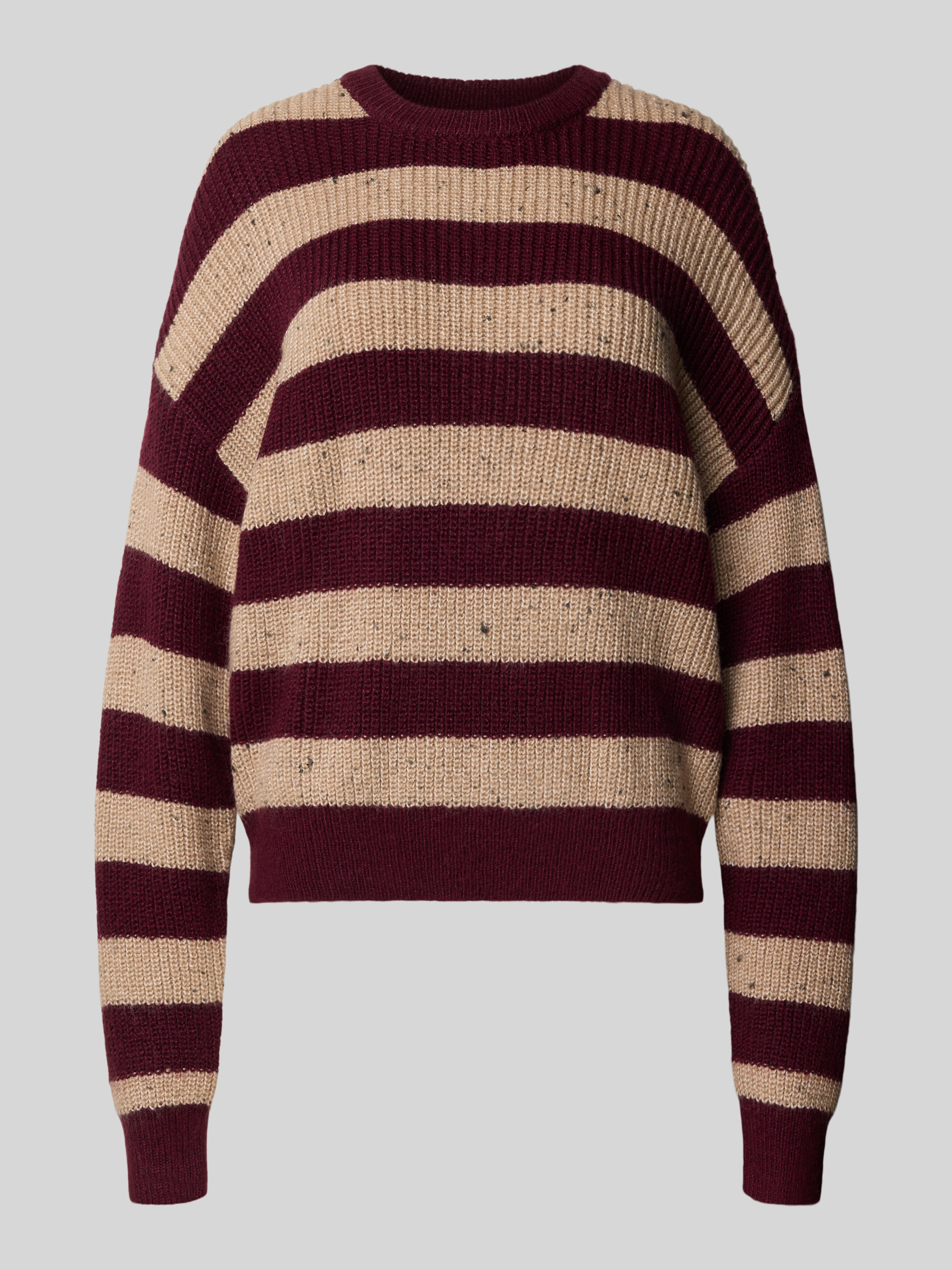 Der Damen Strickpullover von Review fällt durch seinen oversized Schnitt angenehm locker und sorgt so für ein entspanntes Tragegefühl. Ein Streifenmuster verleiht dem Modell eine lebendige Note, während der Rundhalsausschnitt und überschnittene Schultern Bewegungsfreiheit im Alltag unterstützen. Mit diesem Pullover eignet man sich unkomplizierte Kombinationsmöglichkeiten an.