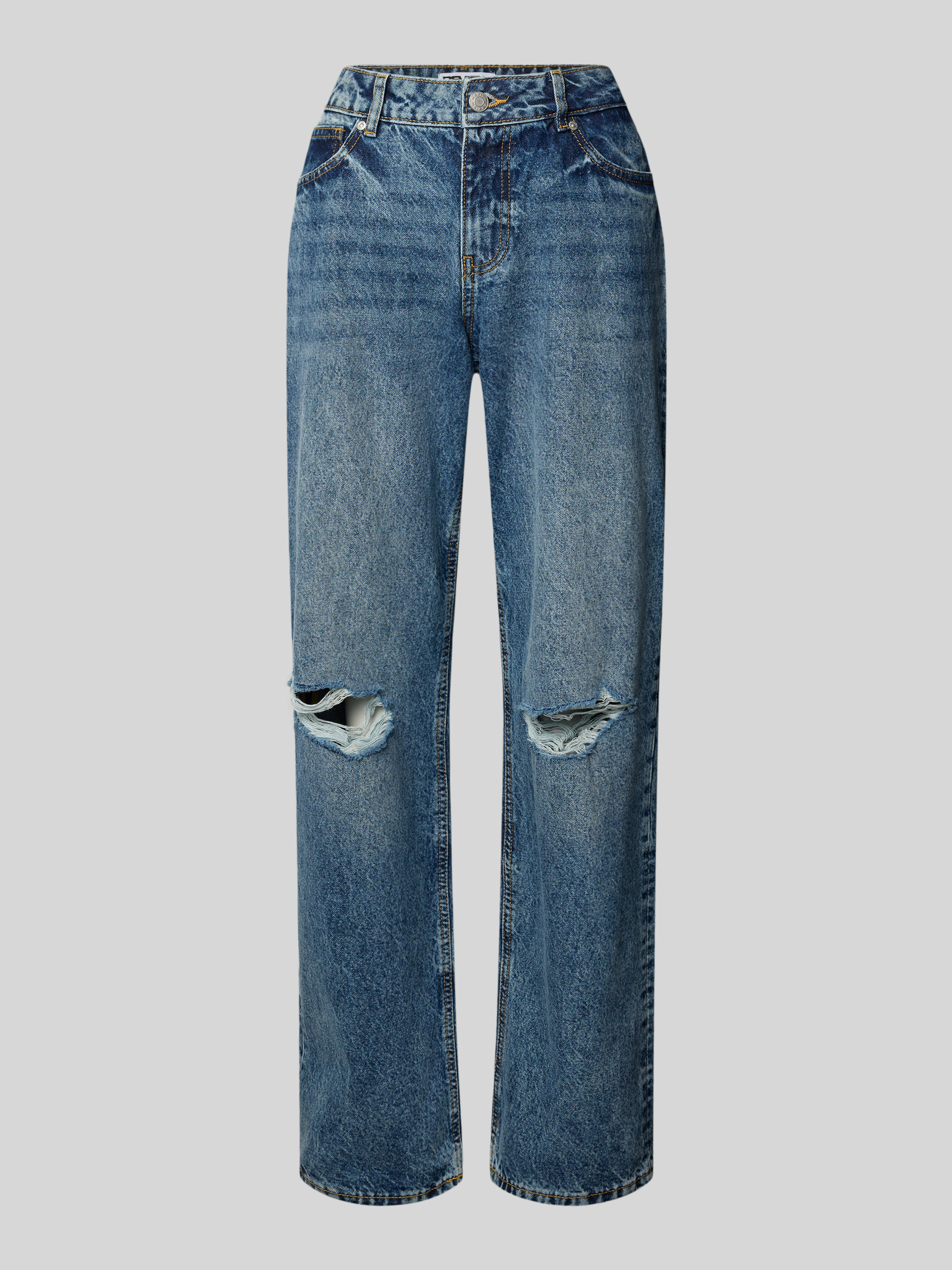 Die Straight Leg Jeans im Destroyed-Look von Review kombiniert lässigen Stil mit klassischer Passform. Aus reiner Baumwolle gefertigt, bietet sie Komfort und Atmungsaktivität. Der Mid Waist Schnitt und das 5-Pocket-Design machen sie zum vielseitigen Begleiter für den Alltag.
