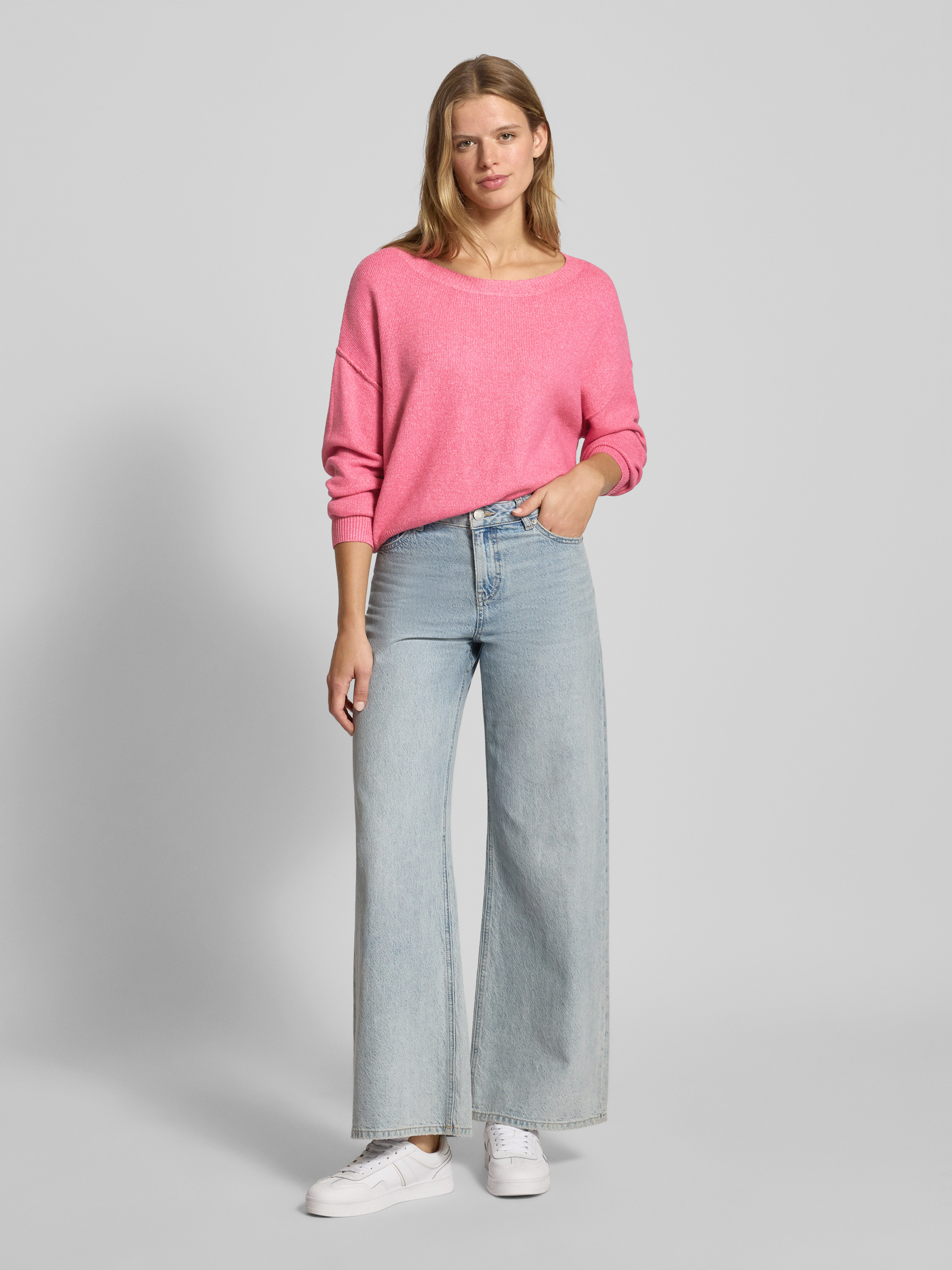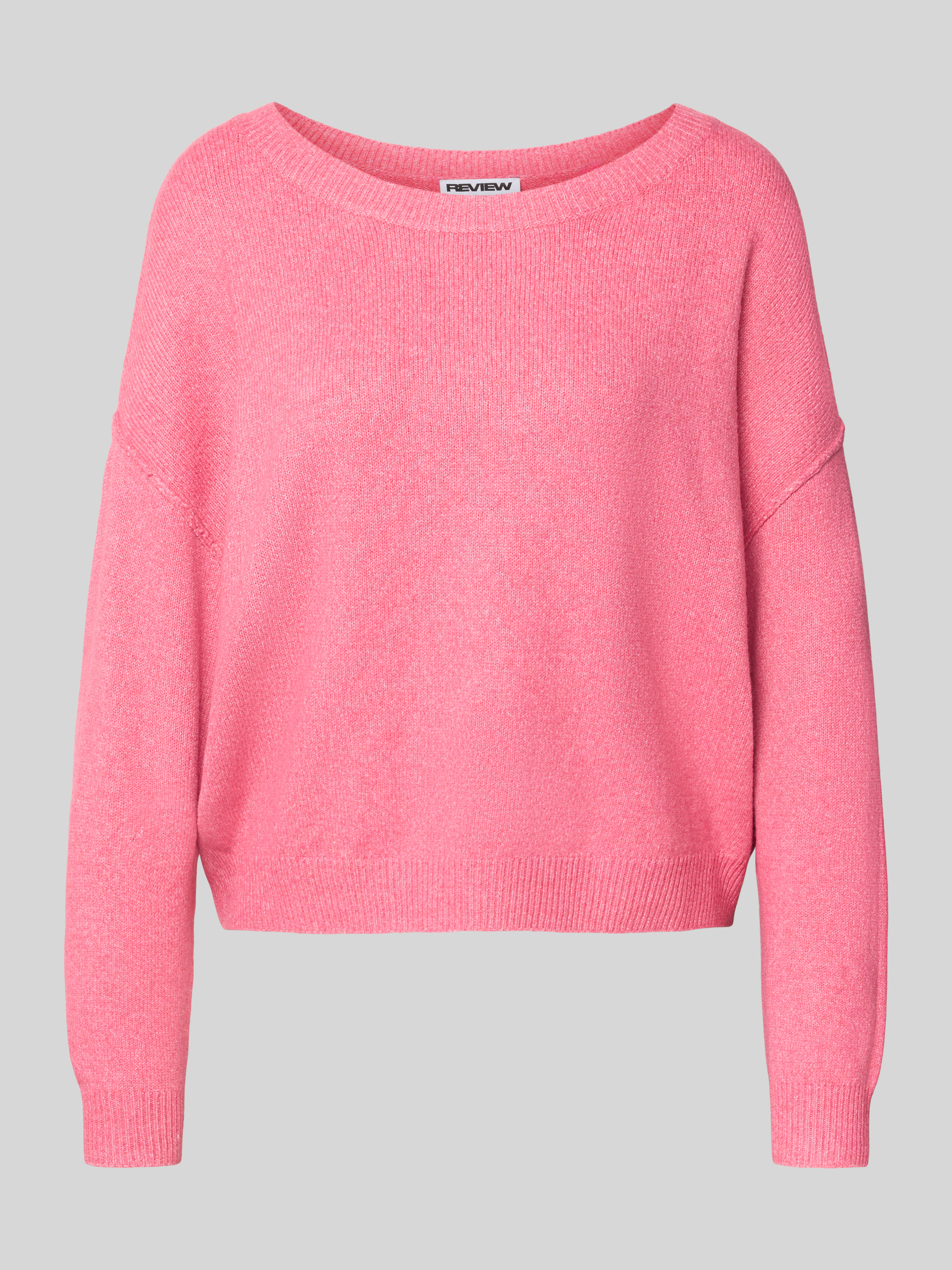 ReviewStrickpullover mit tiefem U-Boot Ausschnitt in neon pink melange