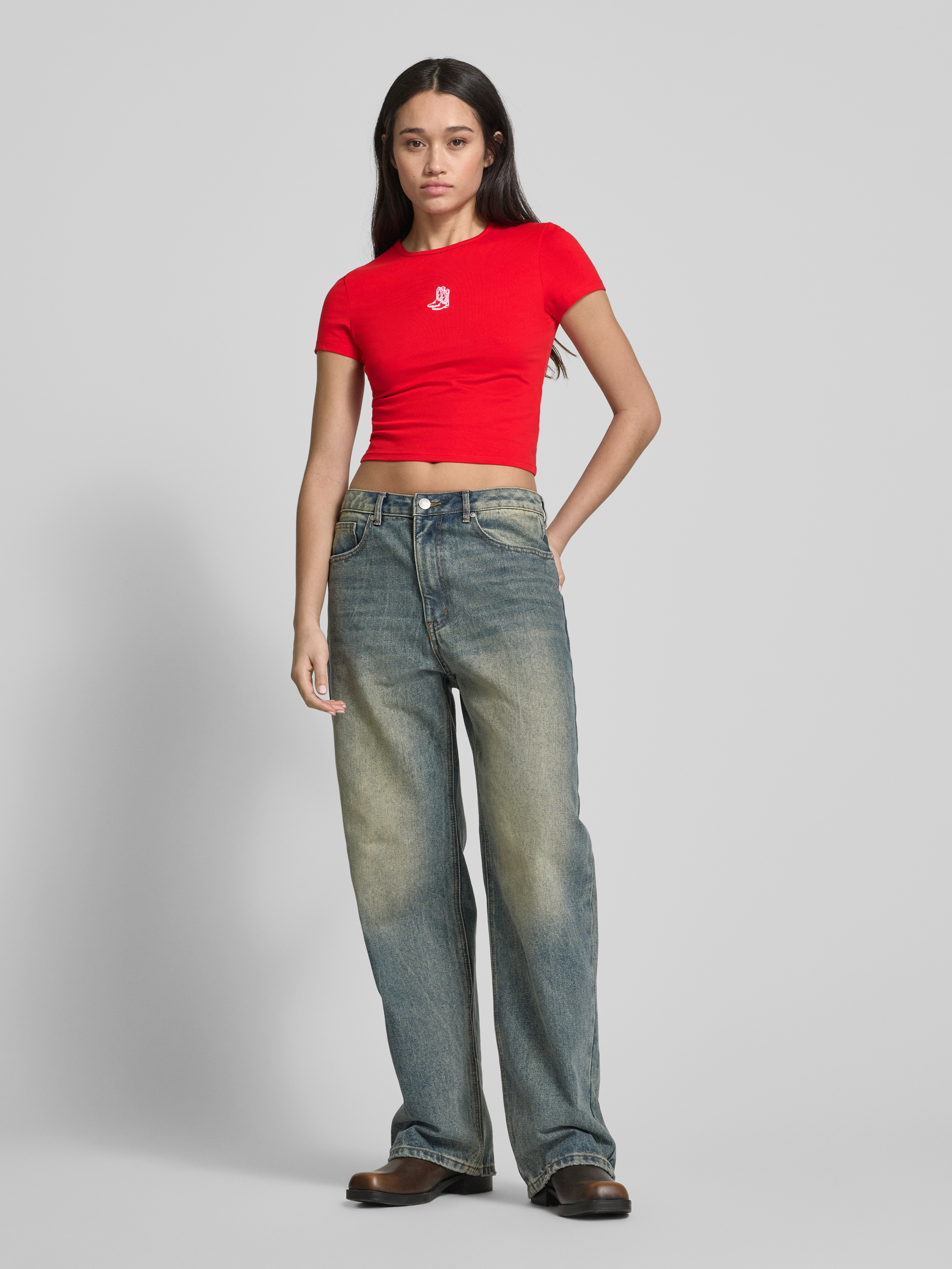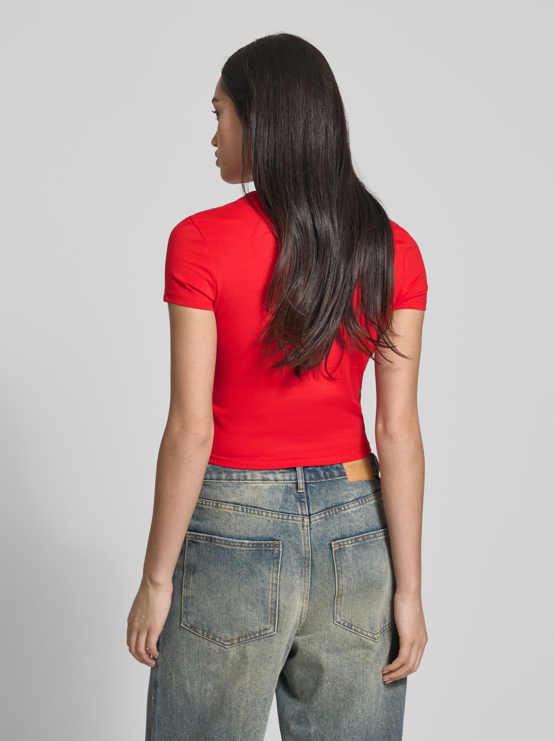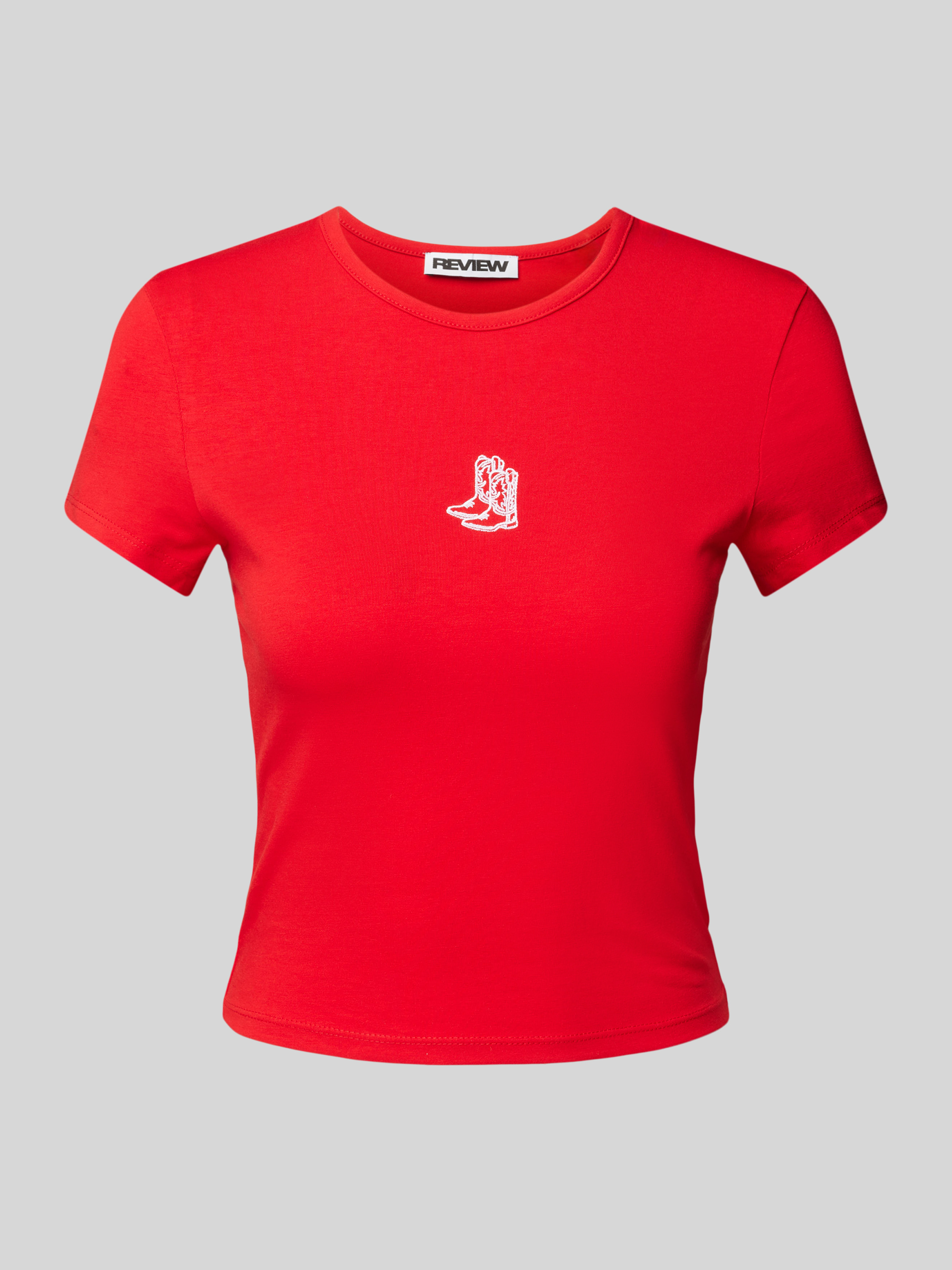 ReviewT-Shirt mit Label-Stitching in kirsche