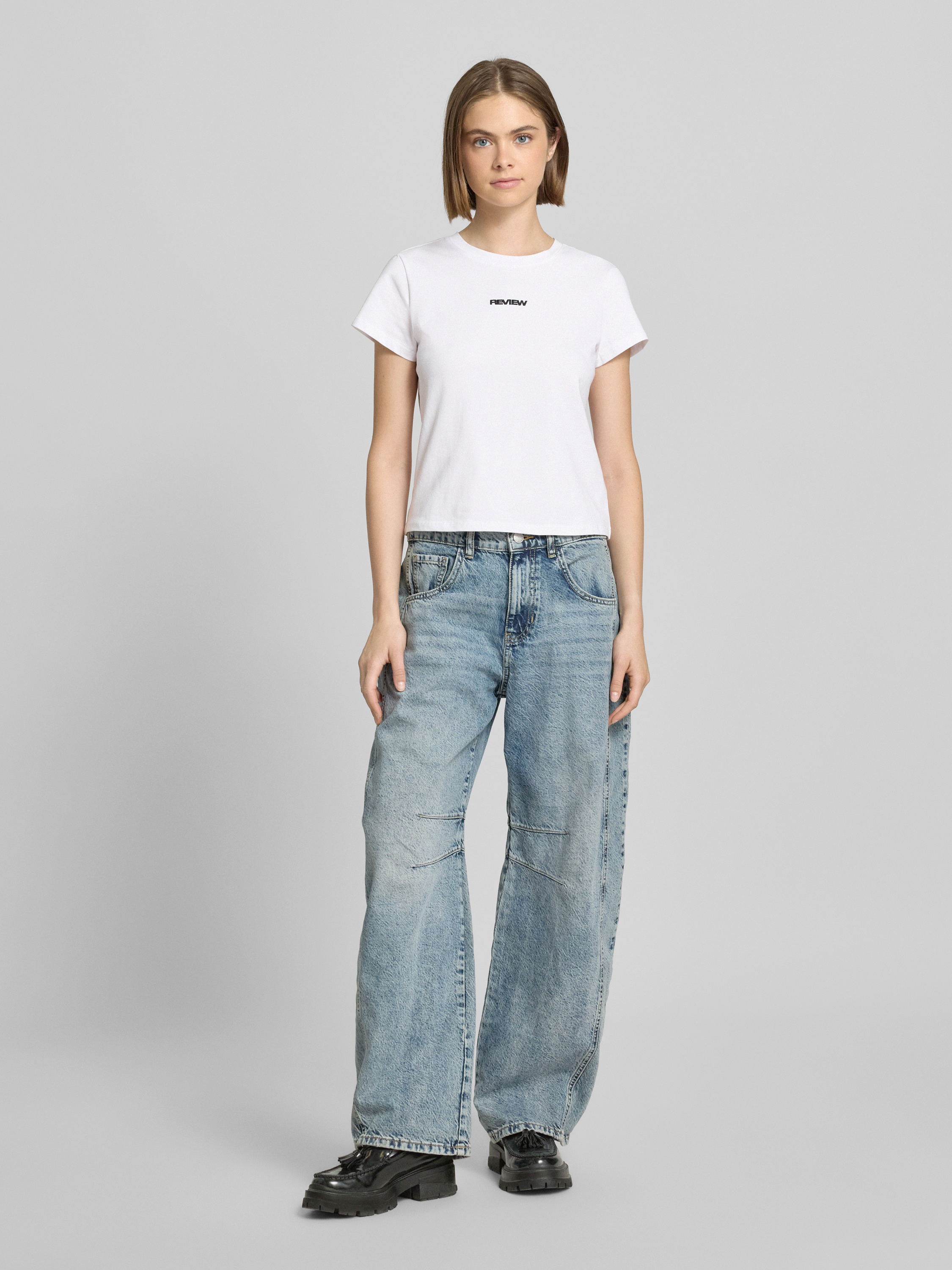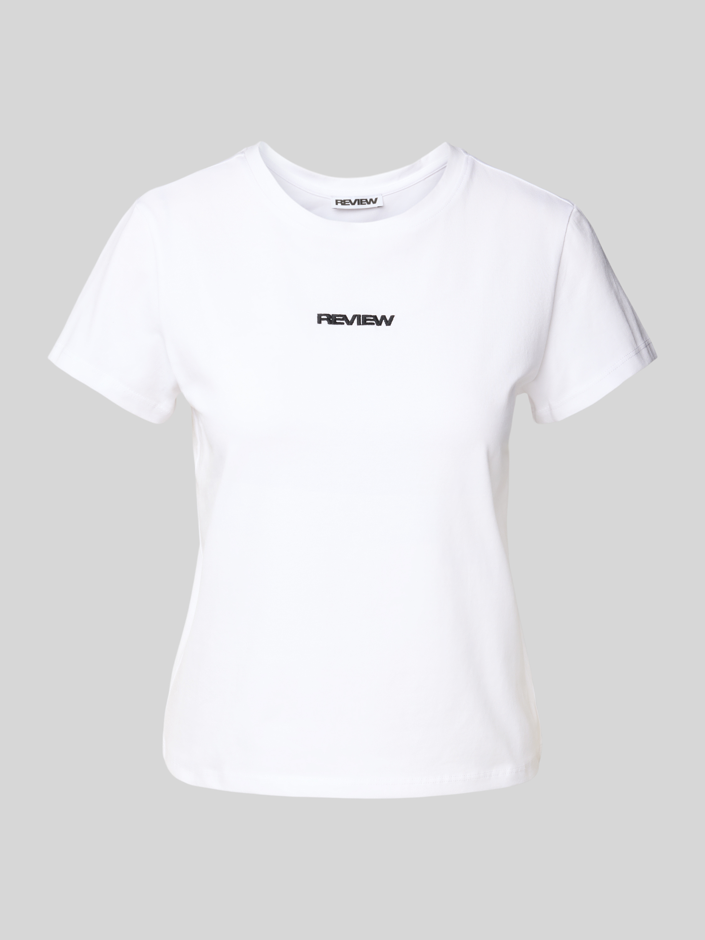 ReviewT-Shirt mit Label-Stitching und Rundhalsausschnitt in weiss