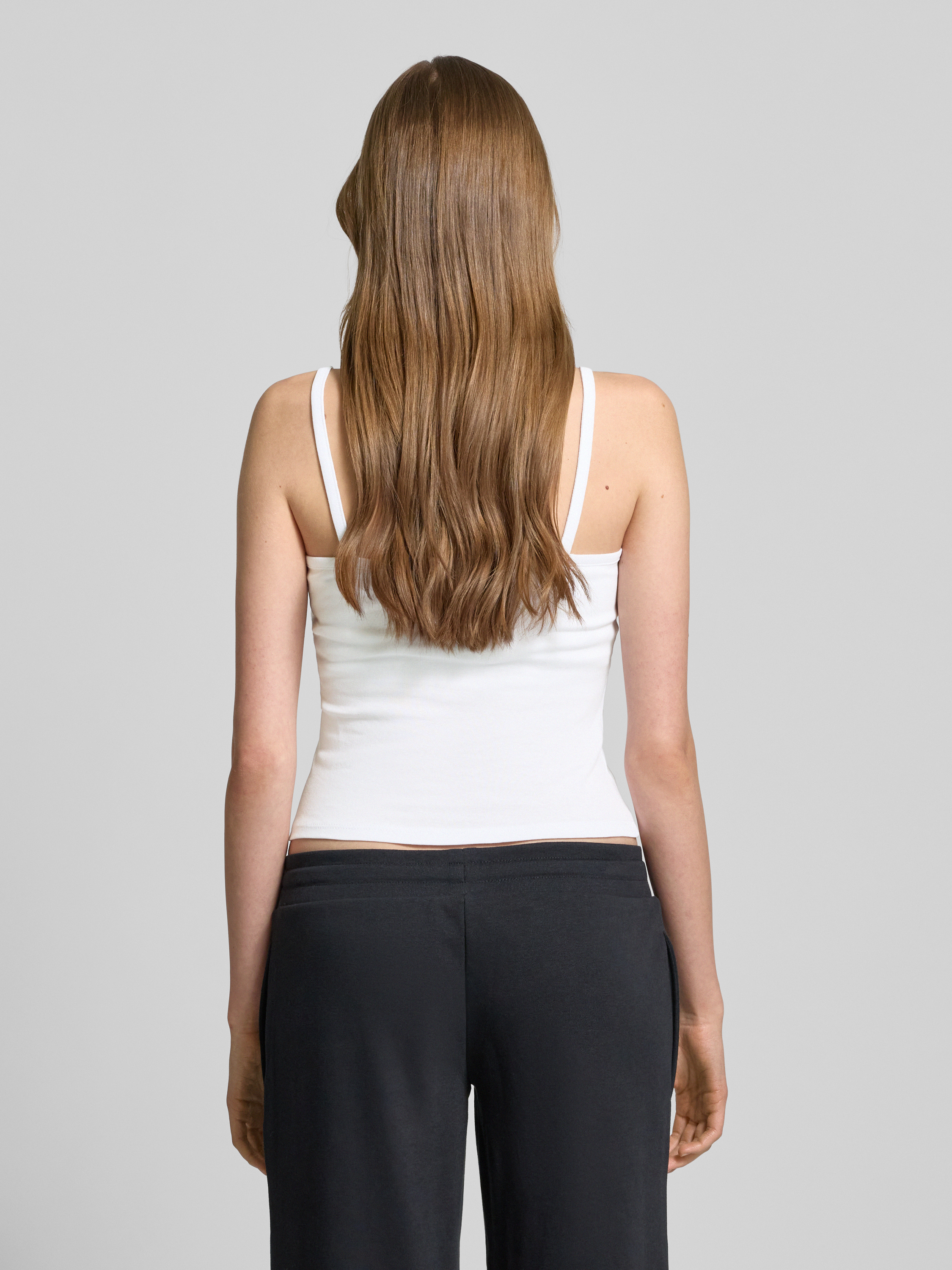 Das REVIEW Damen Top zeichnet sich durch seinen körpernahen Schnitt und die feine Verarbeitung aus reiner Baumwolle aus. Die zarten Spaghettiträger verleihen Leichtigkeit, während das kreative Motiv-Stitching einen dezenten Blickfang bietet. Es eignet sich ideal für sommerliche Tage und entspannte Stunden.