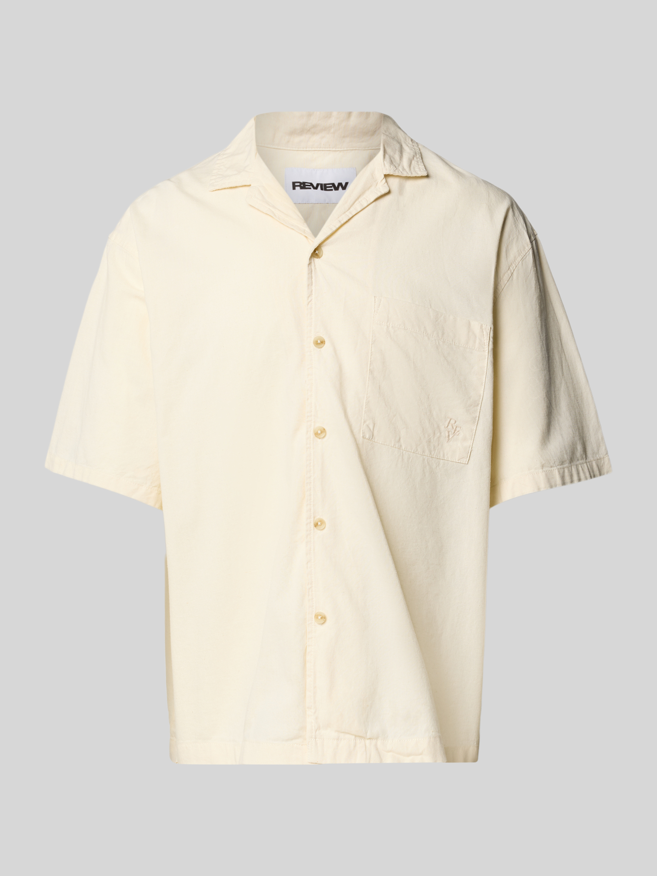 Das Herren Freizeithemd von REVIEW aus einem Baumwoll-Leinen-Mix überzeugt durch seinen legeren Loose Fit. Mit einem Reverskragen und halblangen Ärmeln eignet es sich ideal für entspannte Tage. Eine praktische Brusttasche rundet das Design funktional ab.