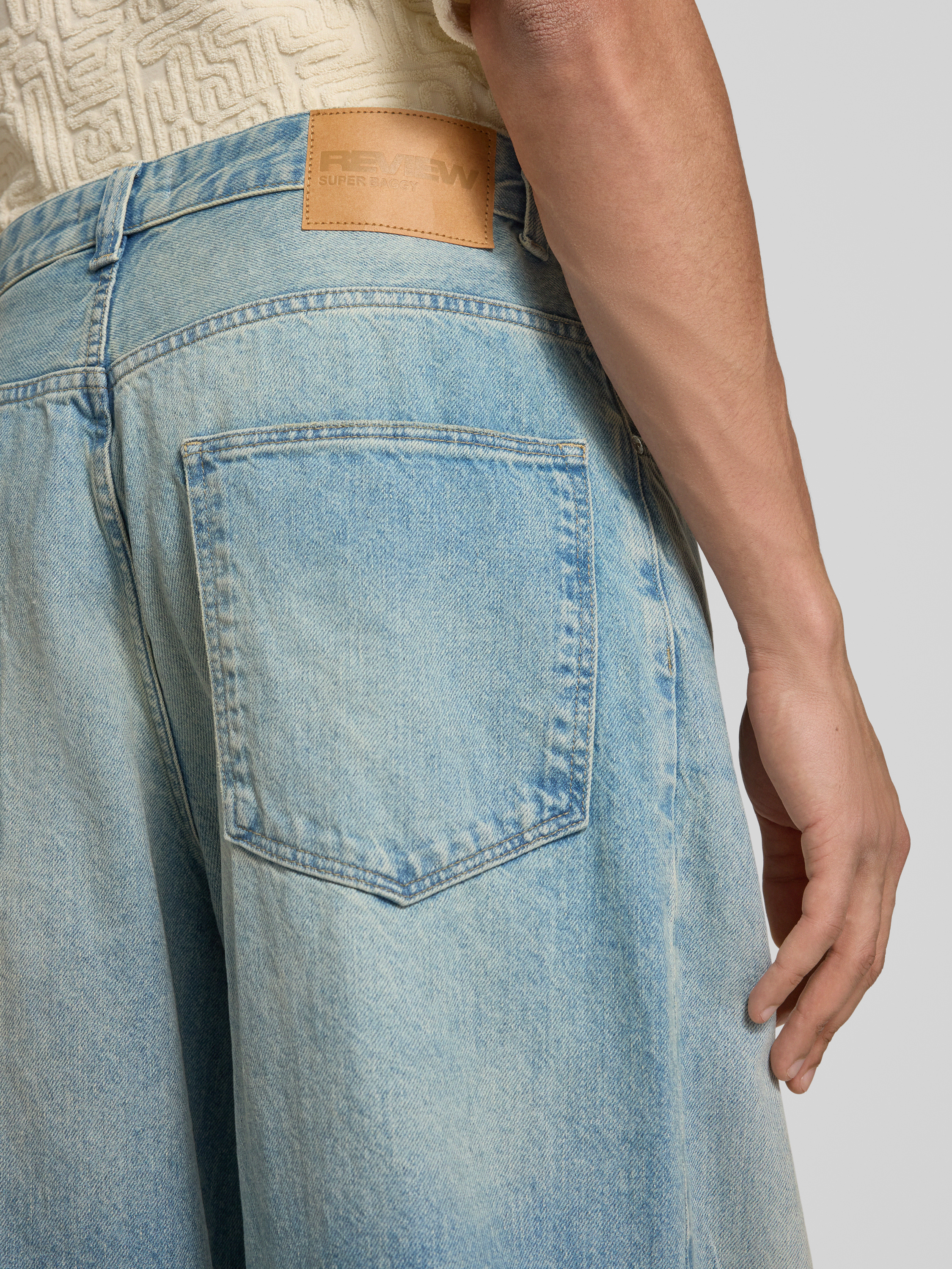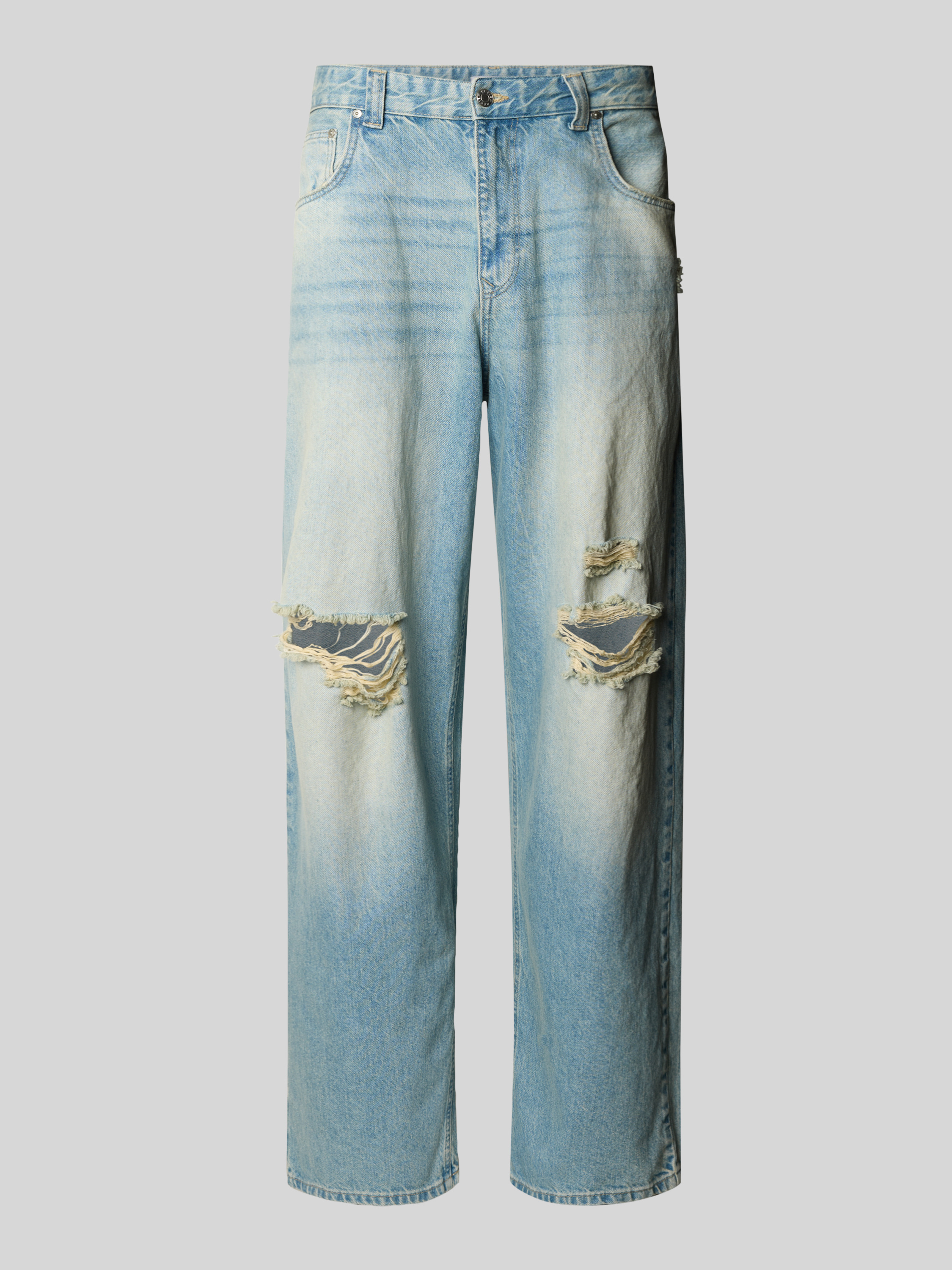 REVIEWSuper Baggy Fit Jeans aus reiner Baumwolle im Destroyed-Look in hellblau