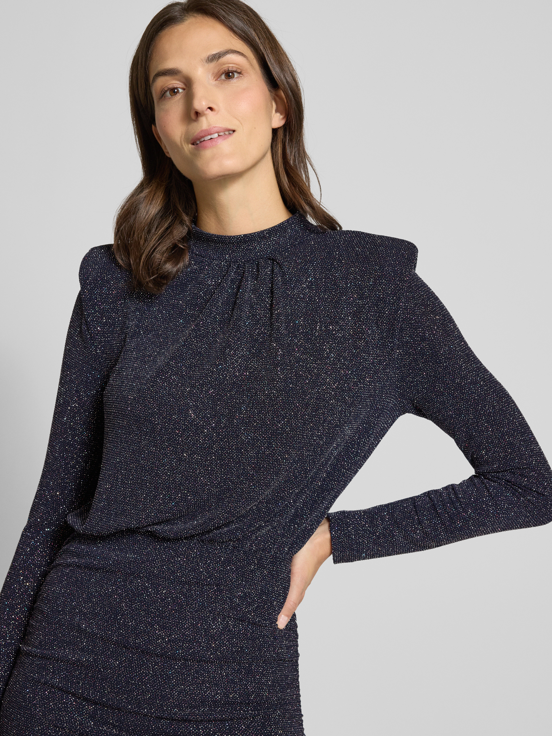Das knielange Kleid von Rich & Royal fällt durch einen figurbetonten Schnitt auf, während schimmernde Akzente und markante Schulterpolster einen modernen Eindruck schaffen. Die Länge bis zum Knie sorgt für einen ausgewogenen Look, der sich vielseitig kombinieren lässt. Dank der sorgfältig verarbeiteten Details fühlt man sich in verschiedenen Situationen passend gekleidet.
