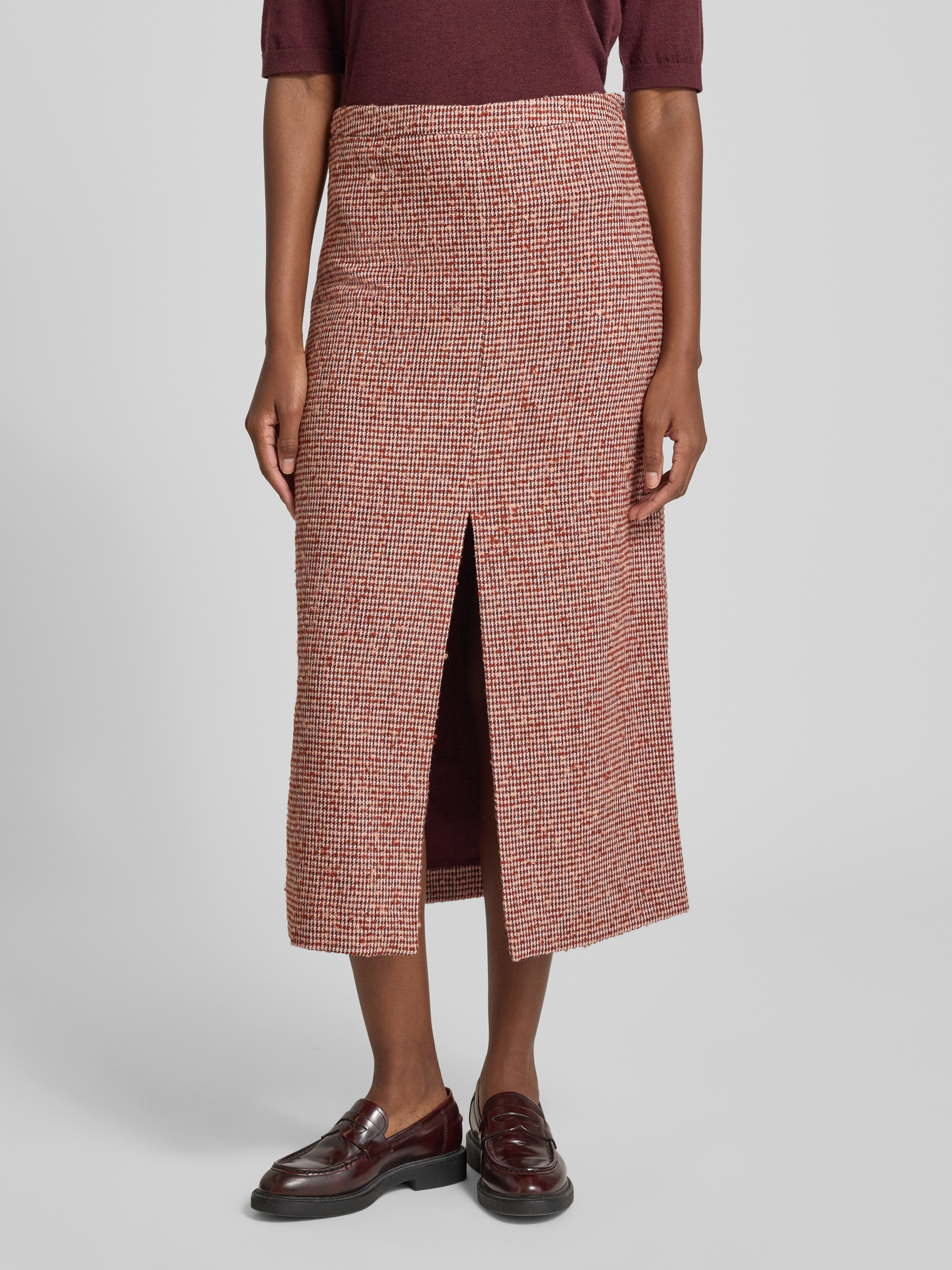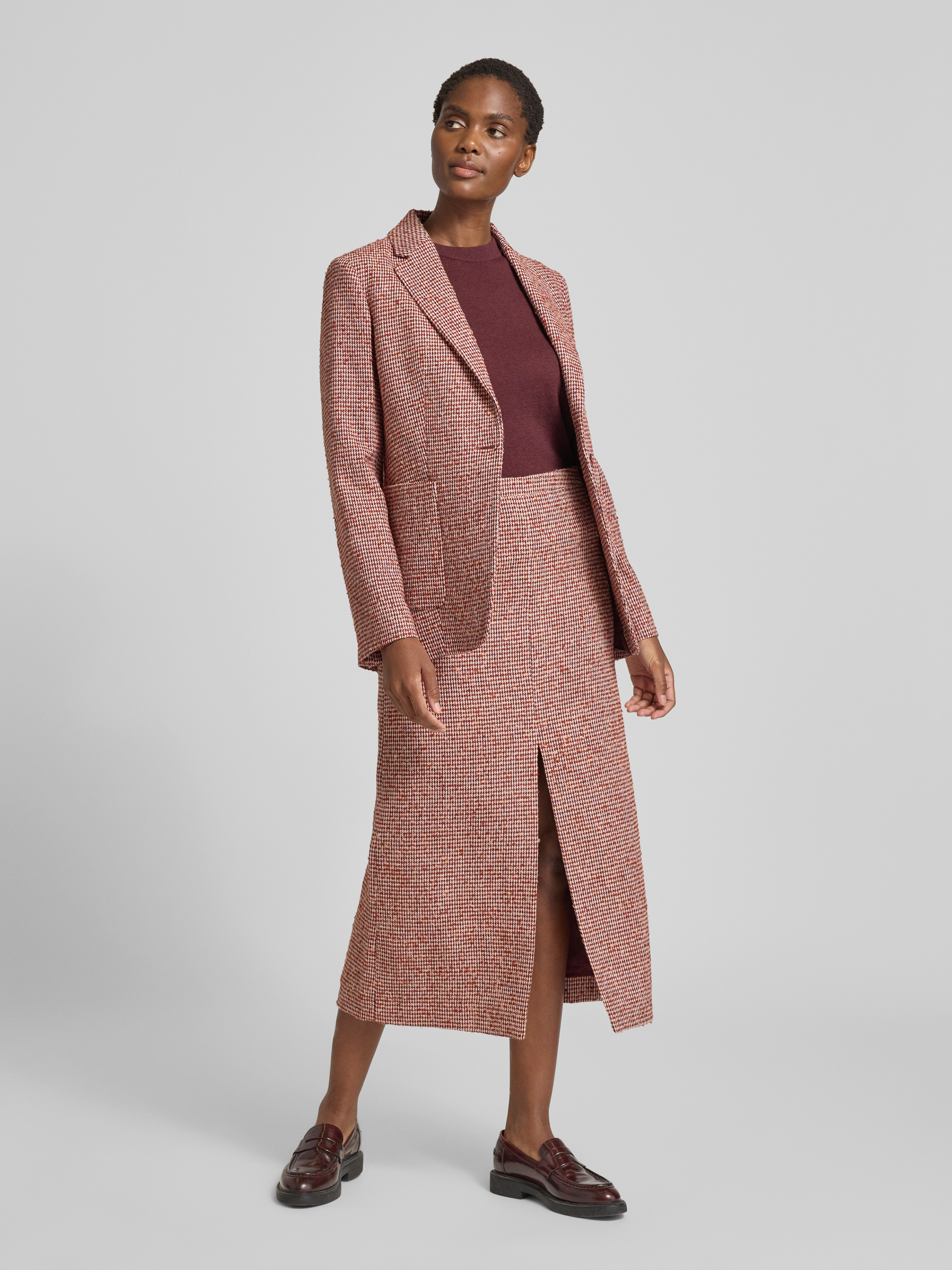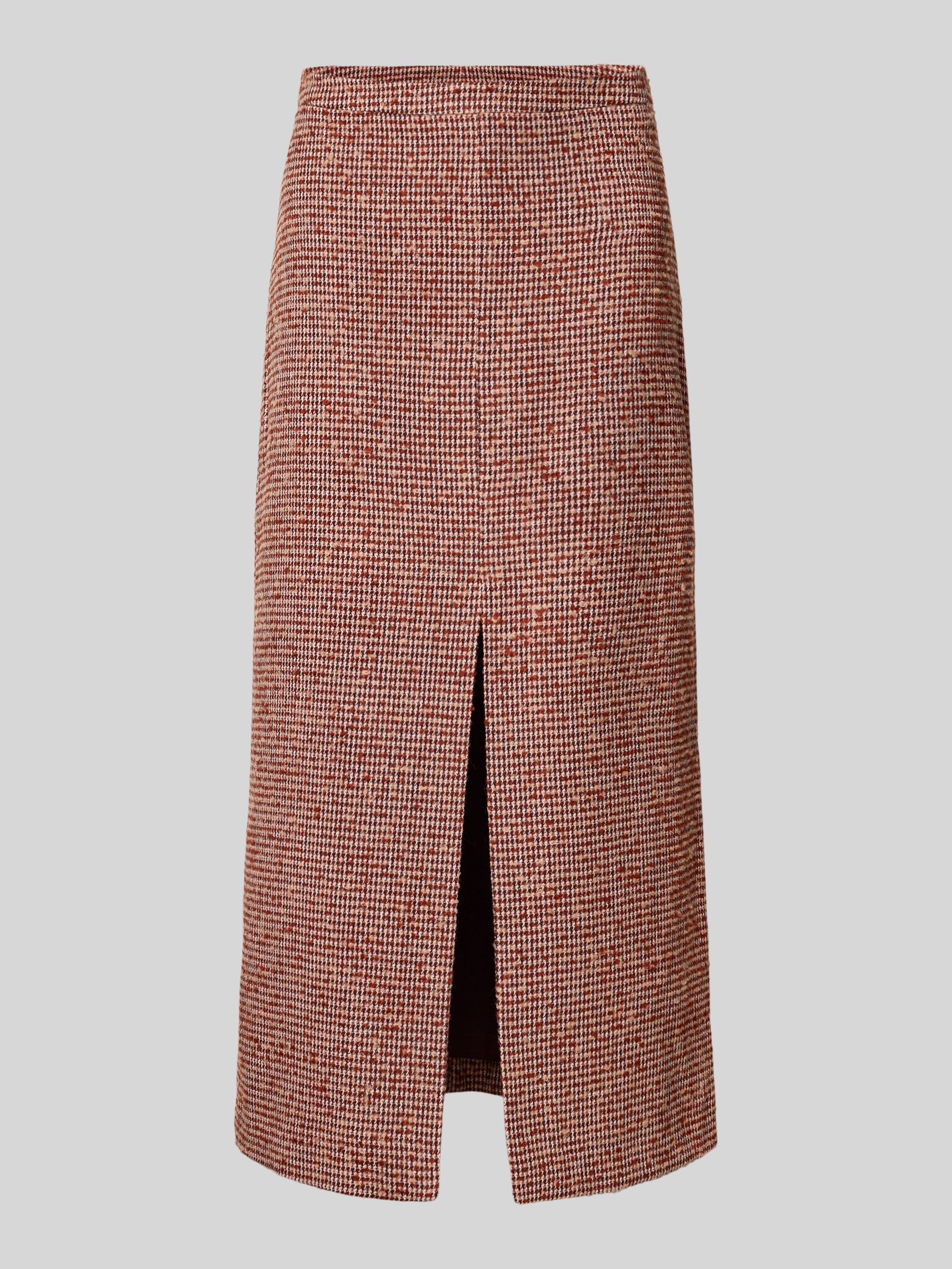 Der Midirock in Bouclé-Optik von Rich & Royal legt mit seinem Baumwoll-Mix samt Stretch-Anteil angenehm am Körper an und sorgt so für ein bequemes Tragegefühl. Durch den ausgestellten Schnitt bleibt viel Bewegungsfreiheit erhalten, während die strukturierte Oberfläche einen abwechslungsreichen Akzent setzt. So eignet sich das Modell vielseitig für unterschiedliche Anlässe.