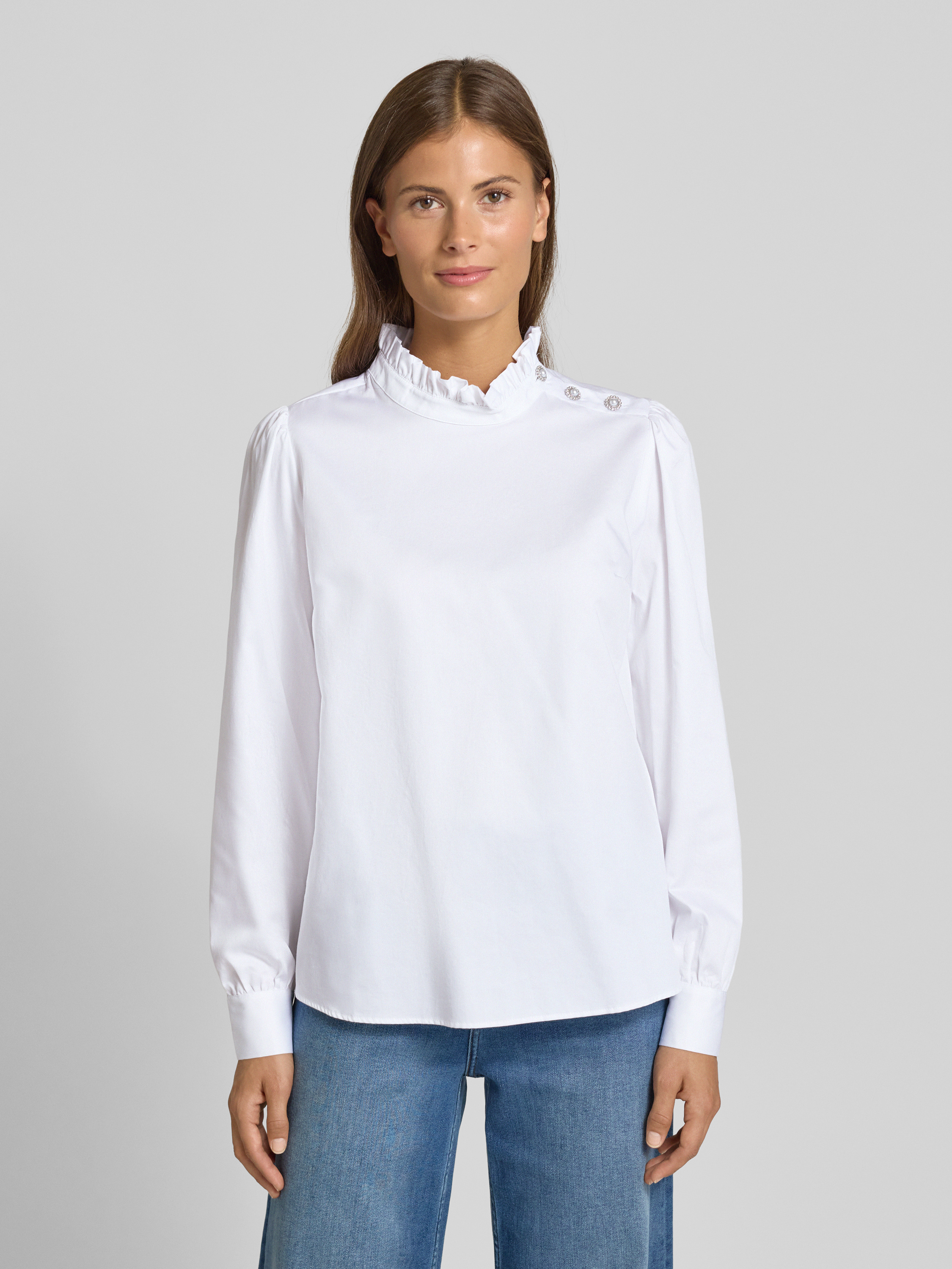 Die Regular Fit Bluse von Rich & Royal vereint schlichte Eleganz mit einem modernen Schnitt. Aus reiner Baumwolle gefertigt, sorgt sie für ein angenehmes Tragegefühl, das sich ideal für den Alltag eignet. Der Stehkragen verleiht der Bluse eine zeitgemäße Note, während die dezente Knopfleiste das Gesamtbild abrundet.
