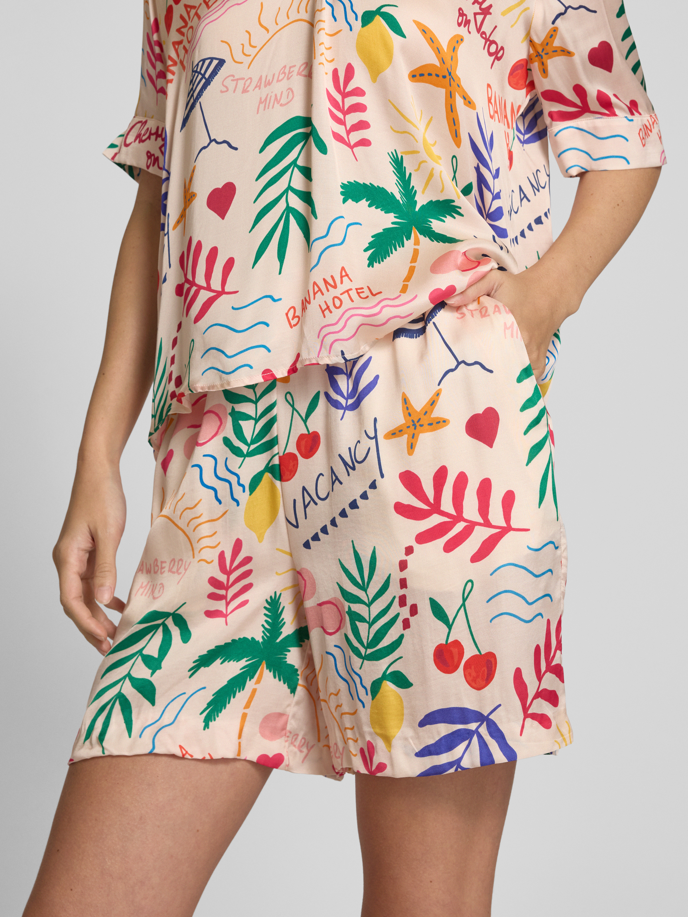Die Regular Fit Shorts von Rich & Royal aus reiner Viskose bieten mit ihrem elastischen Bund und den gelegten Falten eine komfortable Passform. Der leichte Stoff fällt angenehm und sorgt für Bewegungsfreiheit. Sie eignen sich ideal für warme Tage und entspannte Anlässe.