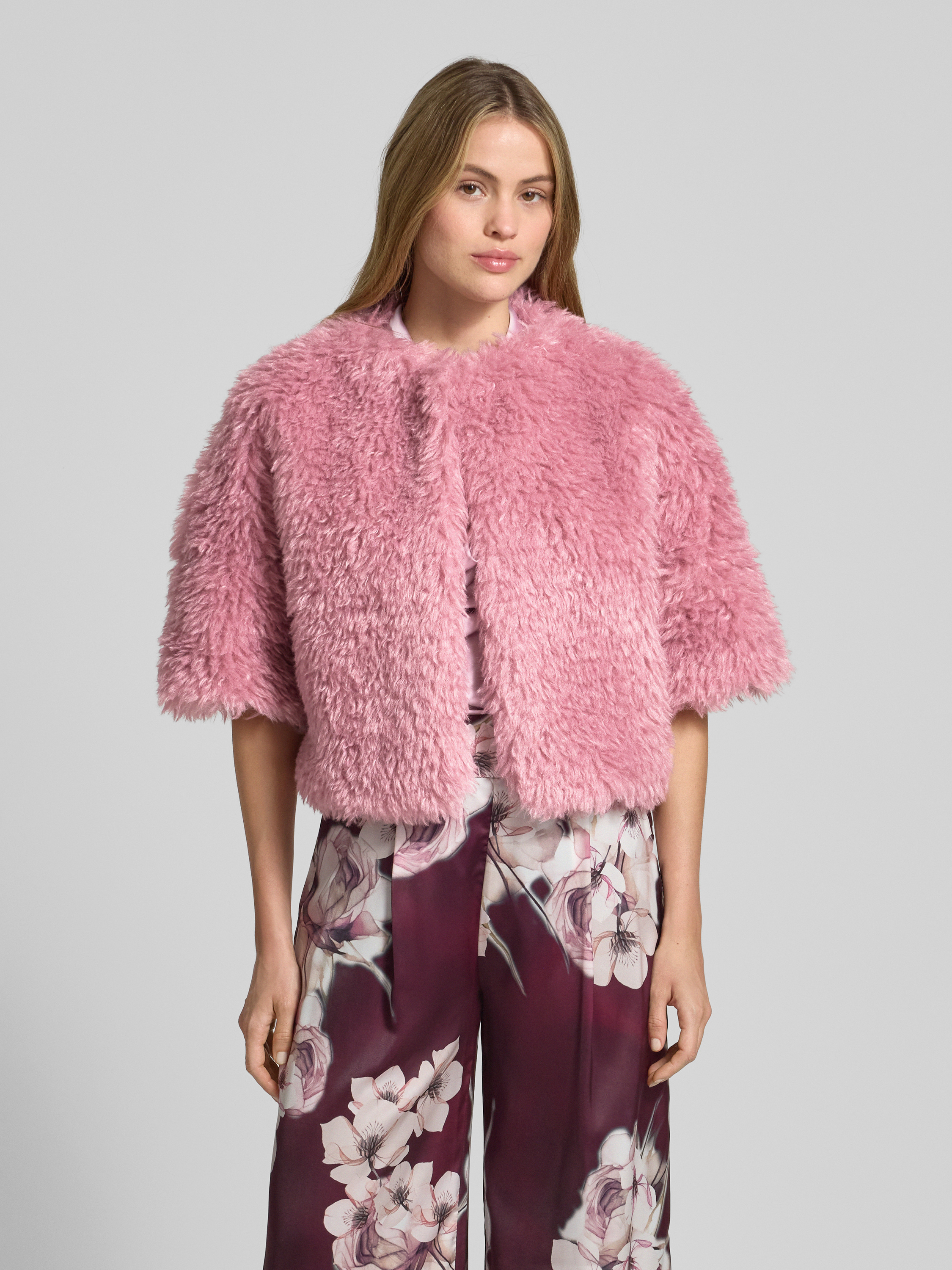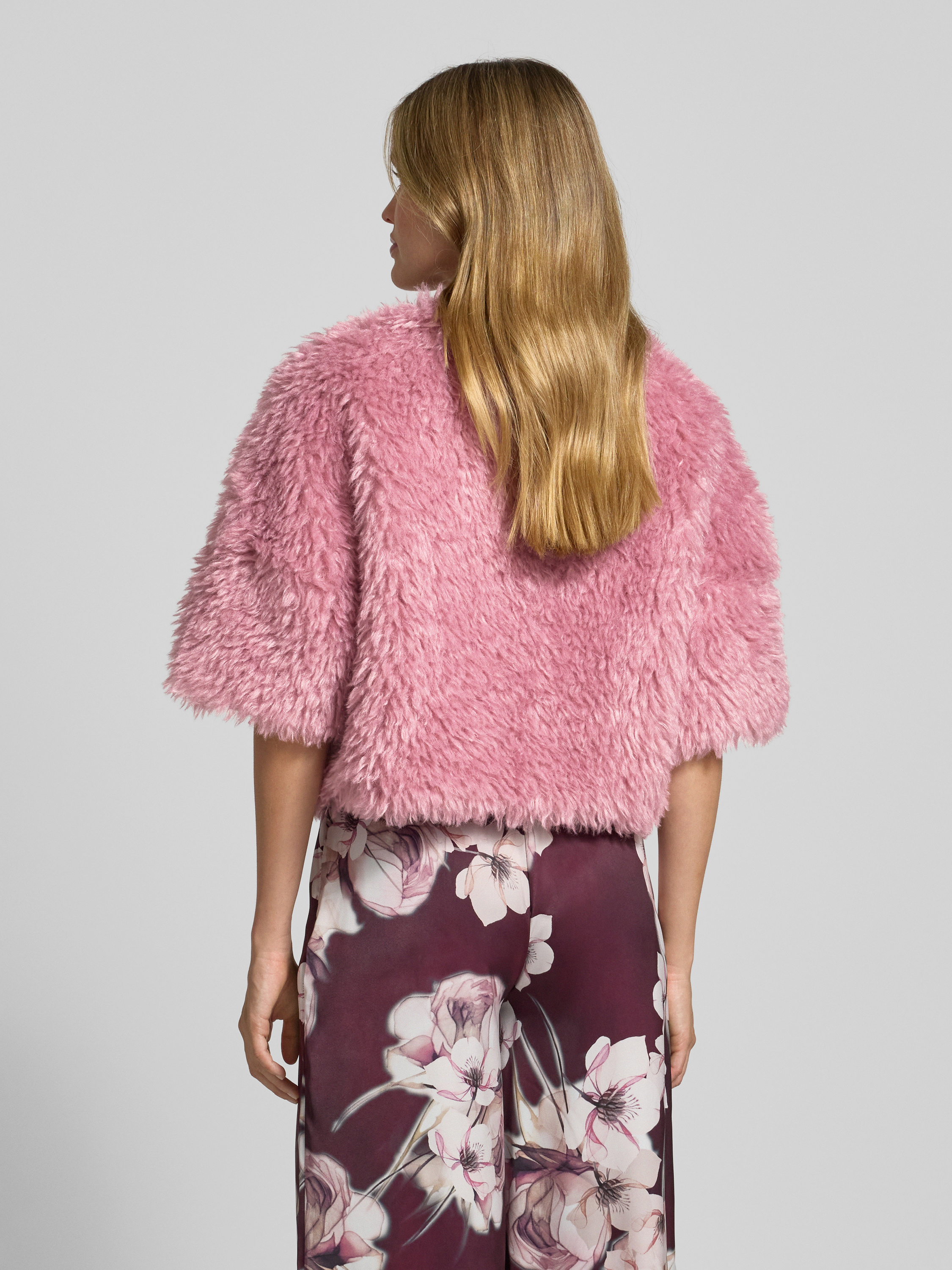 Der Damen Bolero von Rinascimento zeichnet sich durch sein weiches Teddyfell und einen geraden Schnitt aus, der für angenehme Bewegungsfreiheit sorgt. Überschnittene Schultern und der 1/2-Arm verleihen dem Modell eine moderne, unkomplizierte Ausstrahlung. So lässt sich der Bolero-1/2-Arm vielseitig im Alltag kombinieren.