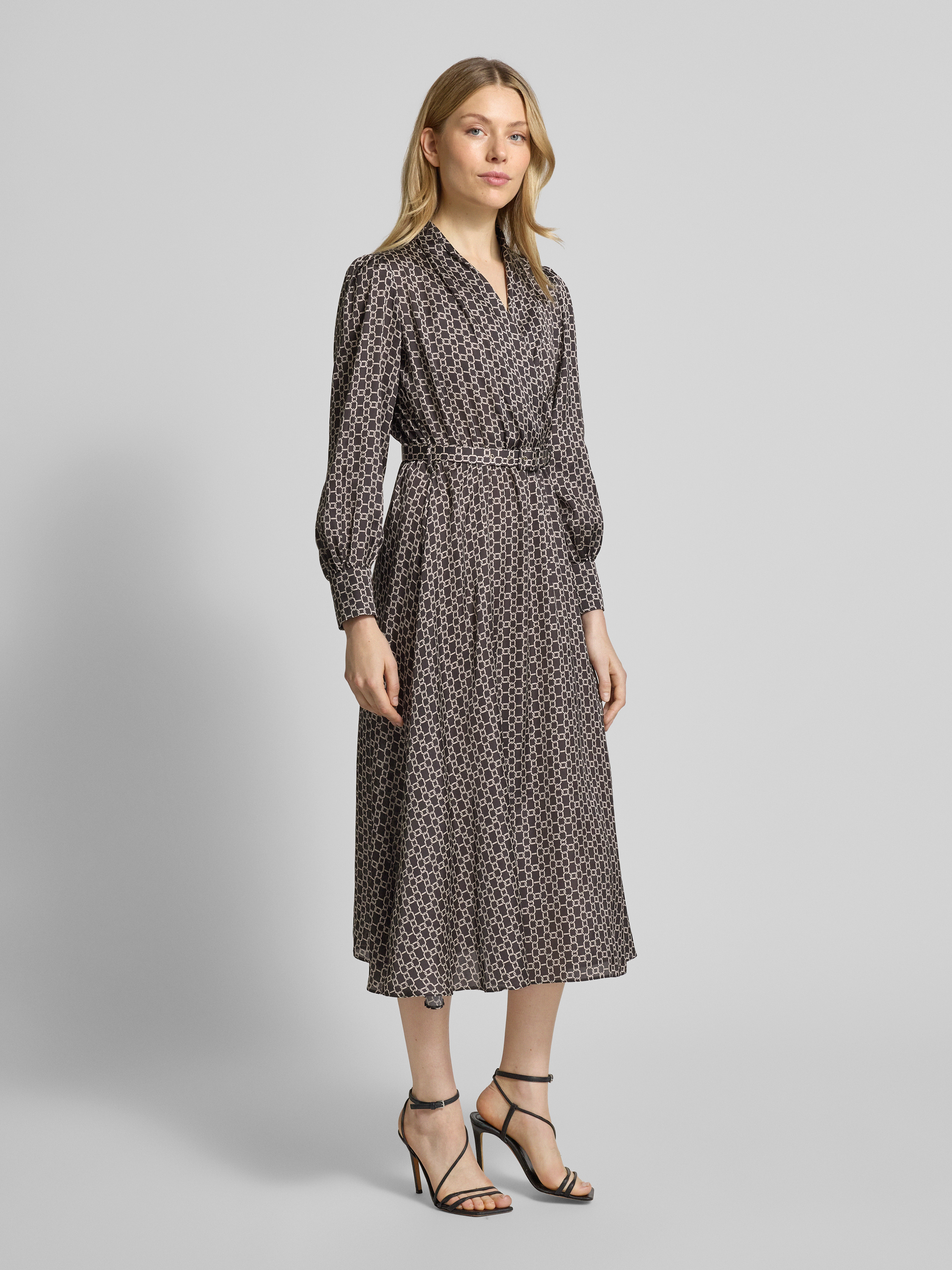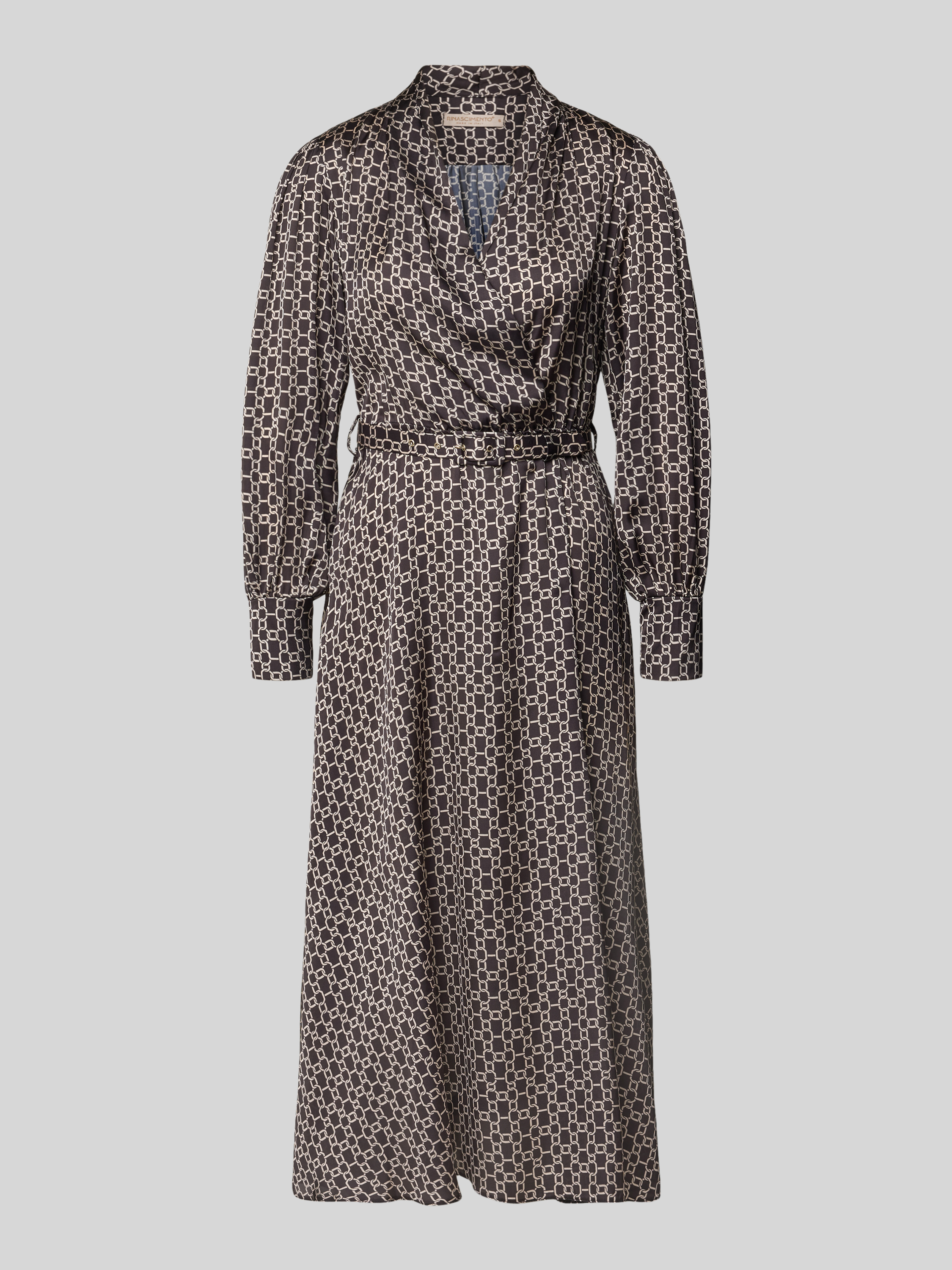 Das Hemdblusenkleid von Rinascimento aus fließendem Satin schmiegt sich angenehm an die Silhouette und sorgt durch den taillierten Schnitt für eine schmeichelhafte Kontur. Der Allover-Look wirkt lebendig, während der V-Ausschnitt und der Gürtel Akzente setzen. So eignet sich das Midikleid vielseitig für unterschiedliche Anlässe.