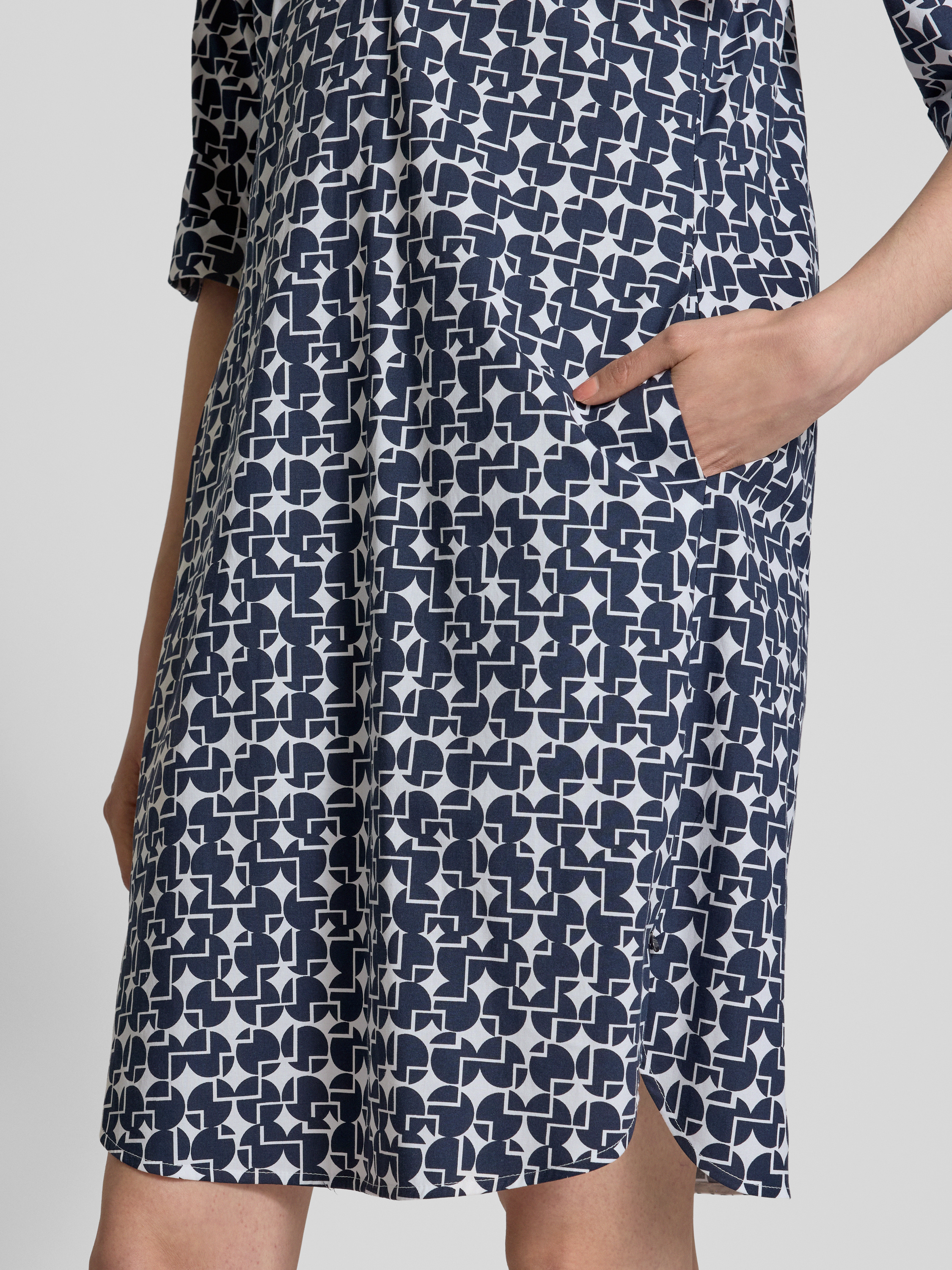 Das knielange Kleid von ROBE LÉGÈRE kombiniert einen geraden Schnitt mit einem eleganten Stehkragen, der durch den V-Ausschnitt harmonisch ergänzt wird. Der Baumwoll-Elasthan-Mix sorgt für ein angenehmes Tragegefühl. Dieses Kleid eignet sich ideal für vielseitige Anlässe, ob im Büro oder in der Freizeit.
