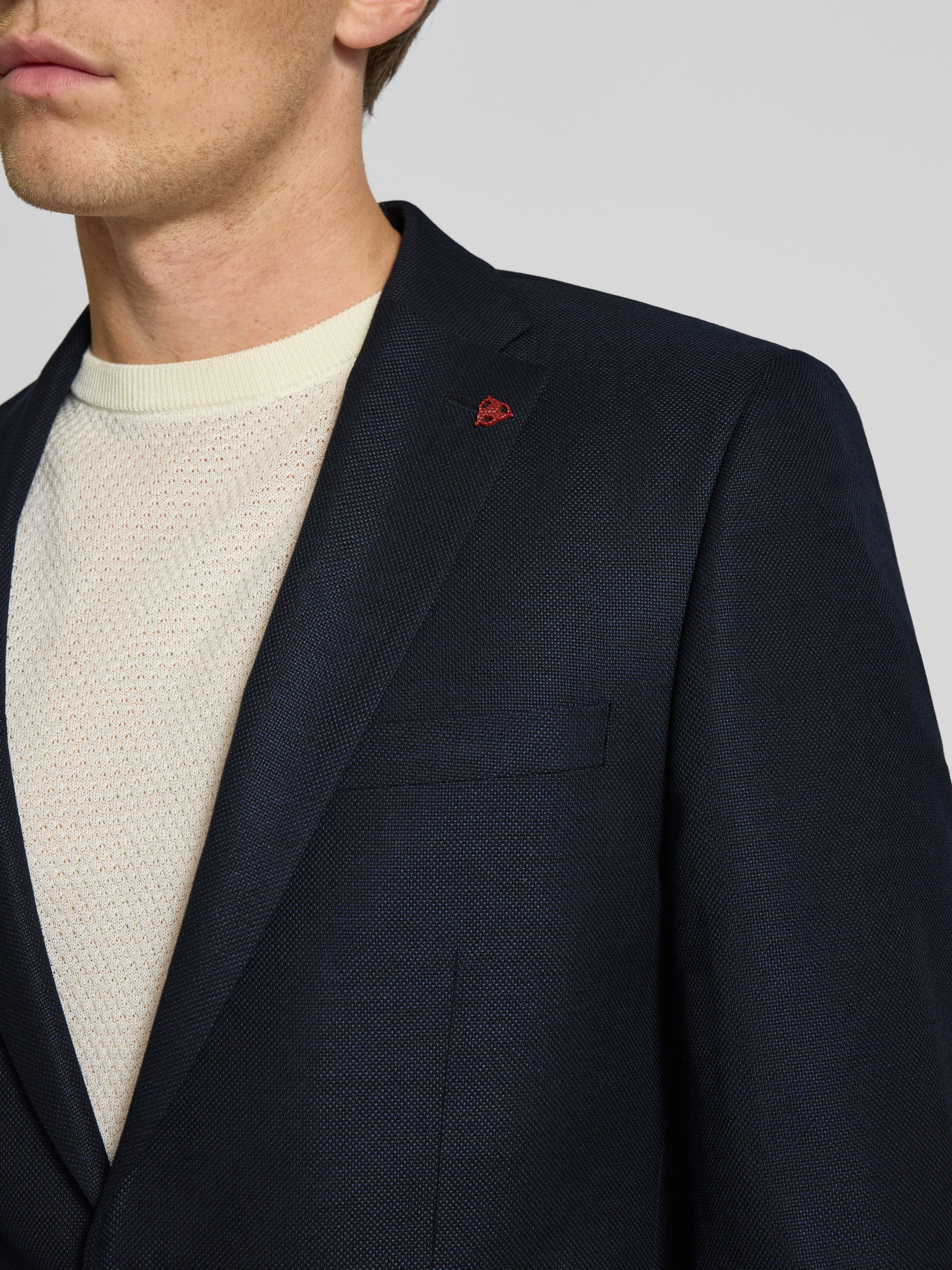 Das Slim Fit Sakko von Roy Robson vereint durch den Schurwoll-Anteil angenehmen Tragekomfort und eine schmeichelhafte Passform. Der klassische Reverskragen und die aufgesetzten Taschen ergänzen den eleganten Stil. Es eignet sich ideal für formelle Anlässe und den modernen Alltag.