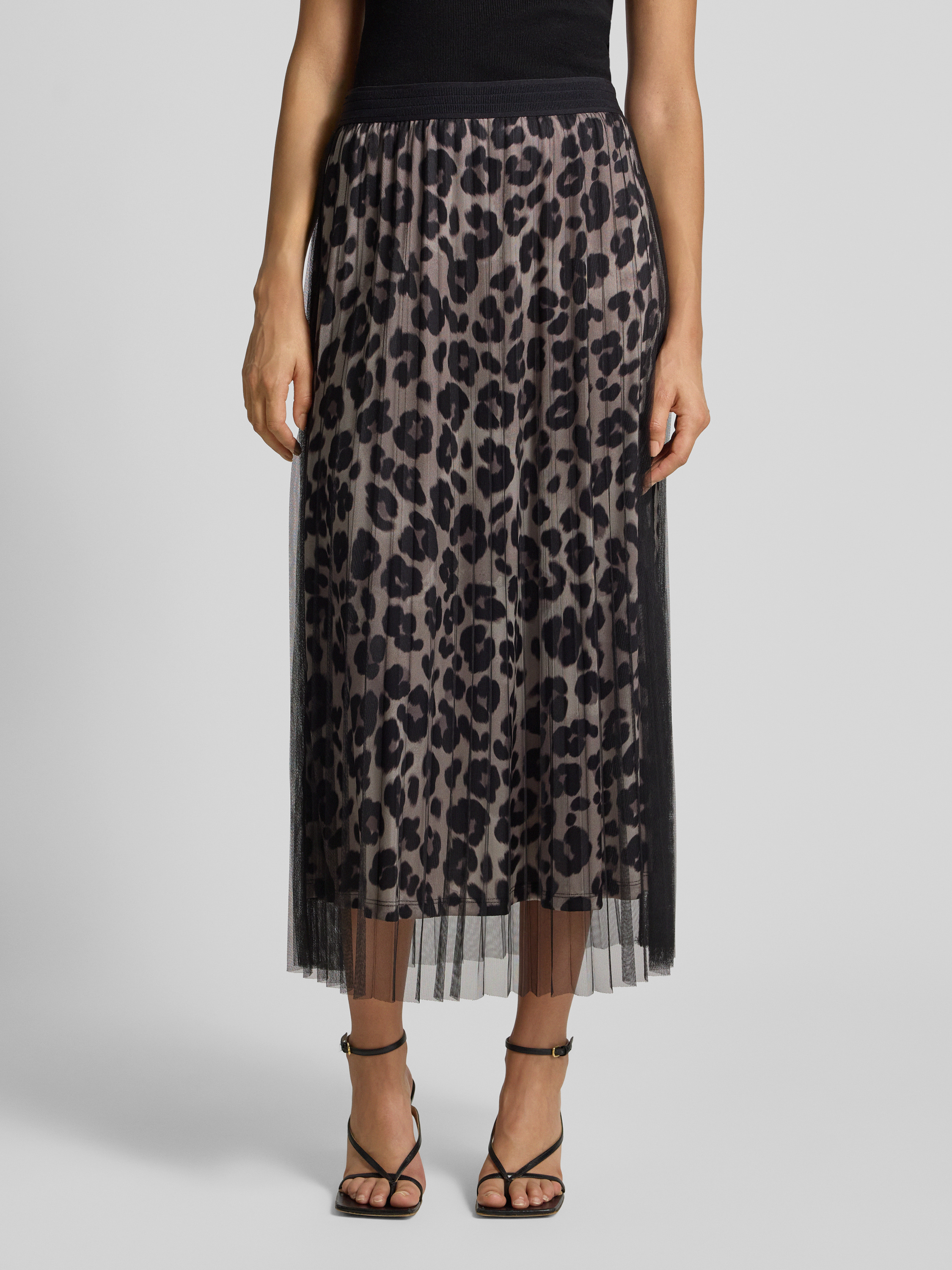 Der ausgestellte Plissee-Rock von s.Oliver BLACK LABEL verbindet ein Allover-Muster mit einem semitransparenten Oberrock, wodurch ein luftiger und lebendiger Eindruck entsteht. Durch den Regular Fit sitzt der Rock angenehm und lässt sich vielseitig kombinieren. Ein Leo-Print auf dem Unterrock sorgt für einen dezenten Akzent.