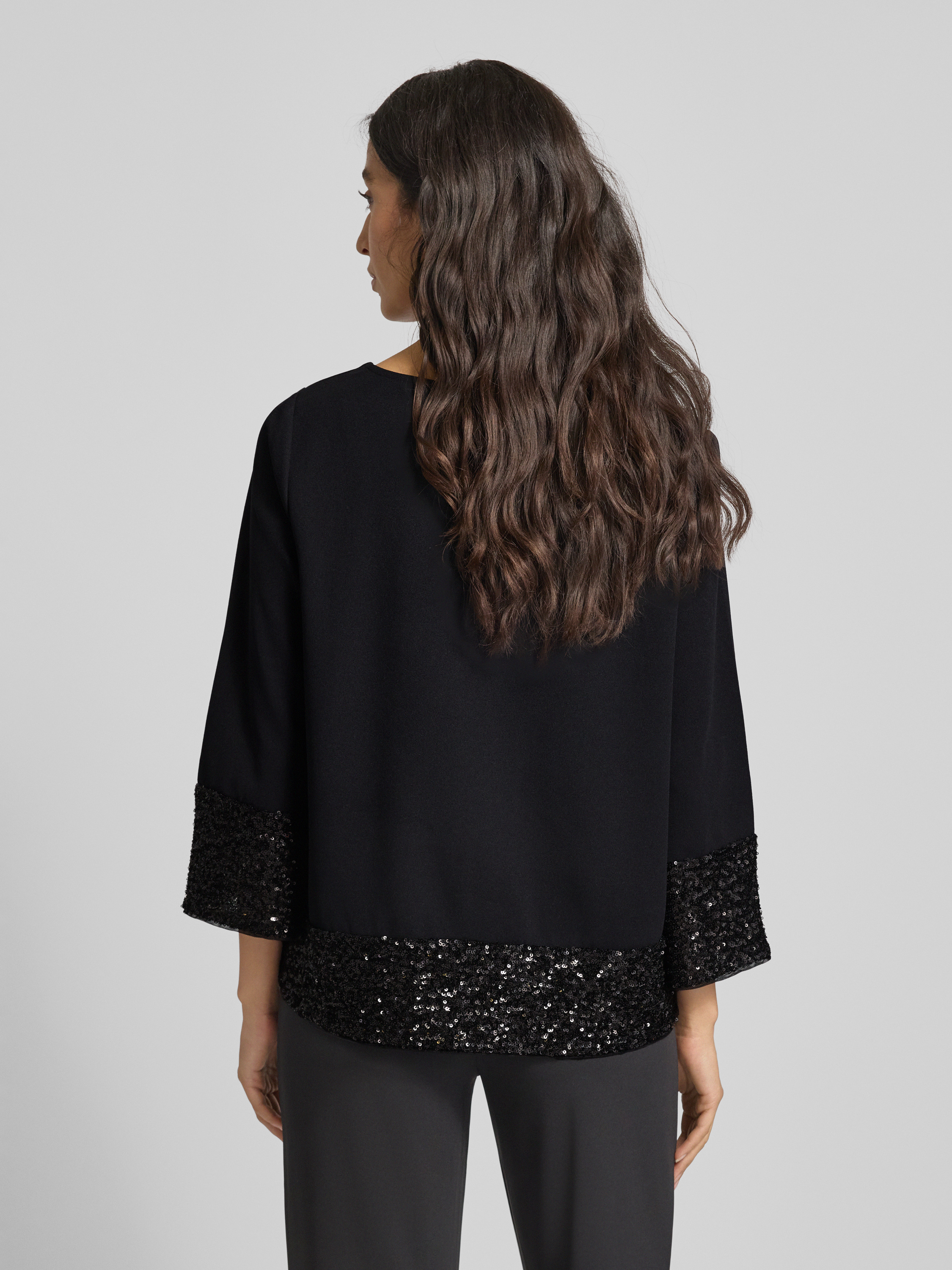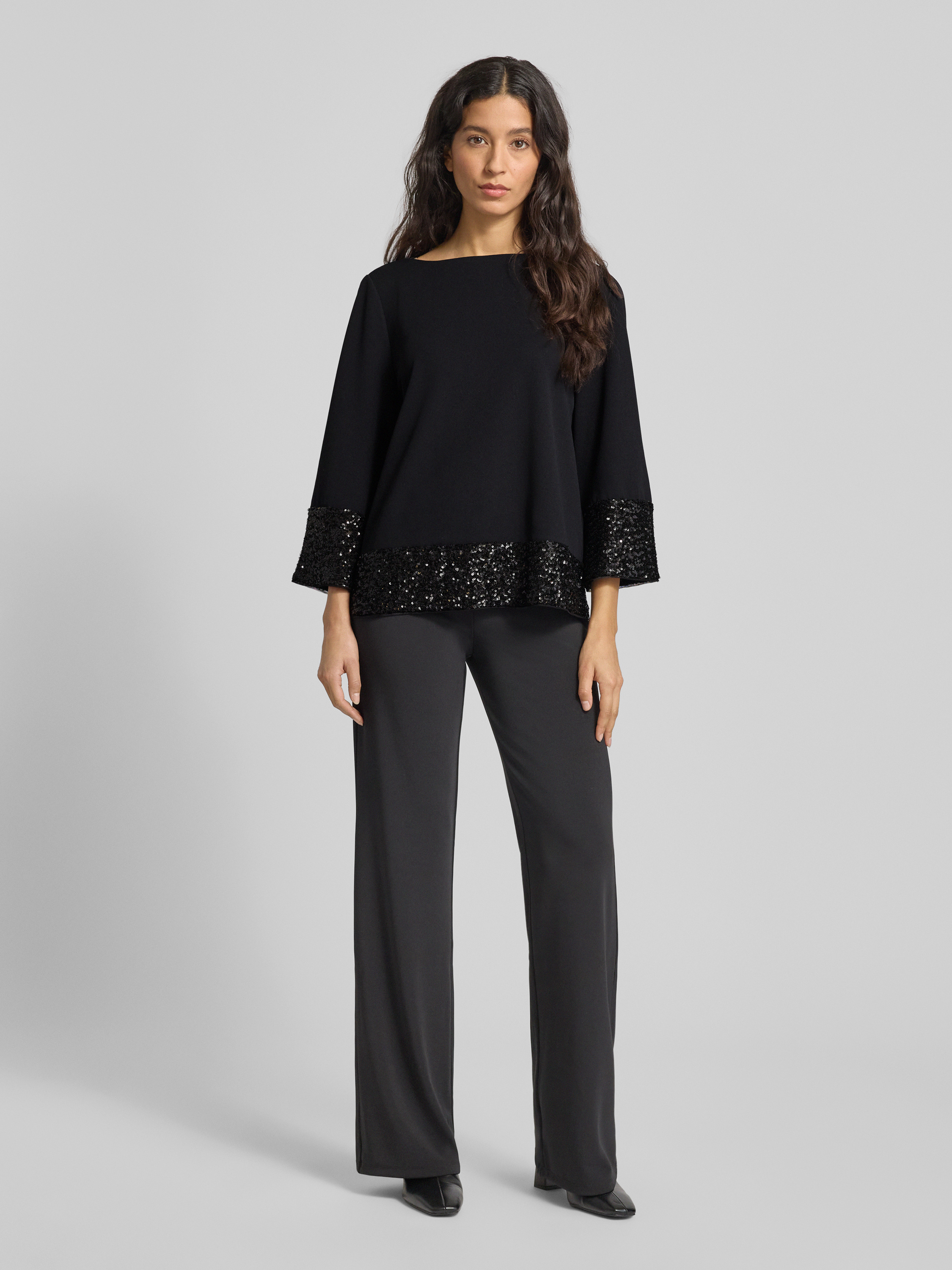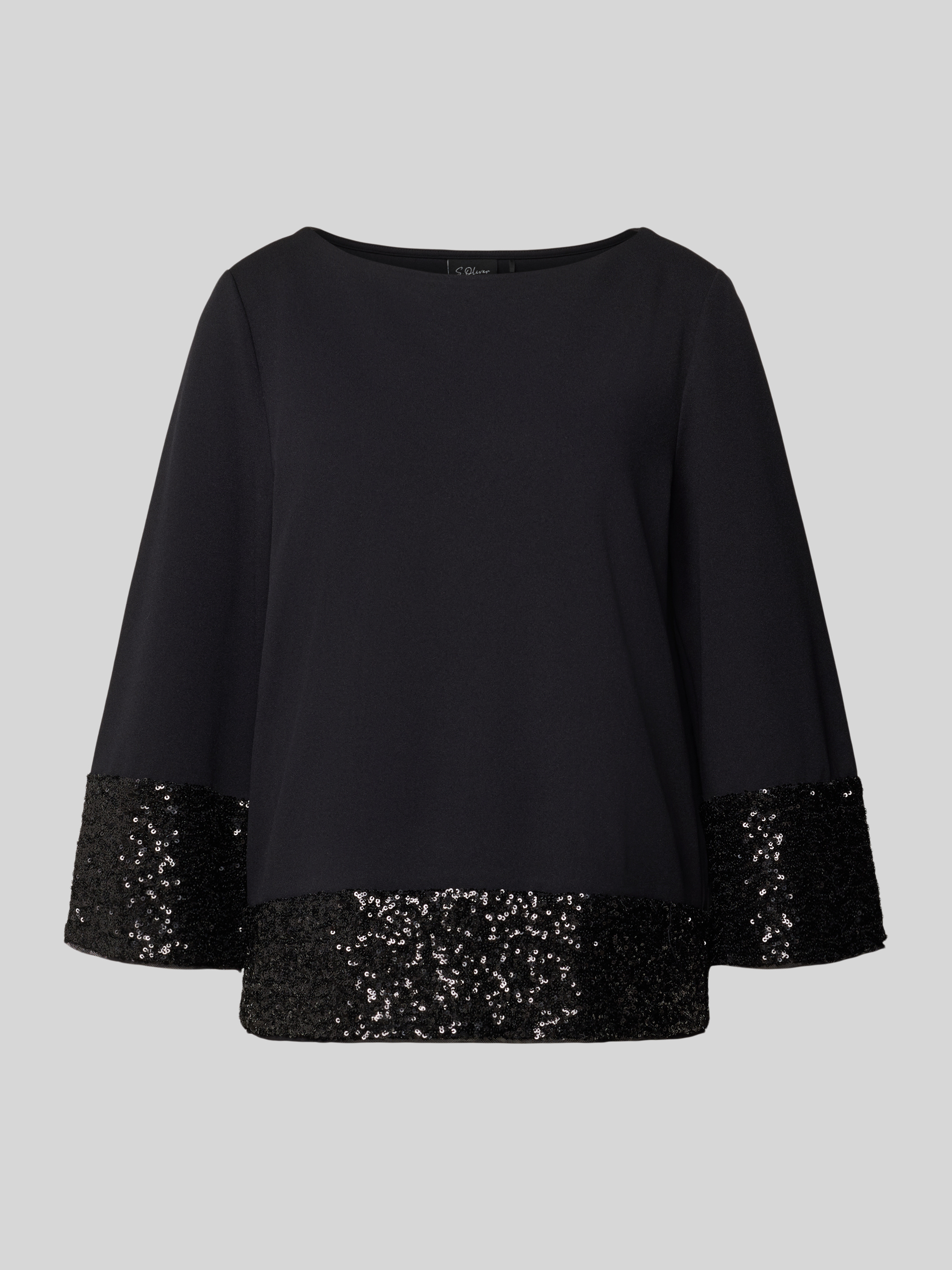 Das Damen 3/4-Shirt Loose Fit von s.Oliver BLACK LABEL fällt durch seinen entspannten Schnitt auf, der Bewegungsfreiheit ermöglicht. Dezente Pailletten verleihen dem unifarbenen Design einen feinen Akzent, während der U-Boot-Ausschnitt dem Oberteil eine moderne Note gibt. So eignet sich das Shirt vielseitig für unterschiedliche Anlässe.