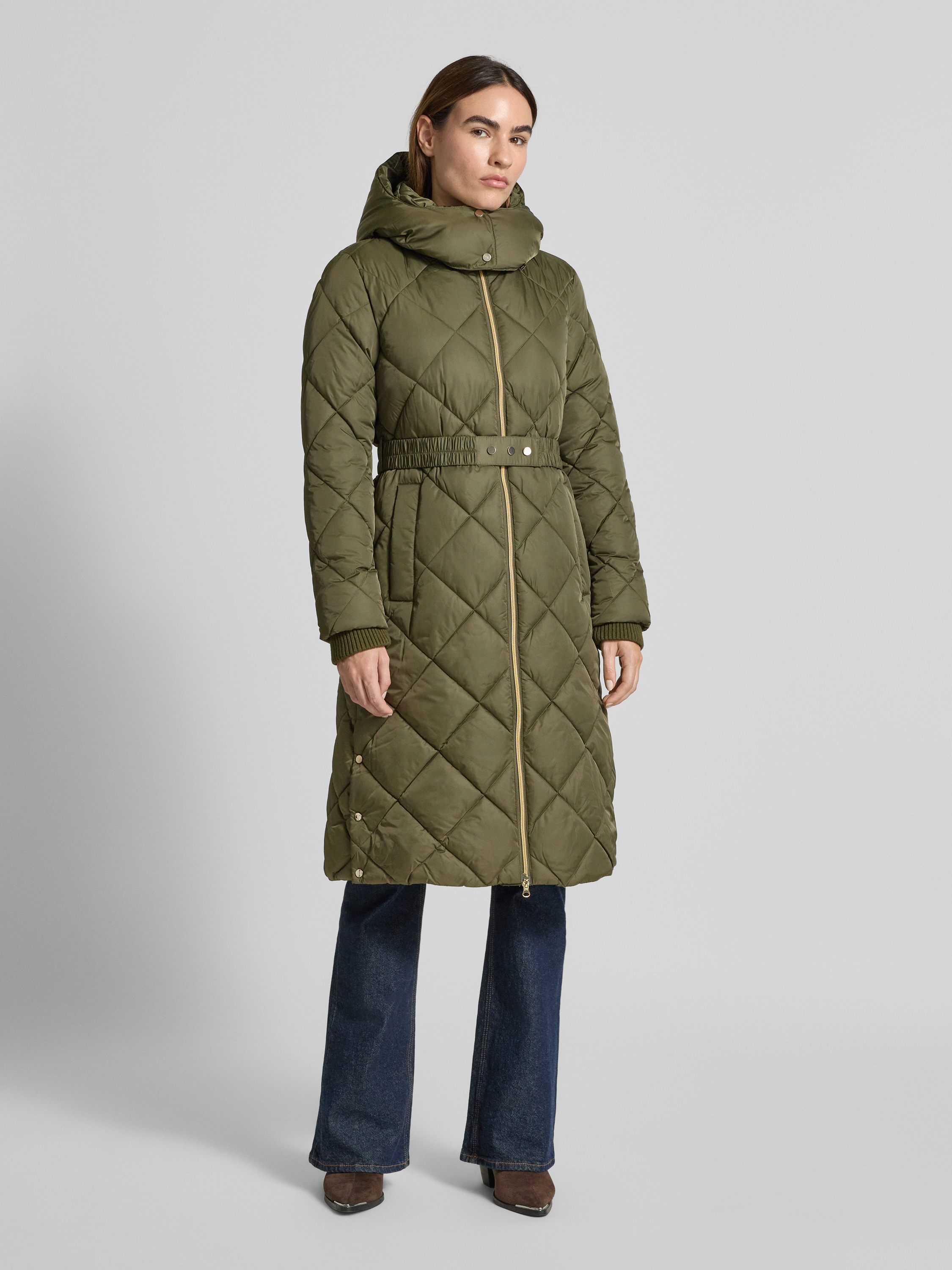 s.Oliver BLACK LABELRegular Fit Steppmantel mit Zweiwege-Reißverschluss in khaki