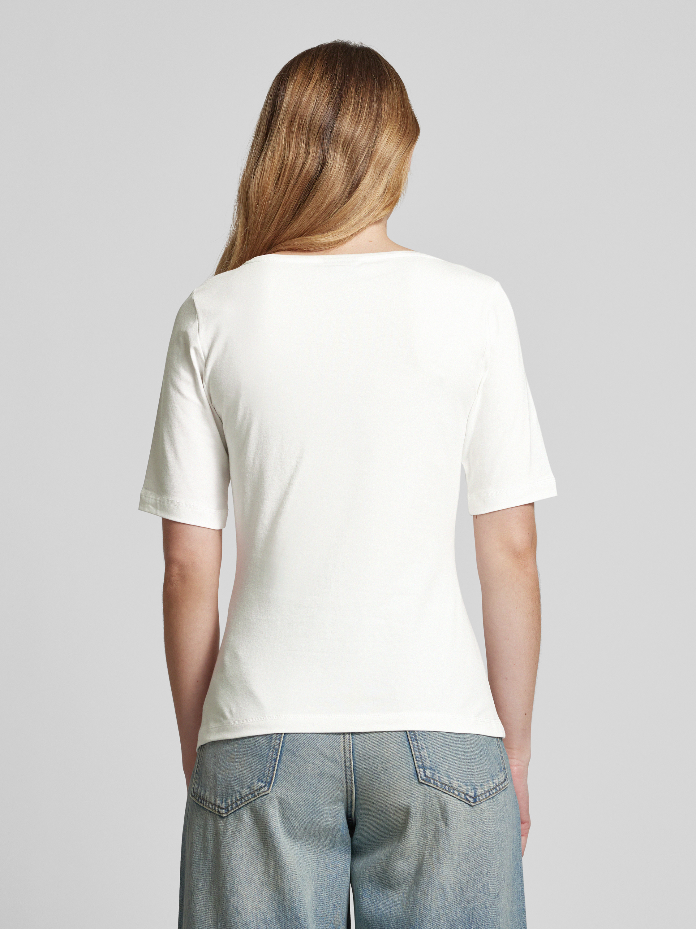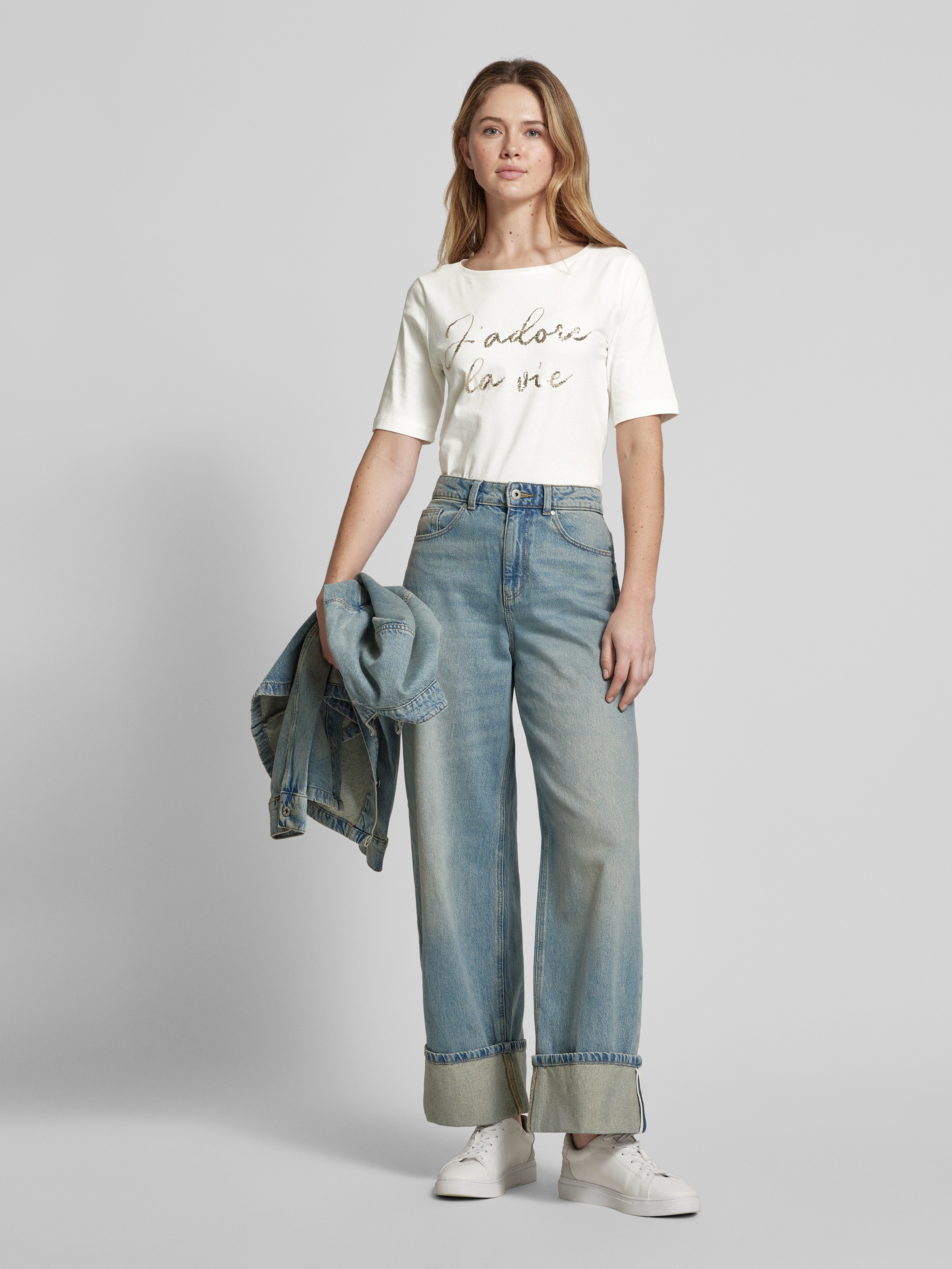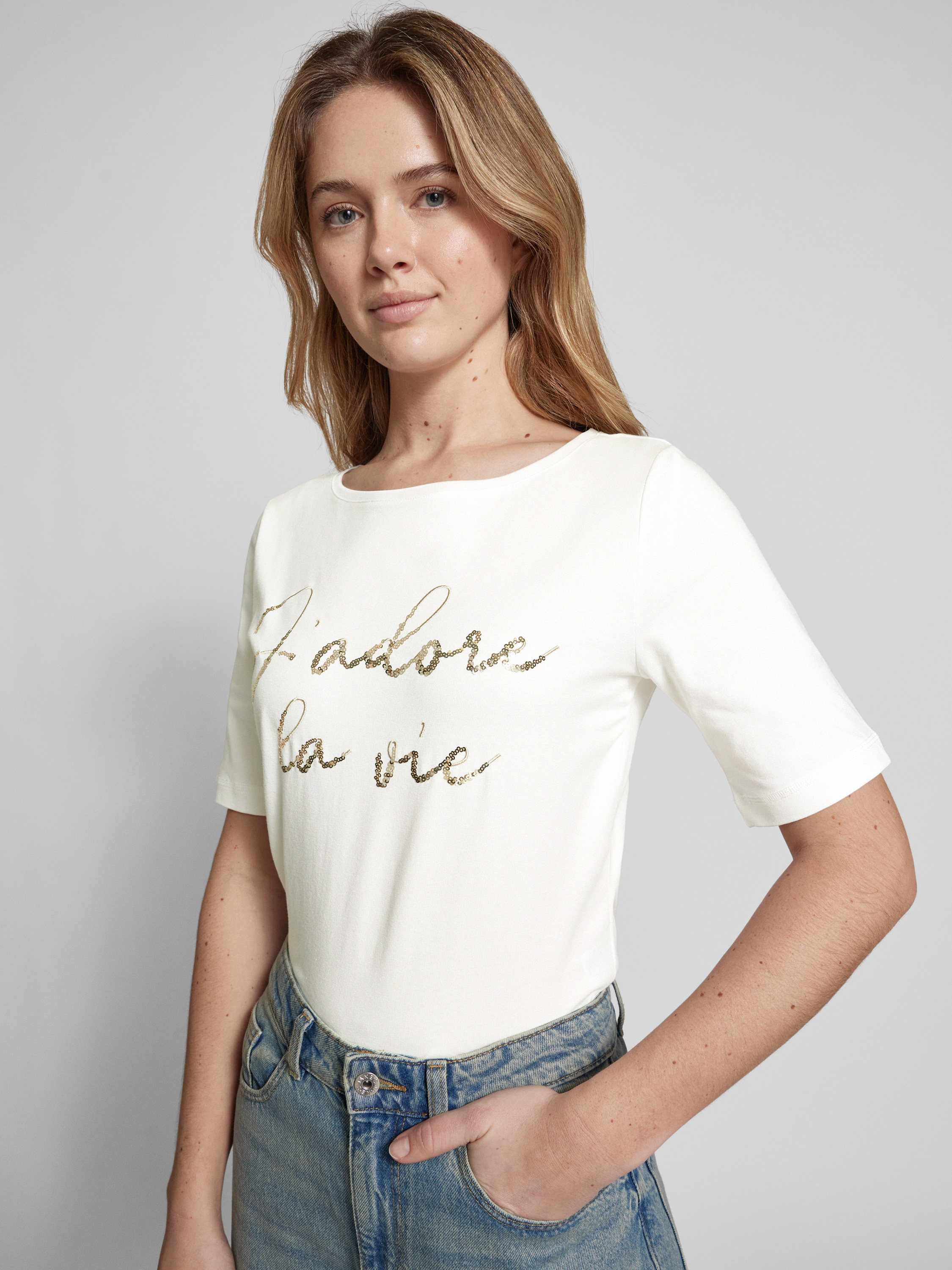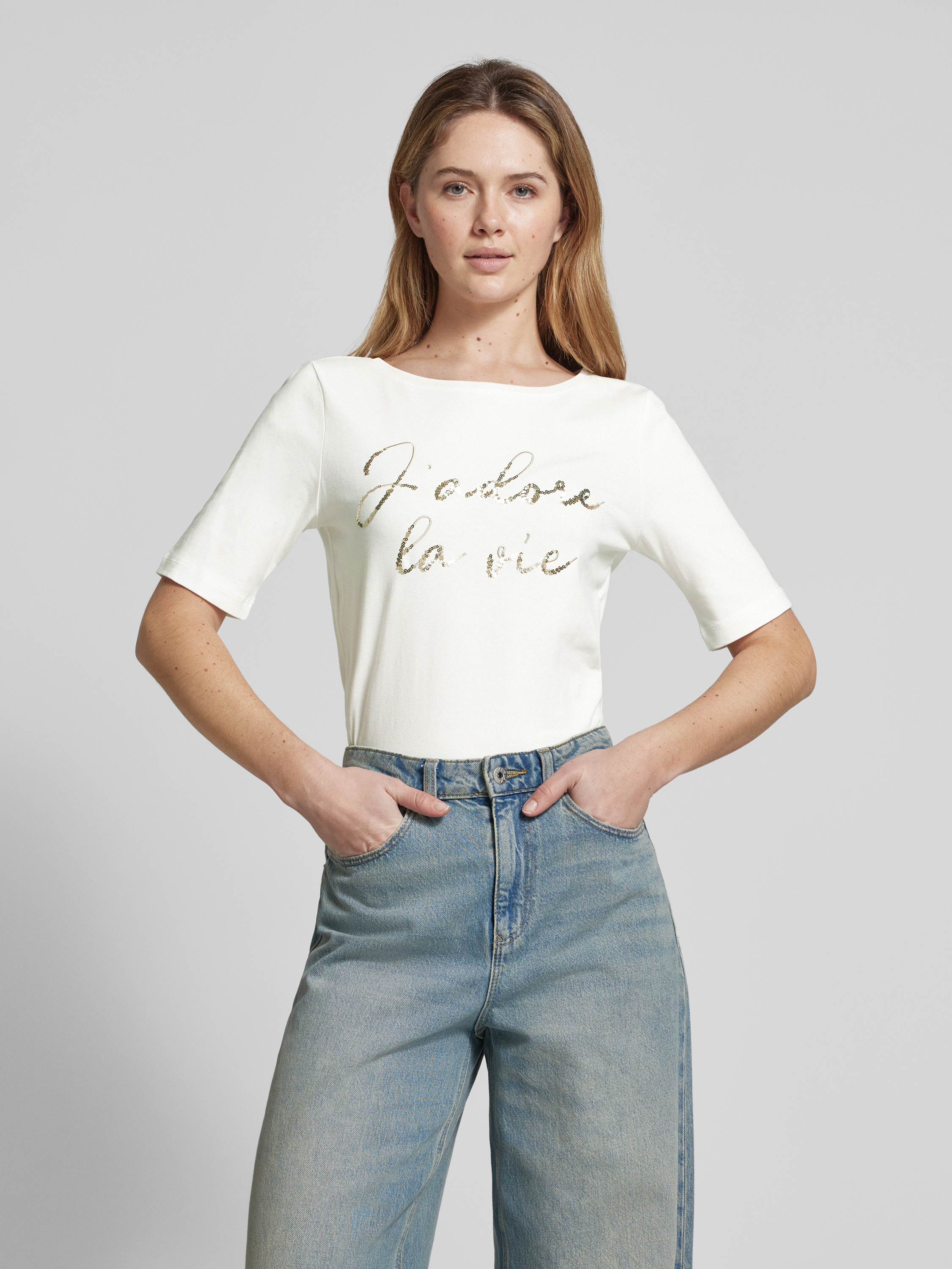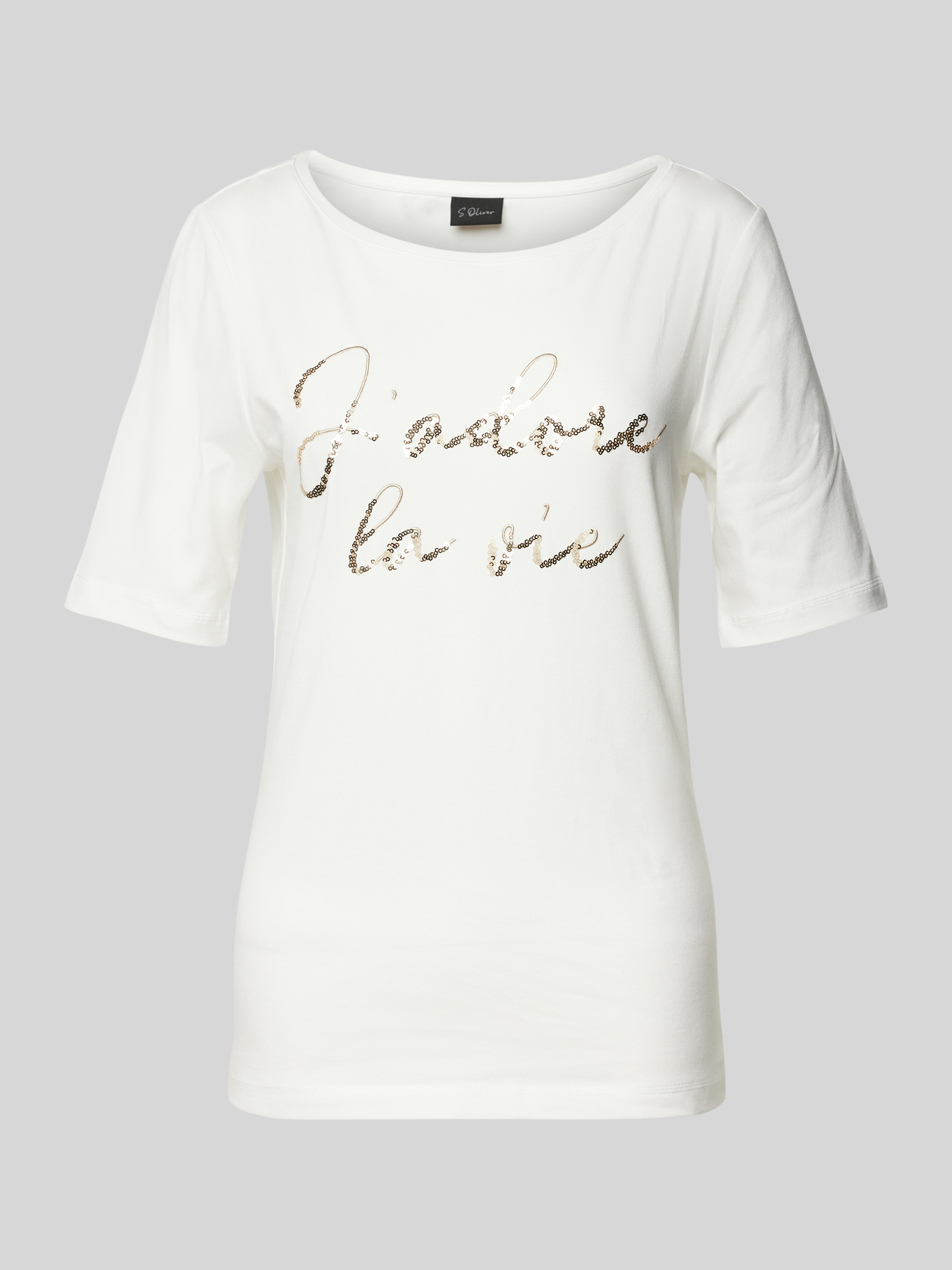 s.Oliver BLACK LABELRegular Fit T-Shirt aus Baumwoll-Mix mit Pailletten-Schriftzug in weiss