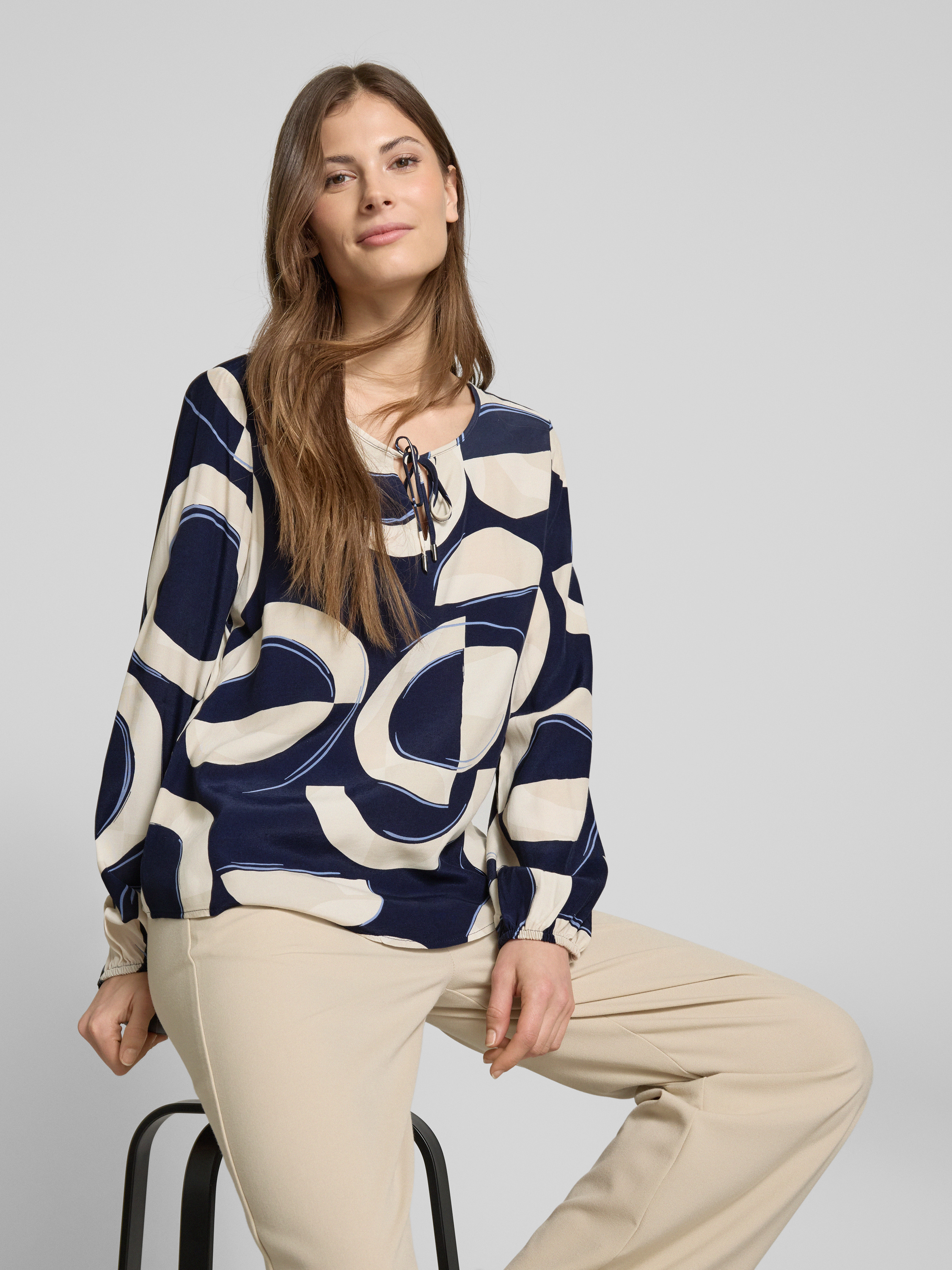 Die Langarmbluse von s.Oliver BLACK LABEL, gefertigt aus reiner Viskose, kombiniert ein entspanntes Tragegefühl mit einem stilvollen Allover-Muster. Der relaxed Fit und der Rundhalsausschnitt mit Schlüsselloch verleihen dem Design eine lässige Eleganz, ideal für den Freizeitlook. Die elastischen Ärmelabschlüsse sorgen zudem für zusätzlichen Komfort.
