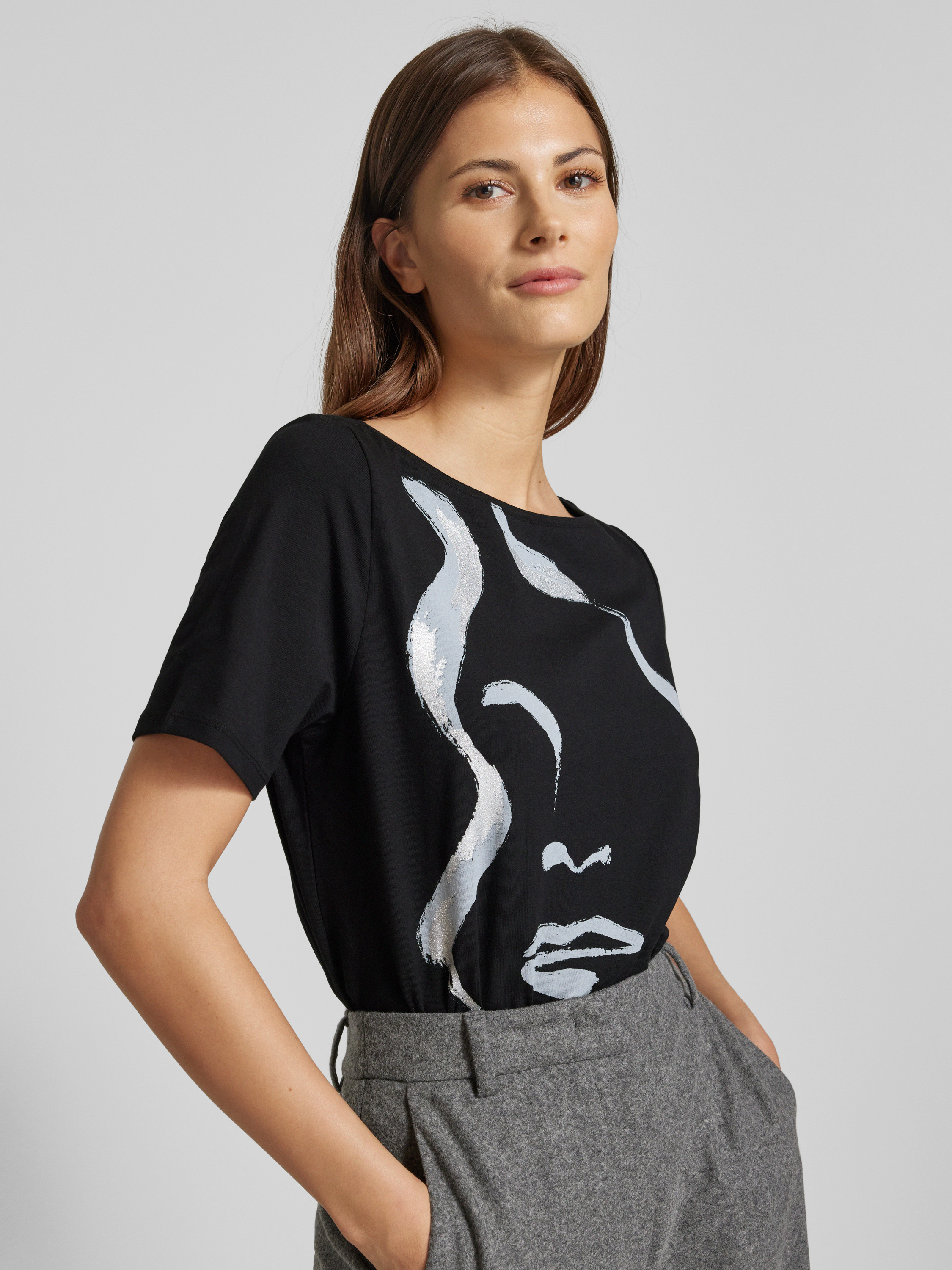 s.Oliver BLACK LABELRelaxed Fit T-Shirt aus Baumwoll-Mix mit Glitzer-Details in black