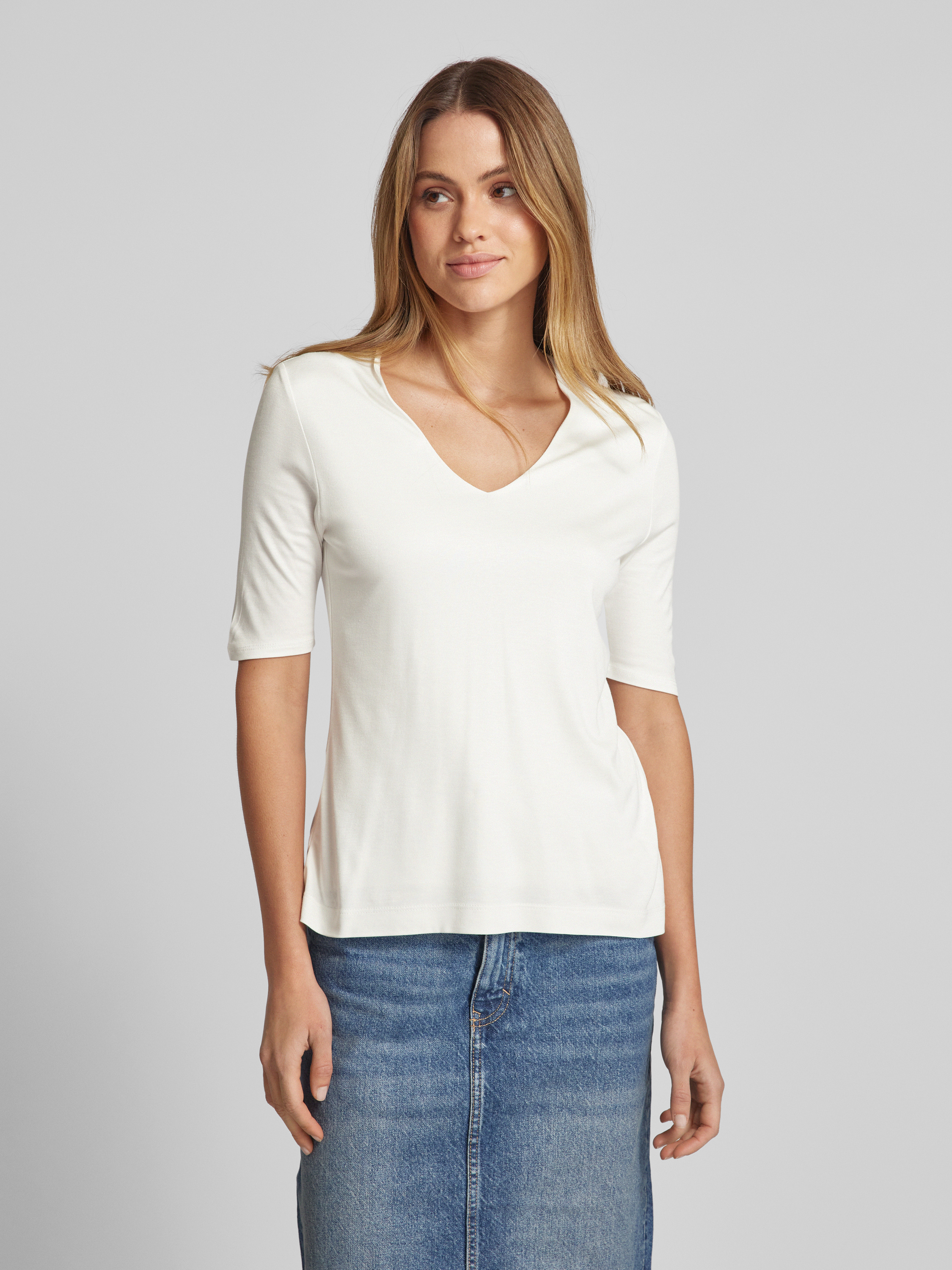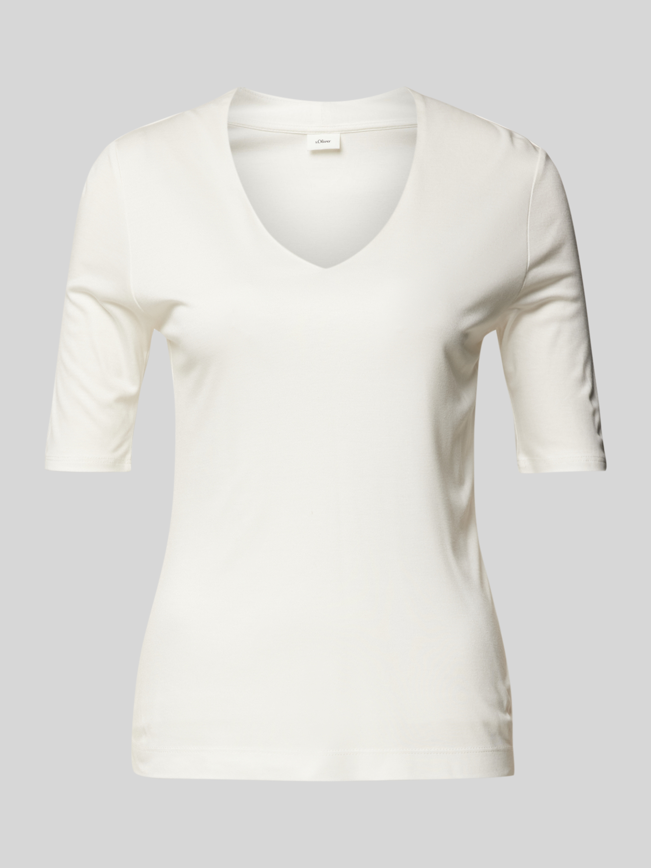 s.Oliver BLACK LABELT-Shirt aus Viskose mit V-Ausschnitt in weiss