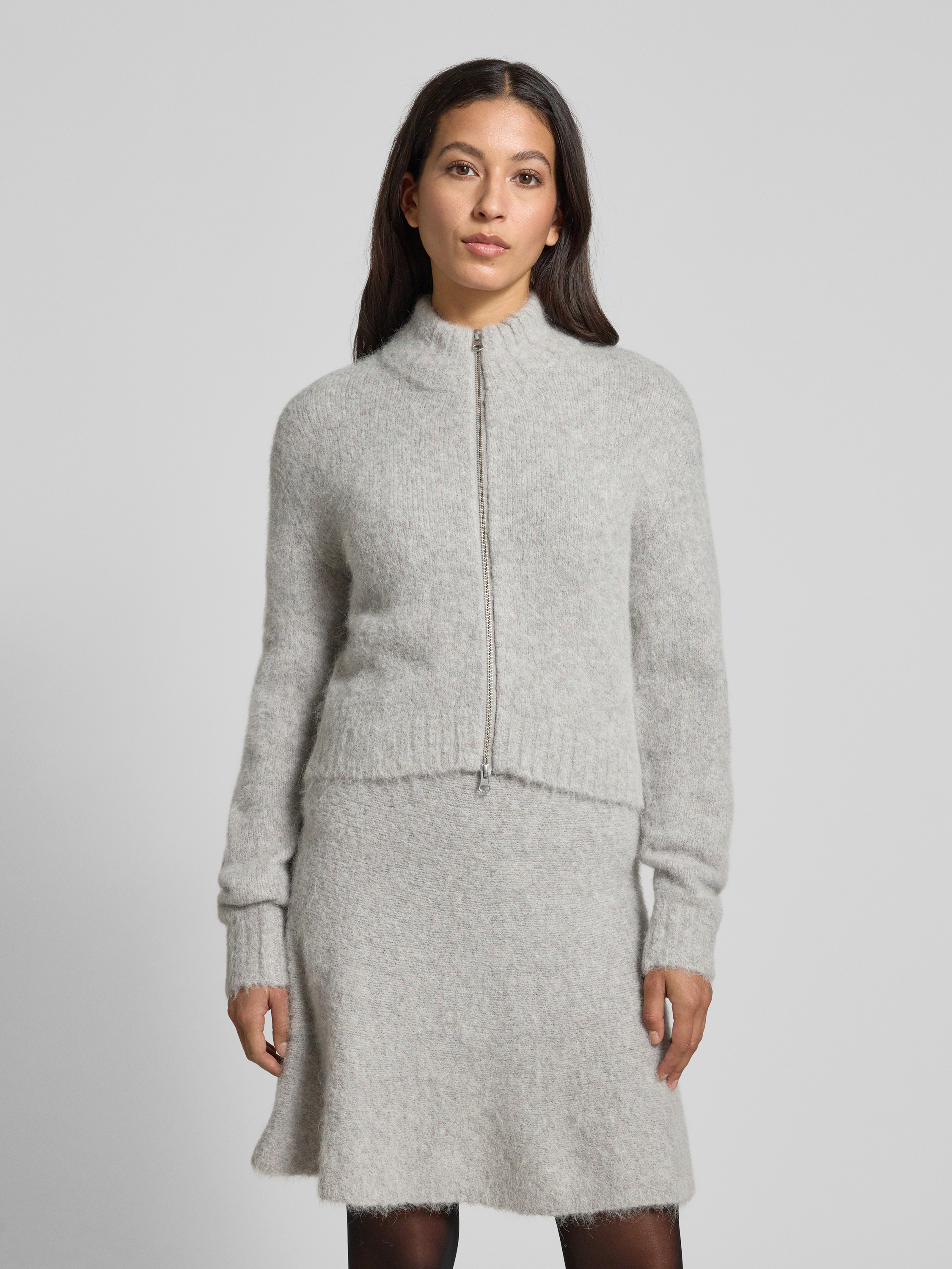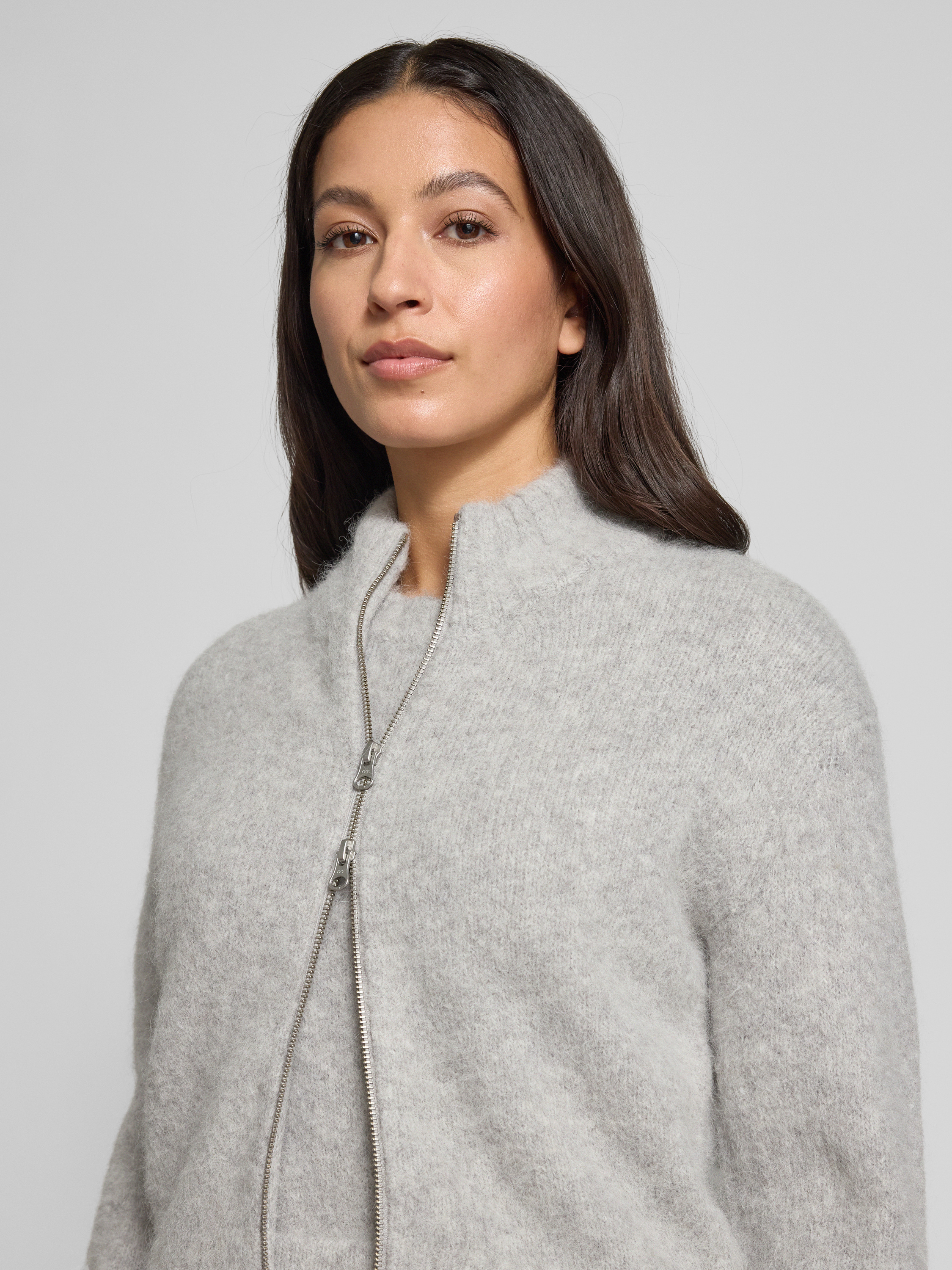 Samsøe SamsøeCardigan mit Zweiwege-Reißverschluss Modell 'JEANNE' in hellgrau melange