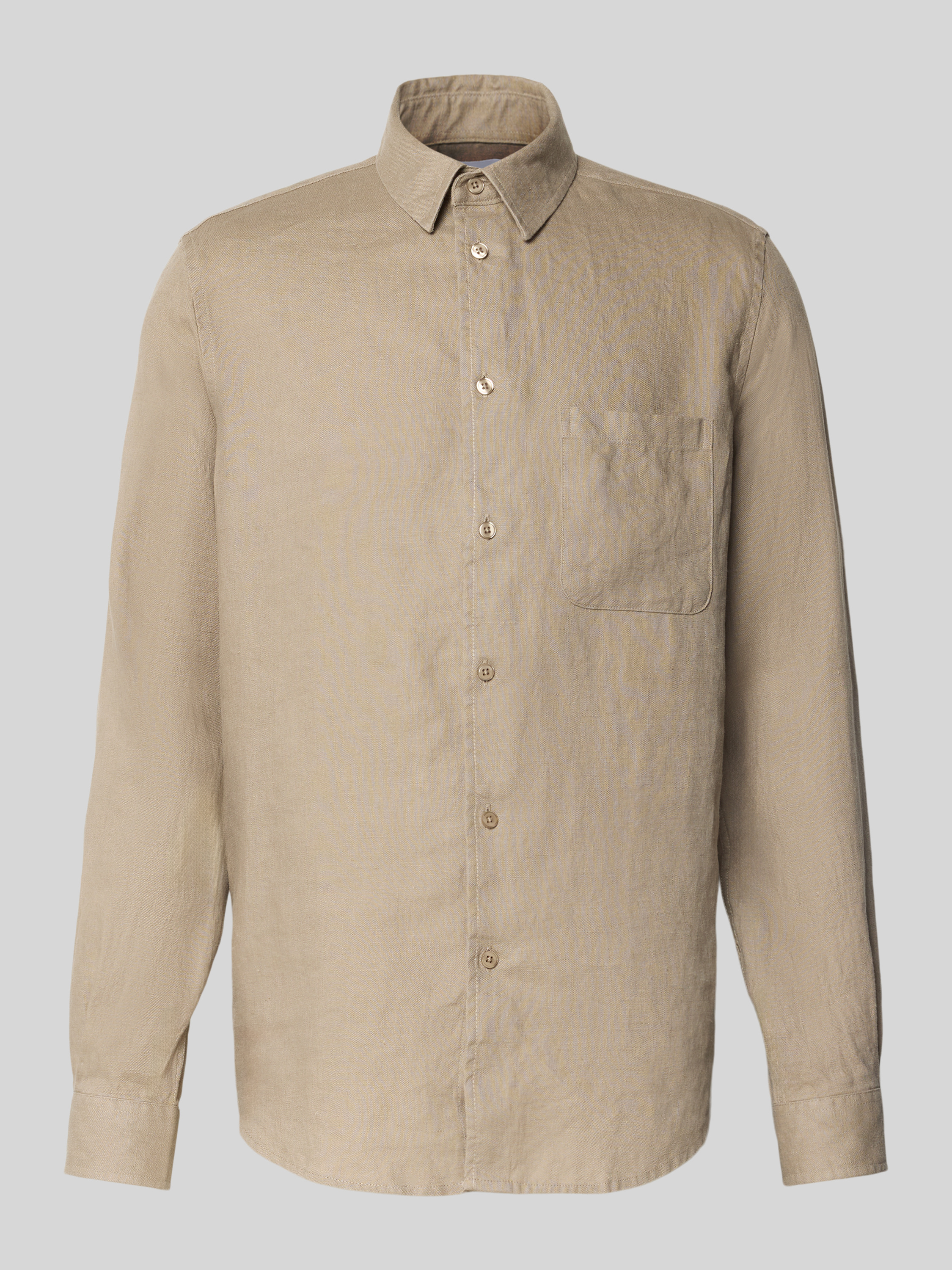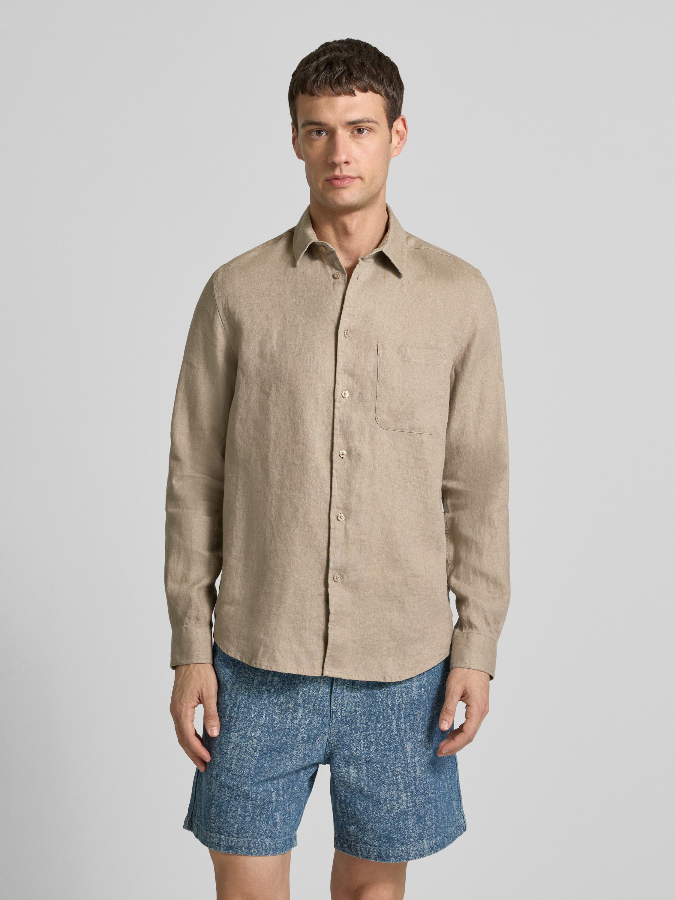Das Herren Freizeithemd von Samsøe Samsøe, Modell 'LIAM', aus reinem Leinen kombiniert lässigen Stil mit funktionaler Eleganz. Der Regular Fit und der klassische Kentkragen sorgen für einen angenehmen Tragekomfort. Eine praktische Brusttasche rundet das Design harmonisch ab.