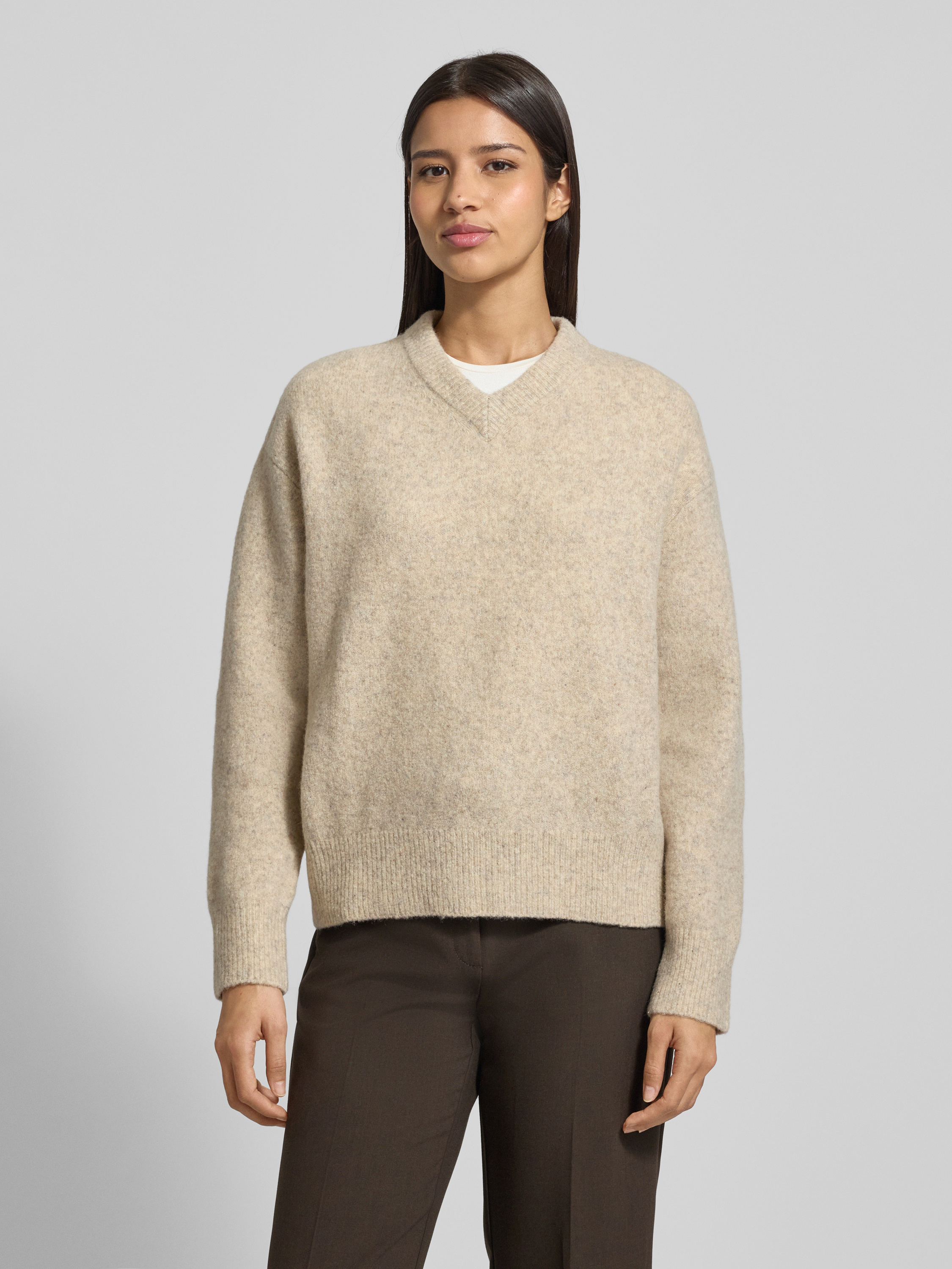 Der Strickpullover SAMELODY von Samsøe Samsøe fällt durch seinen lockeren Schnitt auf, der Bewegungsfreiheit ermöglicht und sich angenehm anfühlt. Der Lanawoll-Mix mit Stretch-Anteil sorgt für ein komfortables Tragegefühl, während gerippte Abschlüsse und V-Ausschnitt dezente Akzente setzen. So eignet sich das Modell für entspannte Alltagsmomente oder lässt sich unkompliziert kombinieren.