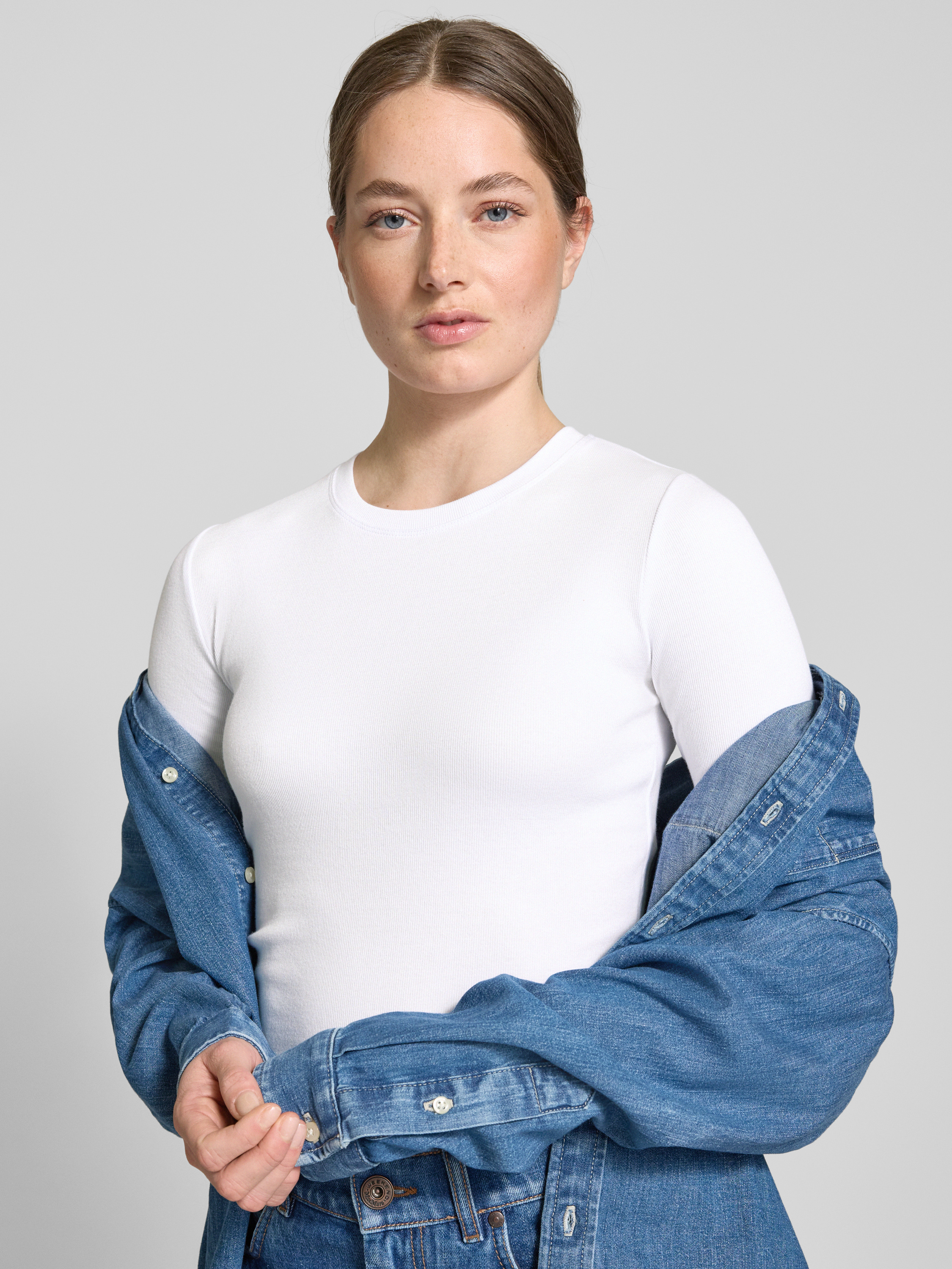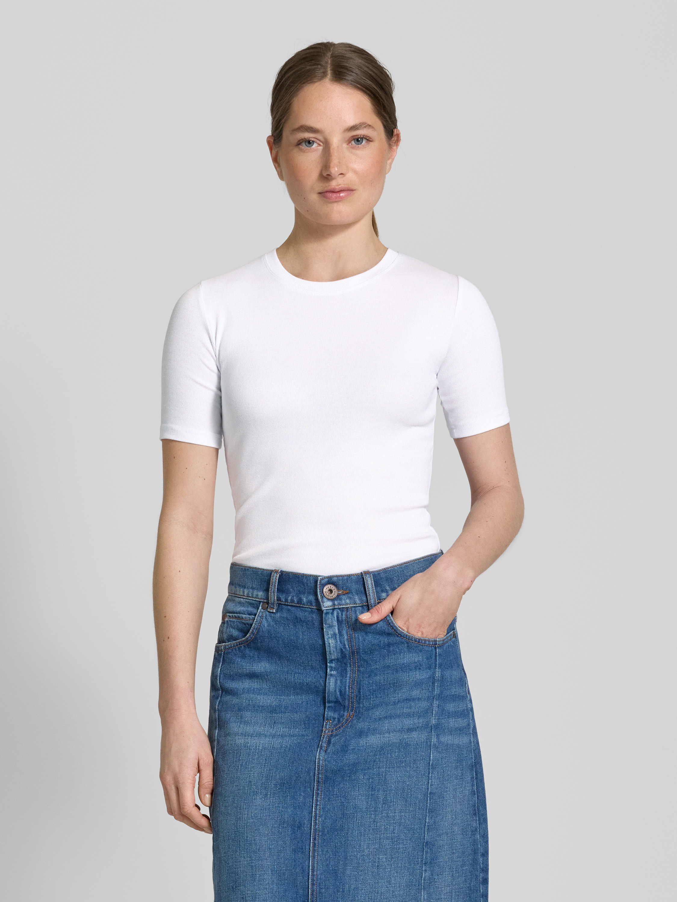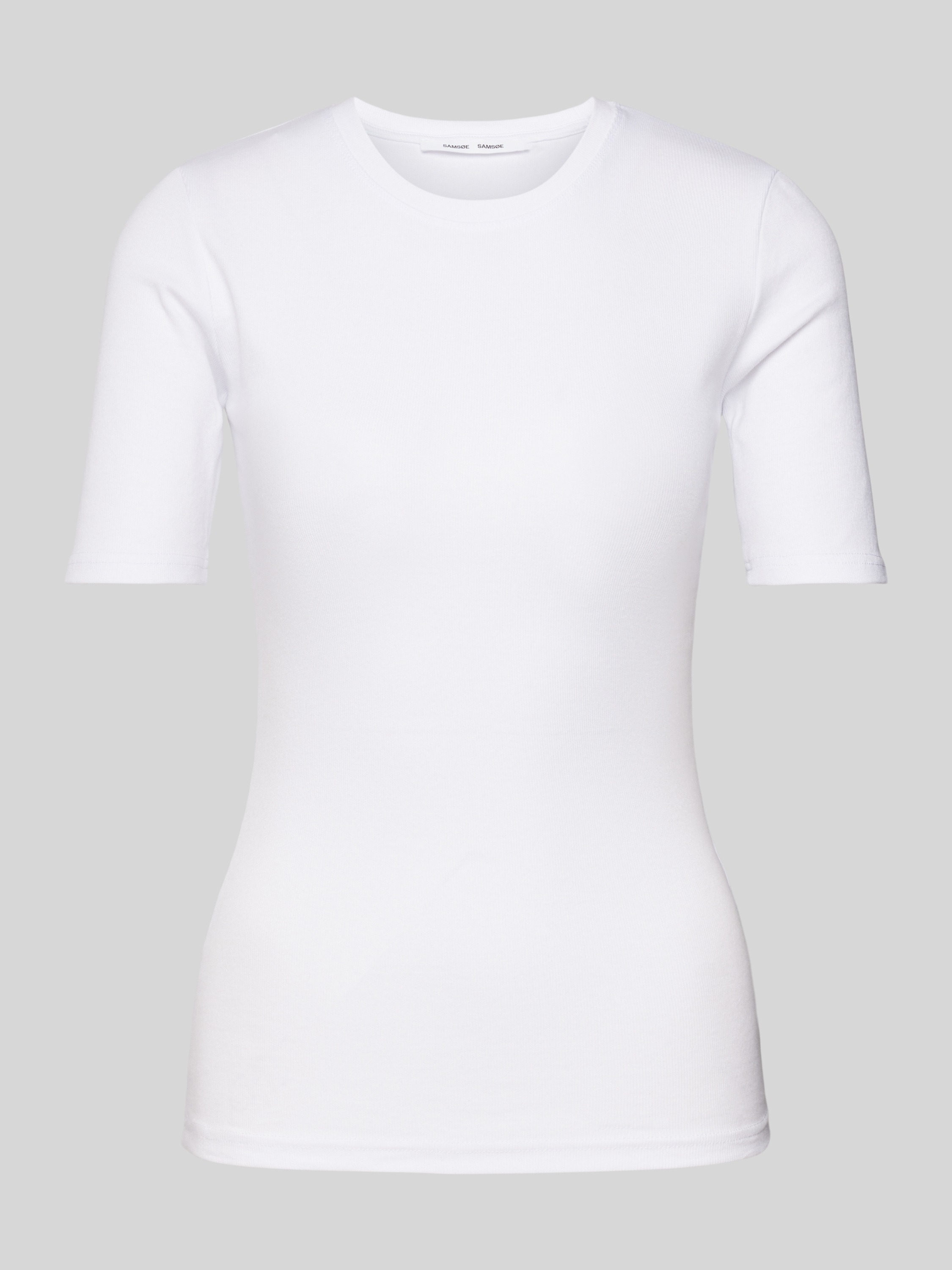 Das T-Shirt von Samsøe & Samsøe, Modell 'SAALEXO', vereint zeitloses Design mit hochwertigem Tragekomfort. Der eng anliegende Schnitt und der weiche Escorial-Woll-Elasthan-Mix umschmeicheln sanft die Figur. Mit seinem klassischen Rundhalsausschnitt eignet es sich ideal für vielfältige Kombinationen.