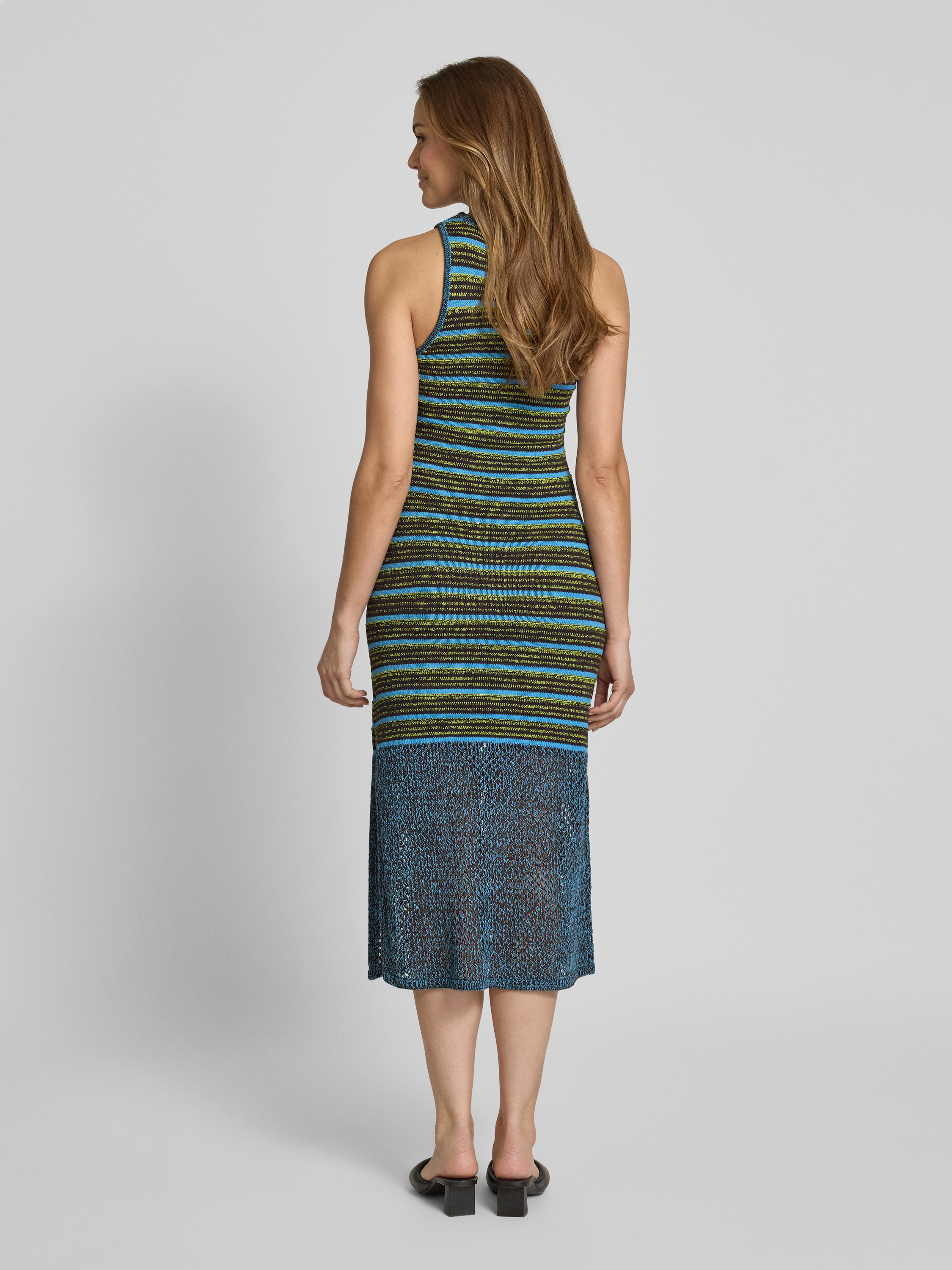 Das Strickkleid von Scotch & Soda, gefertigt aus einem angenehmen Baumwoll-Mix, schmiegt sich durch seinen körpernahen Schnitt sanft an den Körper an. Der Rundhalsausschnitt verleiht dem Maxikleid eine schlichte Eleganz, die sich wunderbar für verschiedene Anlässe eignet.