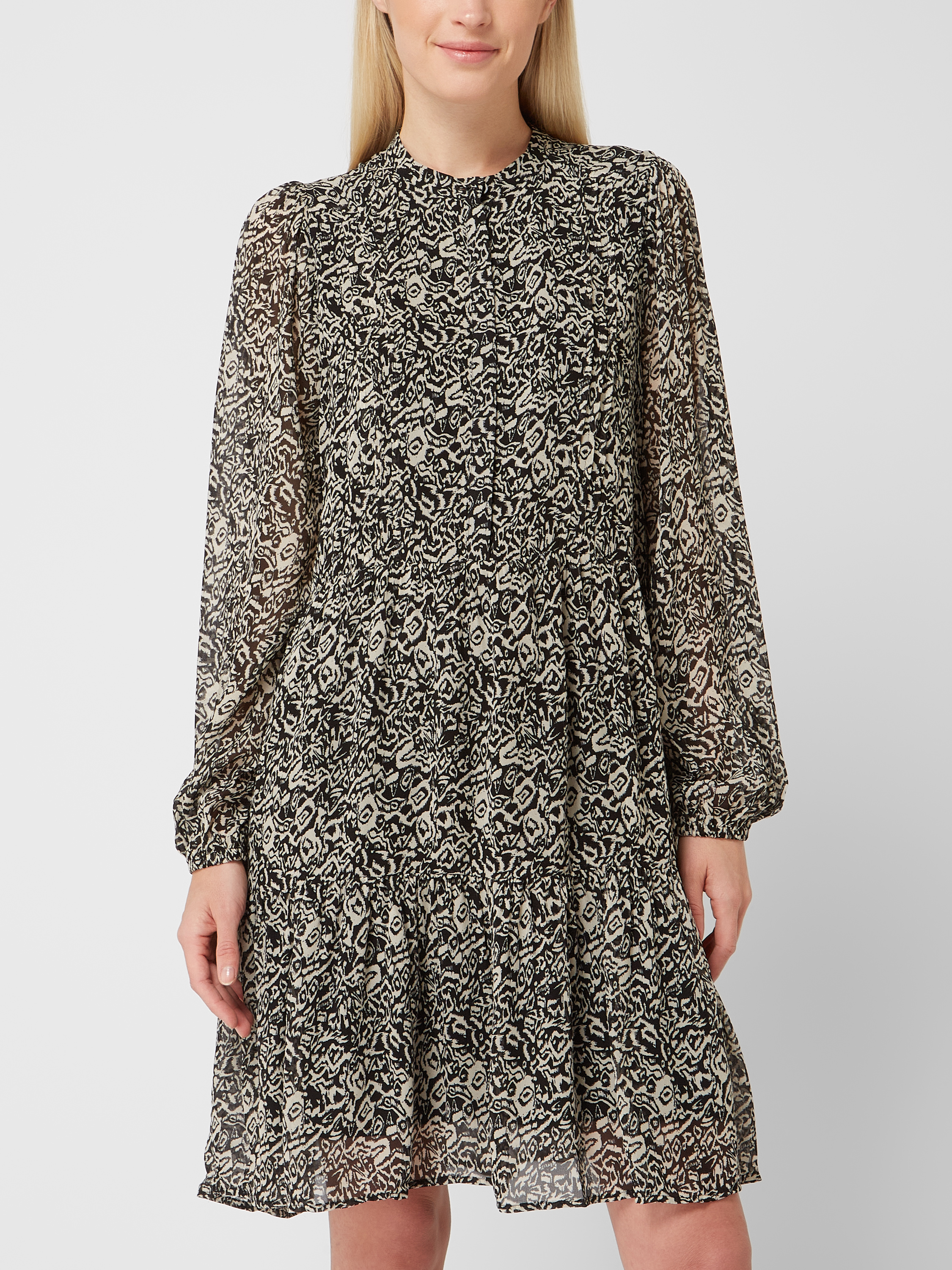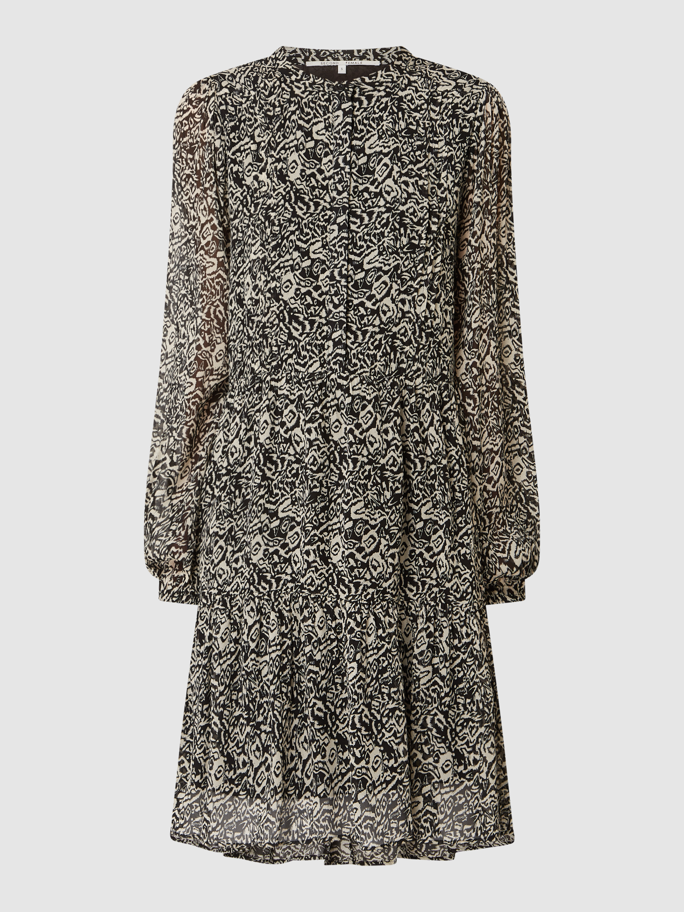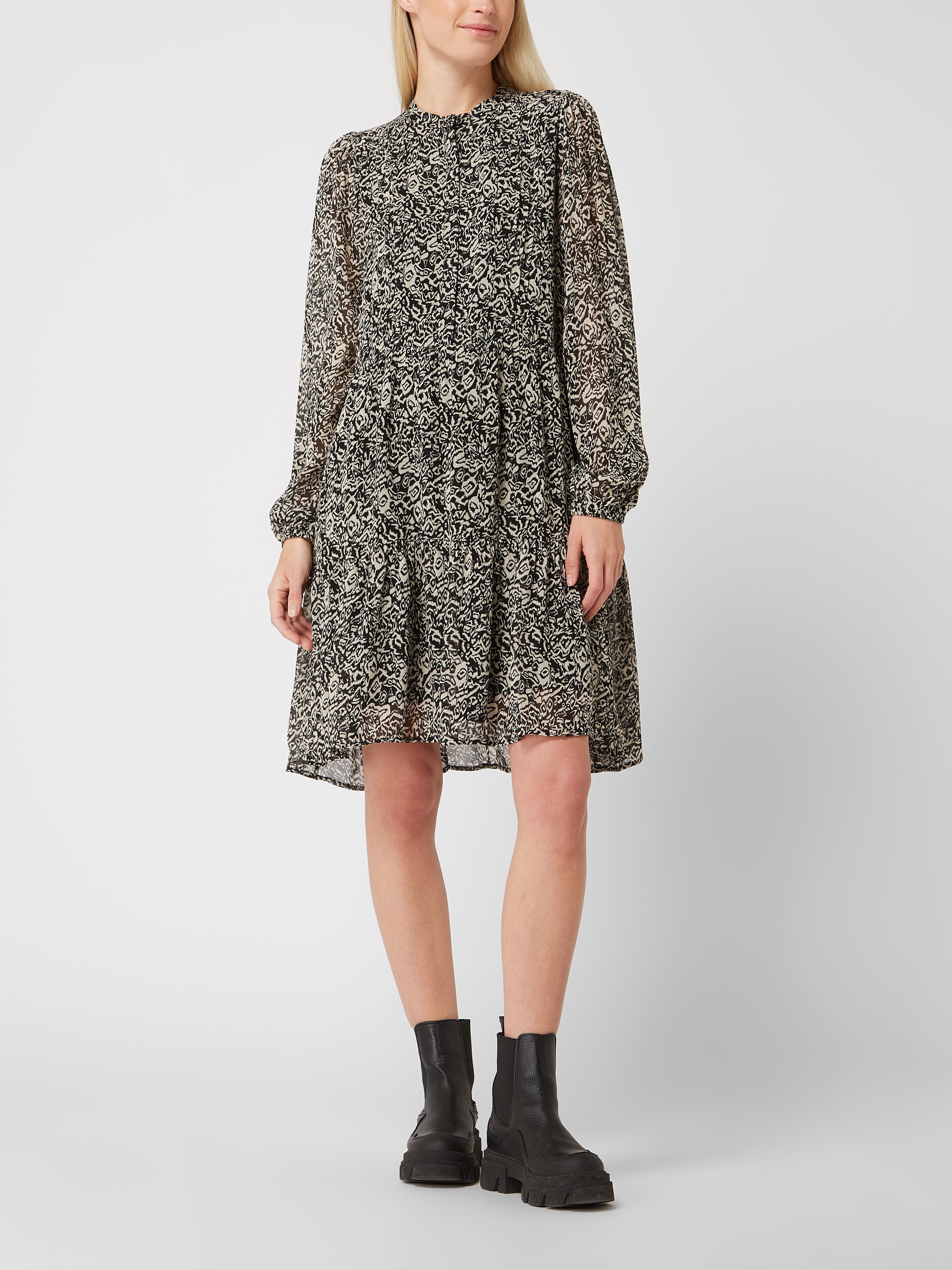 Das Kleid 'Mirta' von Second Female, gefertigt aus reiner Viskose, zeichnet sich durch seinen ausgestellten Schnitt und das abstrakte Muster aus. Der Stehkragen und die Puffärmel verleihen dem Kleid eine elegante Note, während das blickdichte Unterkleid für angenehmen Tragekomfort sorgt. Ideal für vielfältige Anlässe.