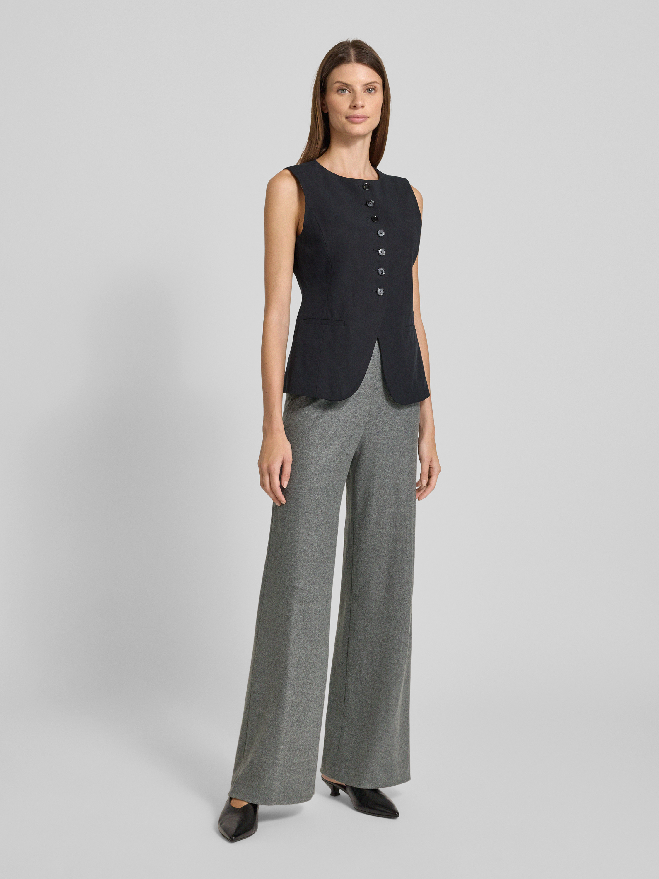 Die Damenhose von SEDUCTIVE, Modell KIMBERLY, fällt durch ihren weiten Schnitt angenehm locker und sorgt damit für Bewegungsfreiheit im Alltag. Dank des Woll-Anteils fühlt sich das Material angenehm auf der Haut an. Dezente Paspeltaschen am Gesäß unterstreichen die klare Linienführung.