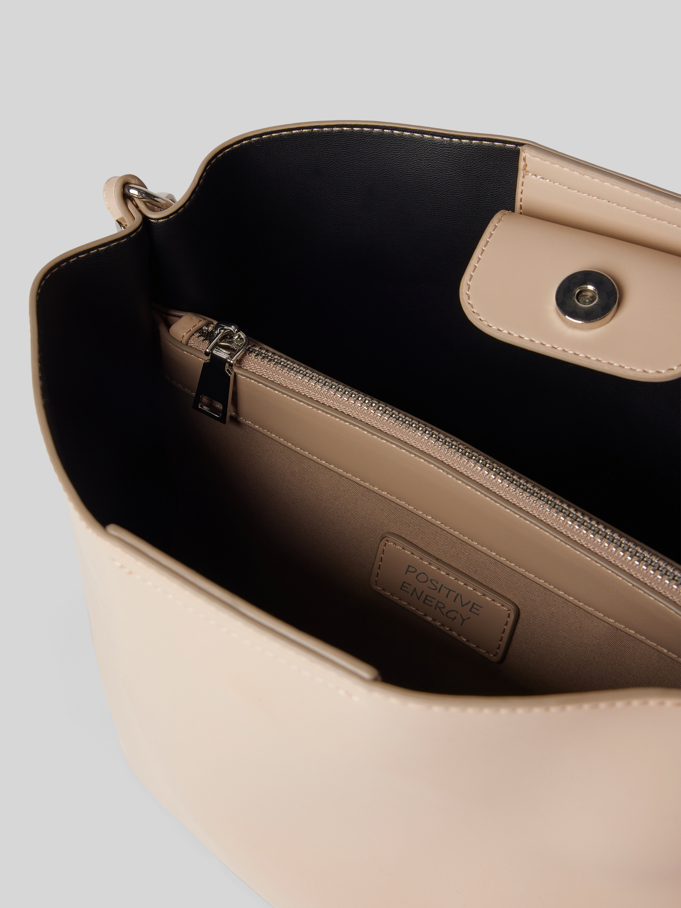SeidenfeltHandtasche mit Tragehenkel und verstellbarem Schulterriemen in beige