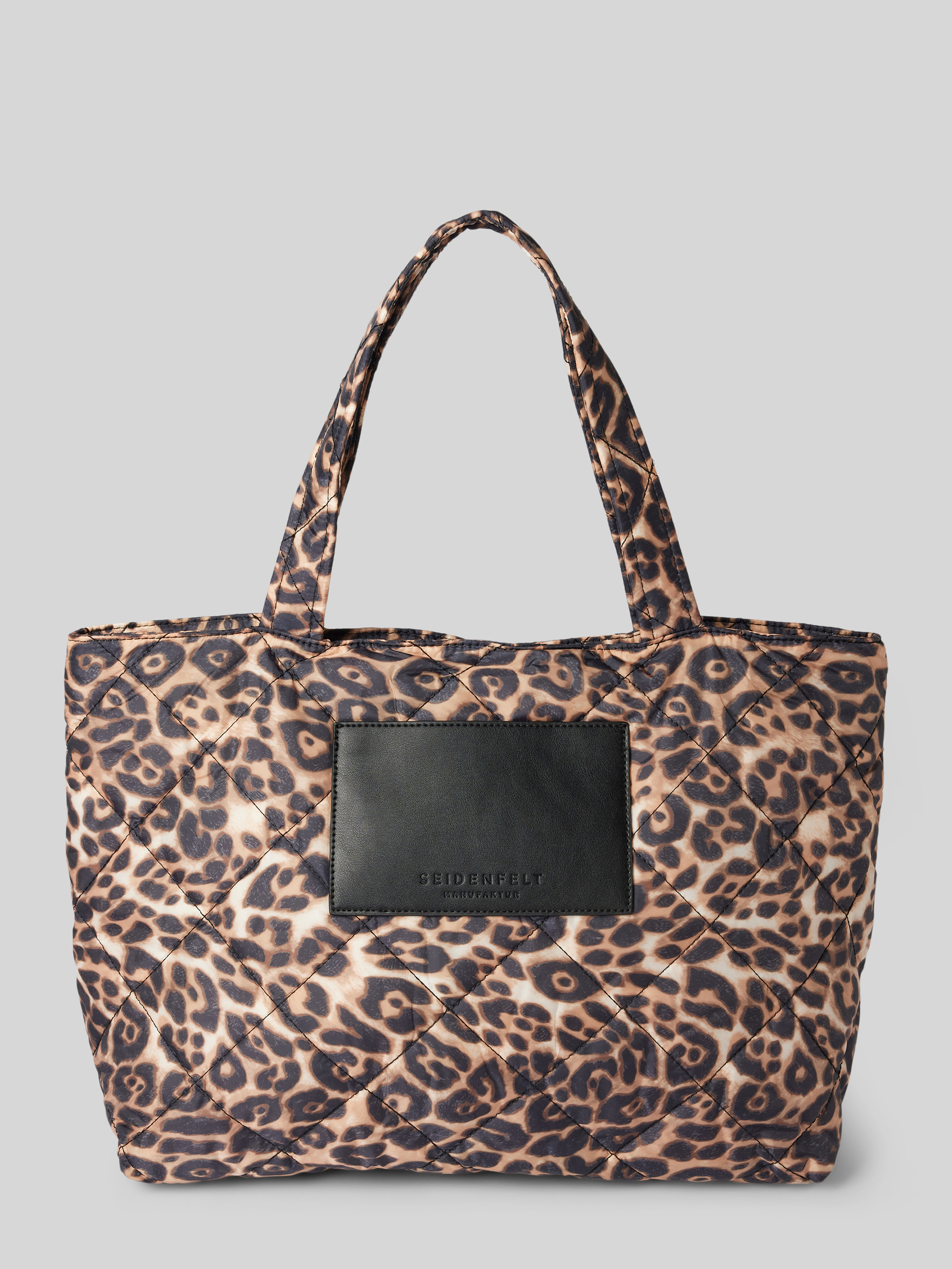 SeidenfeltTote Bag mit Label-Detail Modell 'EVENES' in mittelbraun