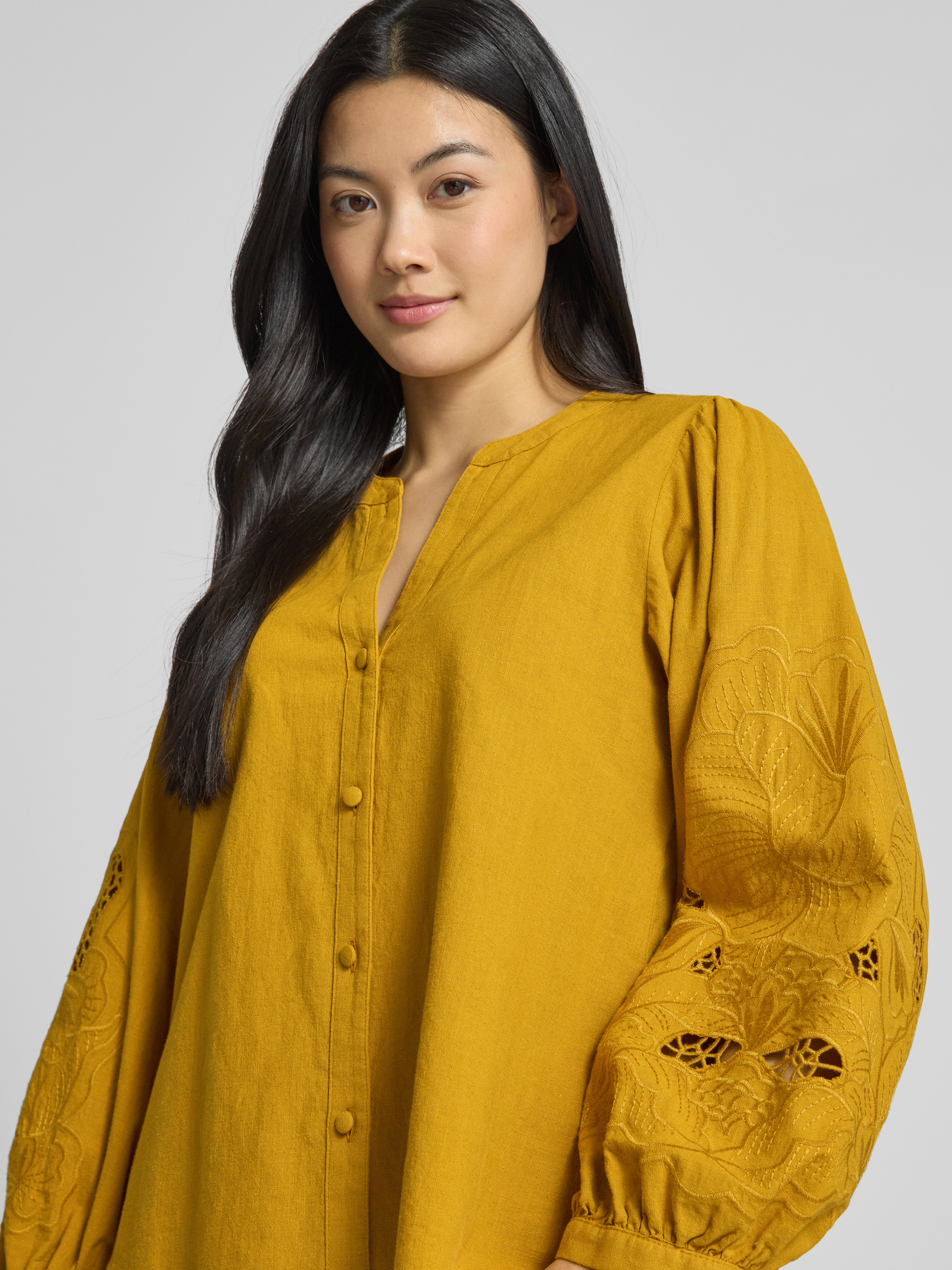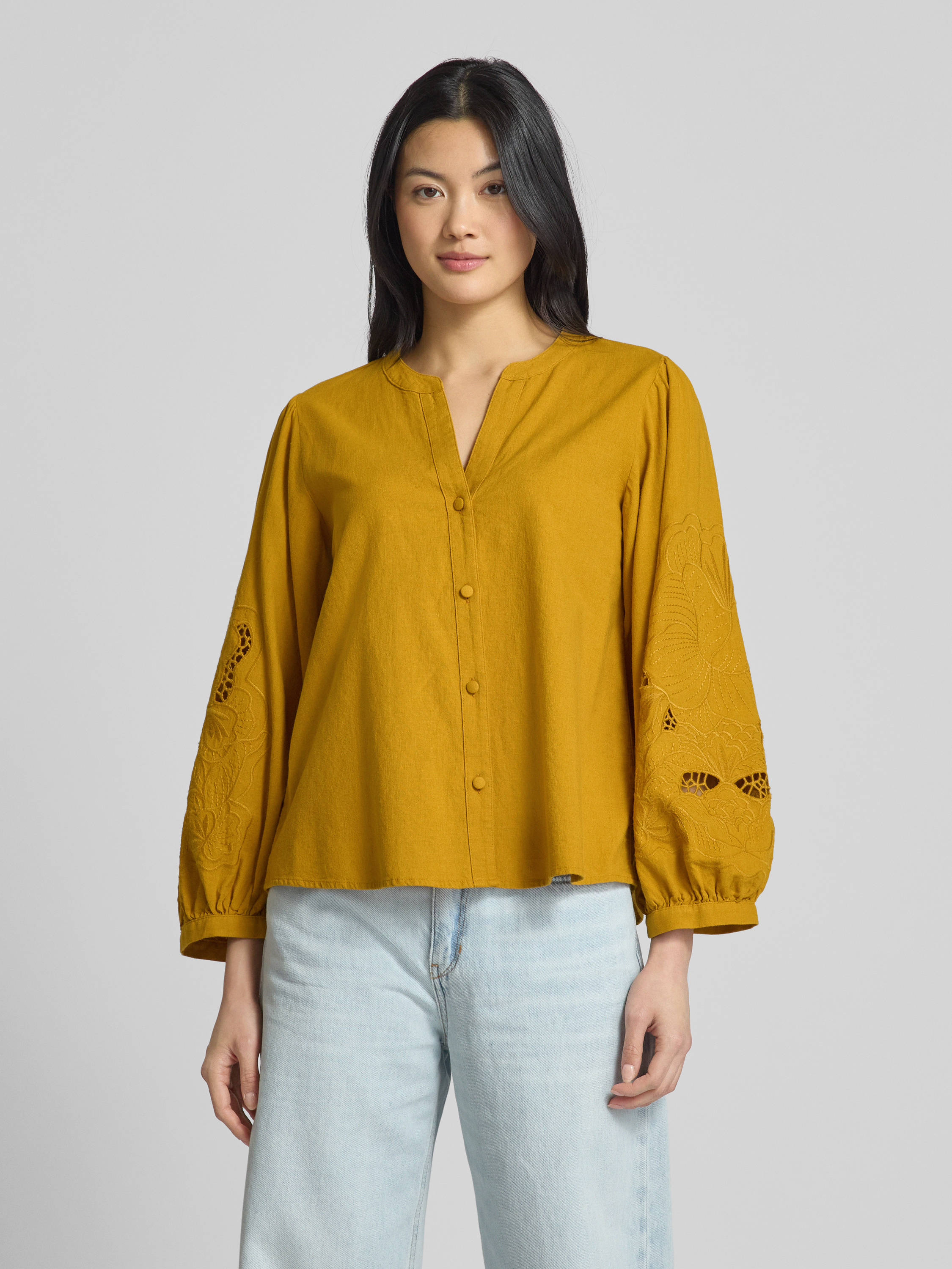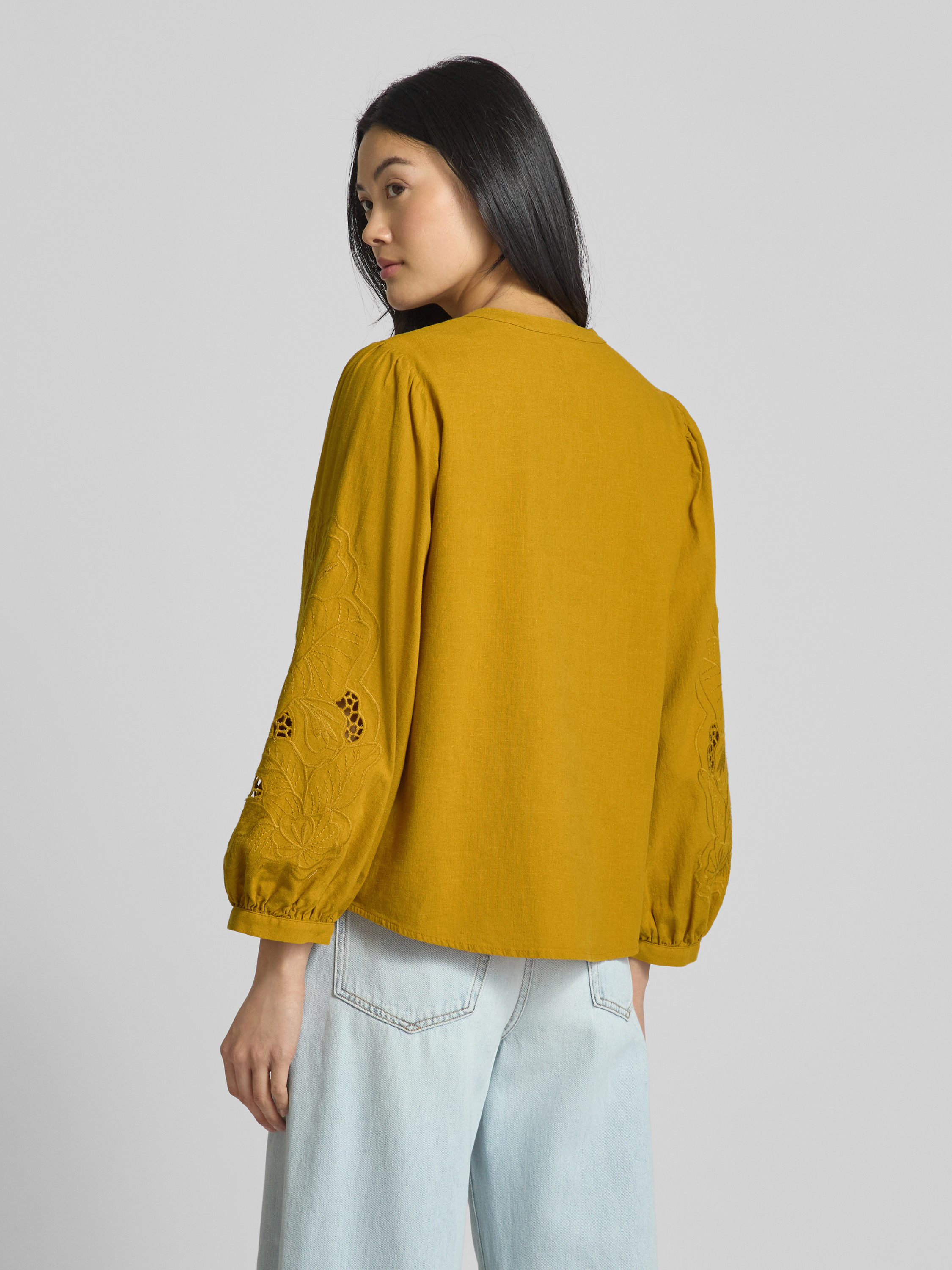 SeidenstickerRegular Fit Bluse aus Baumwoll-Leinen-Mix in senf